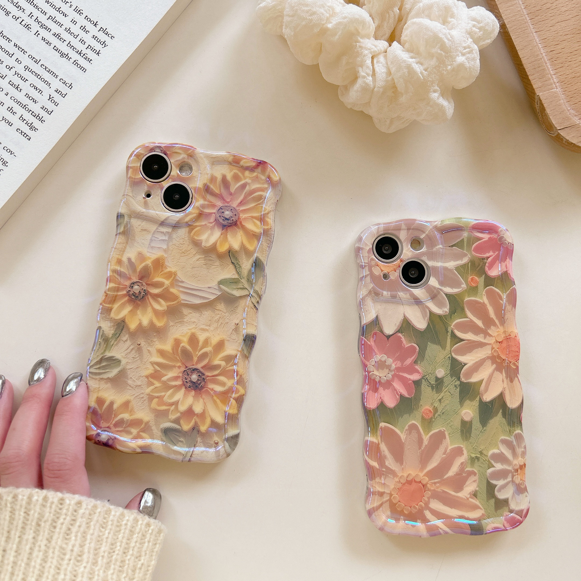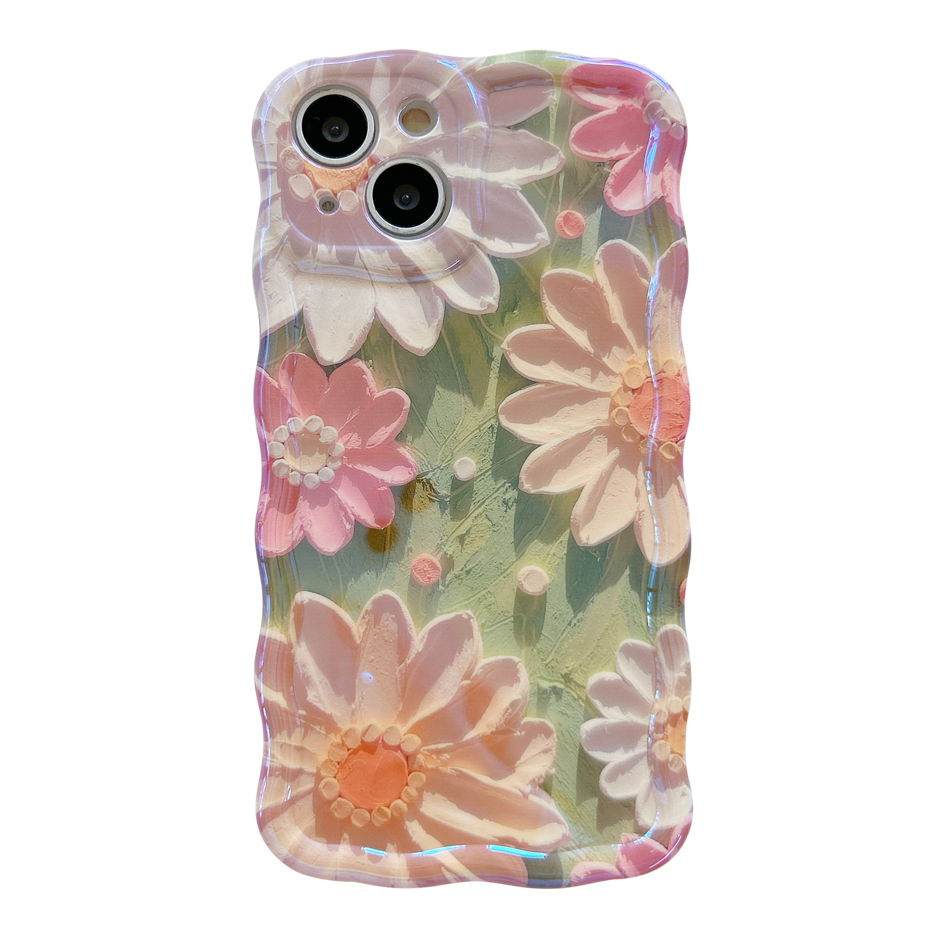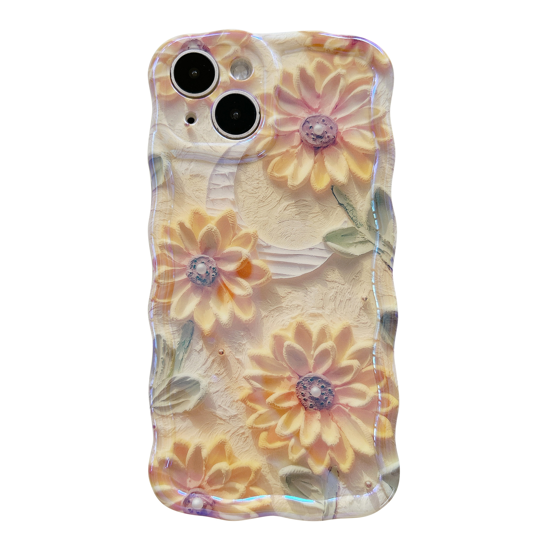 Accessories [Apple] iPhone14/13/12promax Wave Edge Blue Oil Painting Flowers Anti-drop Female New Phone Case