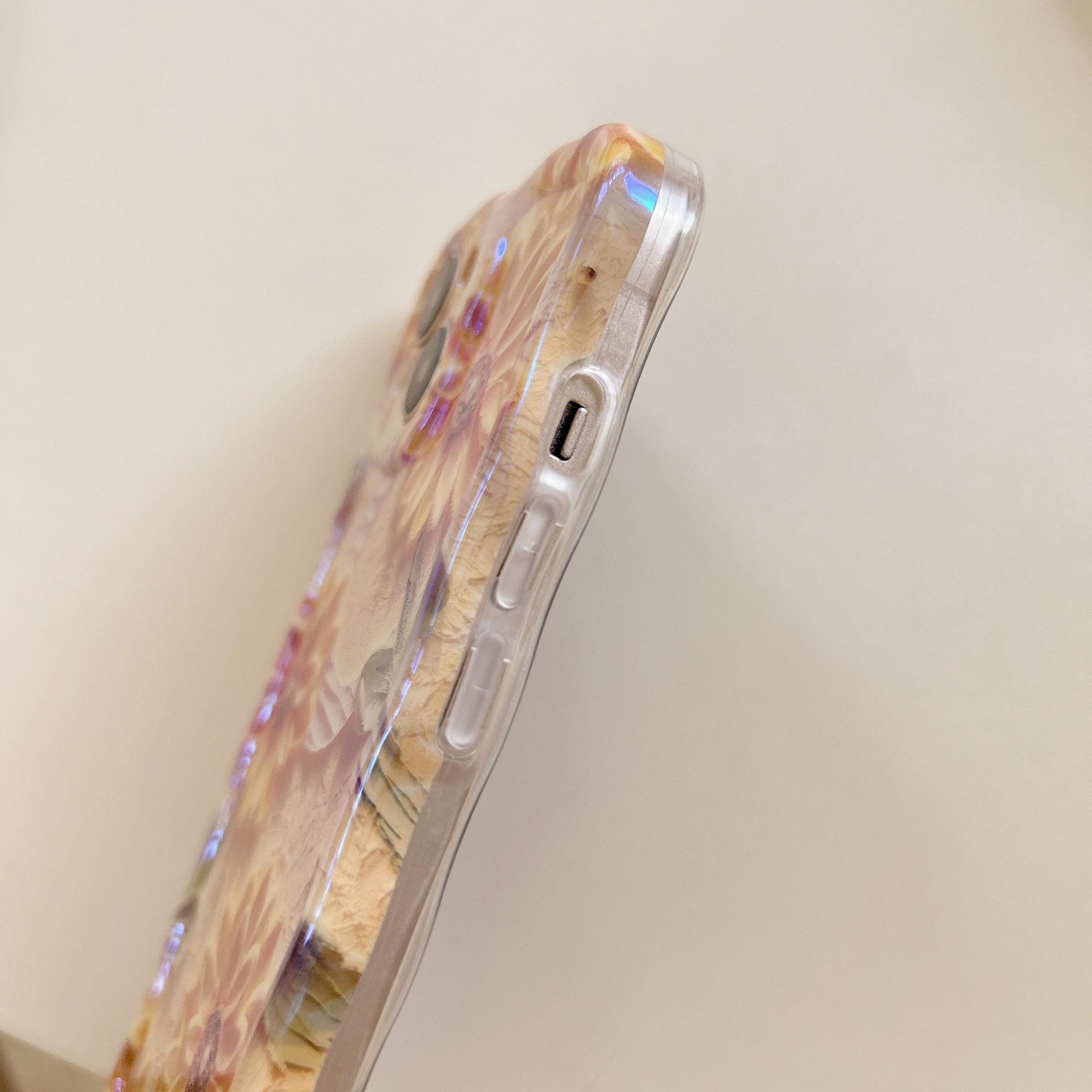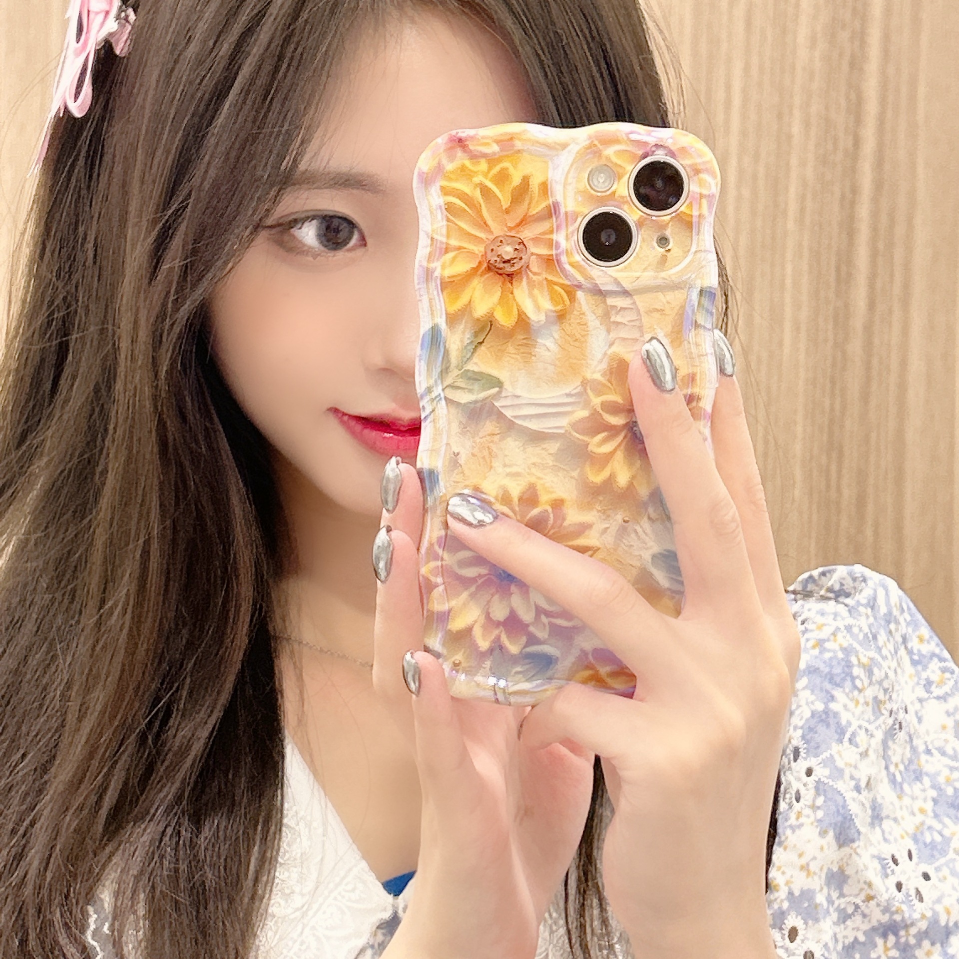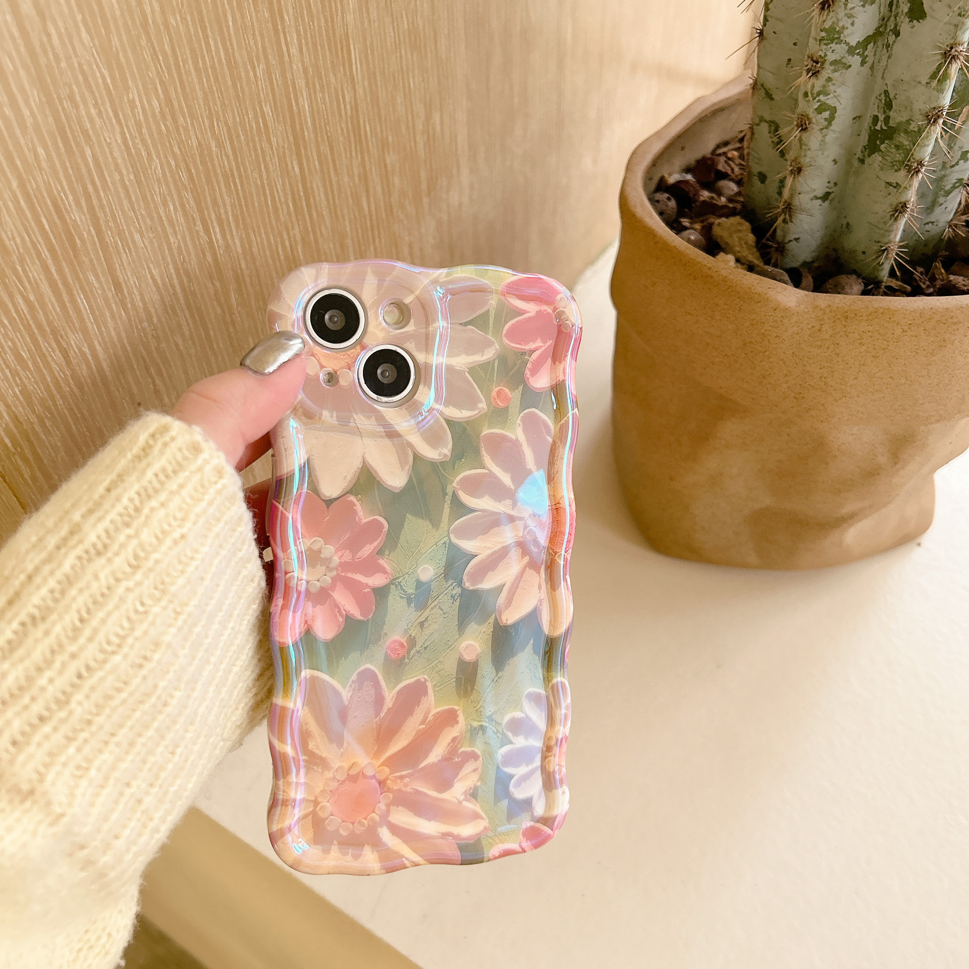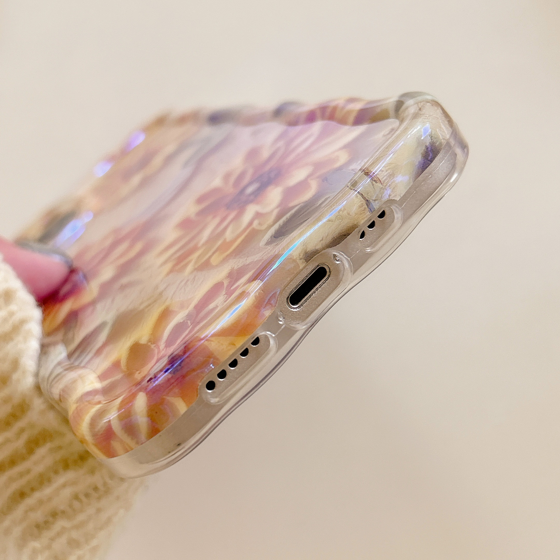 Accessories [Apple] iPhone14/13/12promax Wave Edge Blue Oil Painting Flowers Anti-drop Female New Phone Case