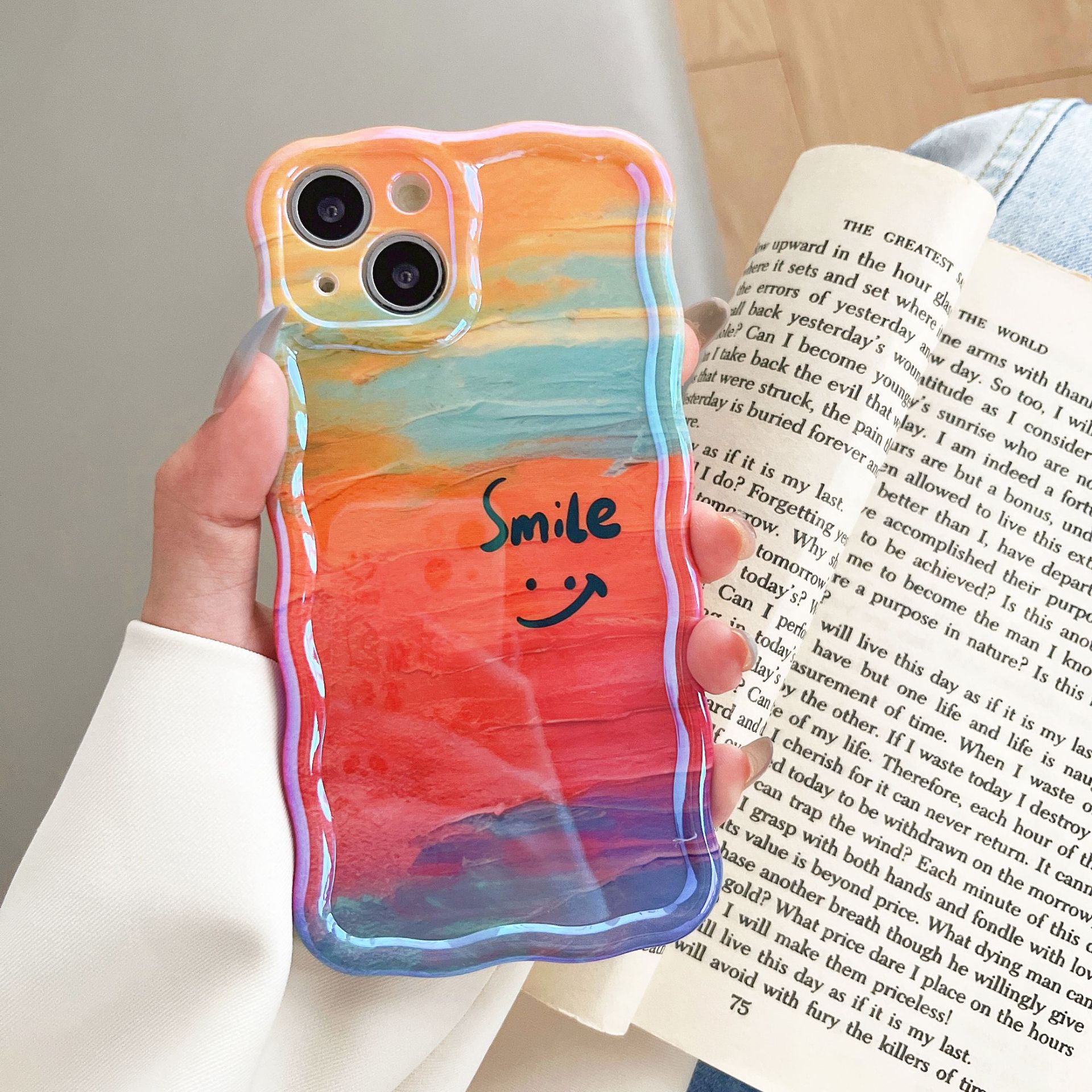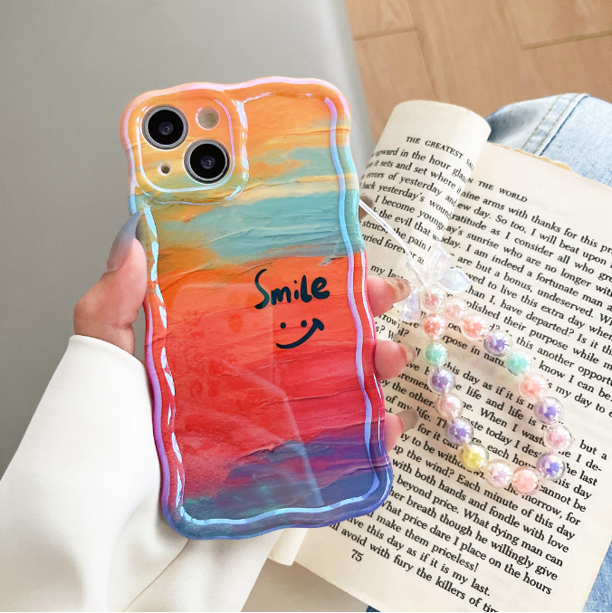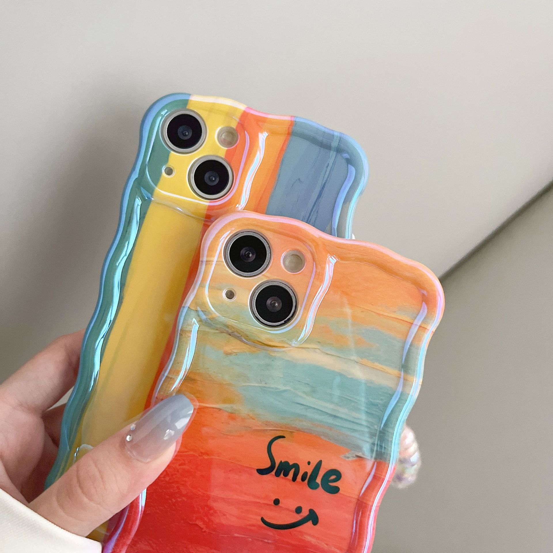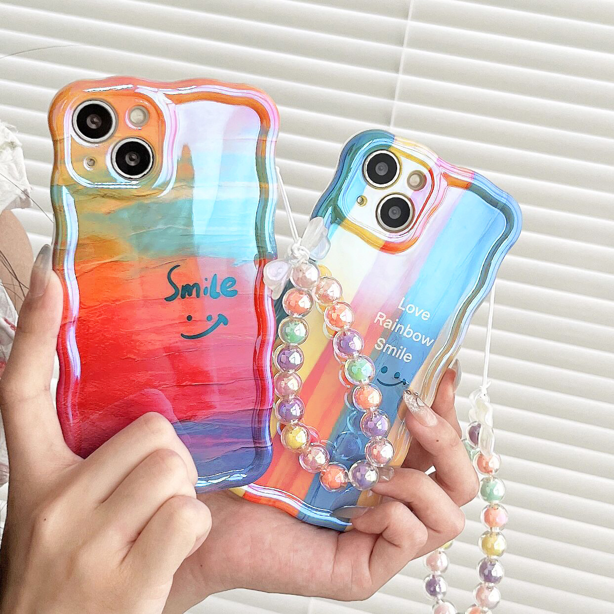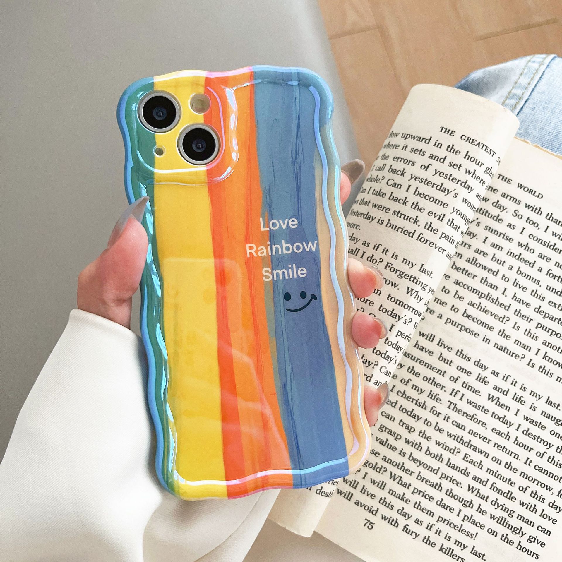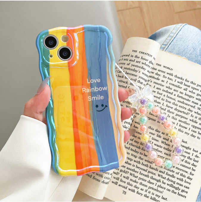 Accessories are suitable for Apple 14promax rainbow smiley face mobile phone case, the new 12/13pro/14 high-end creative all-inclusive.