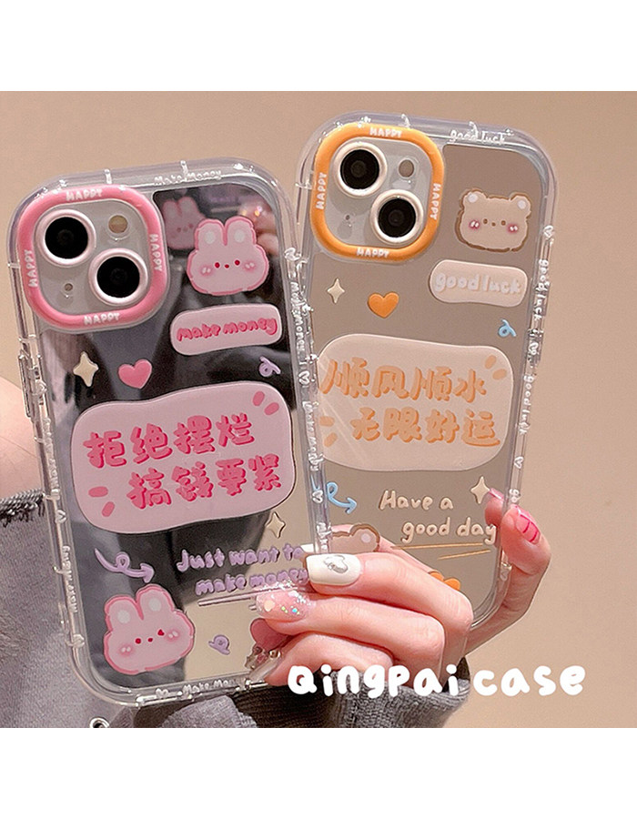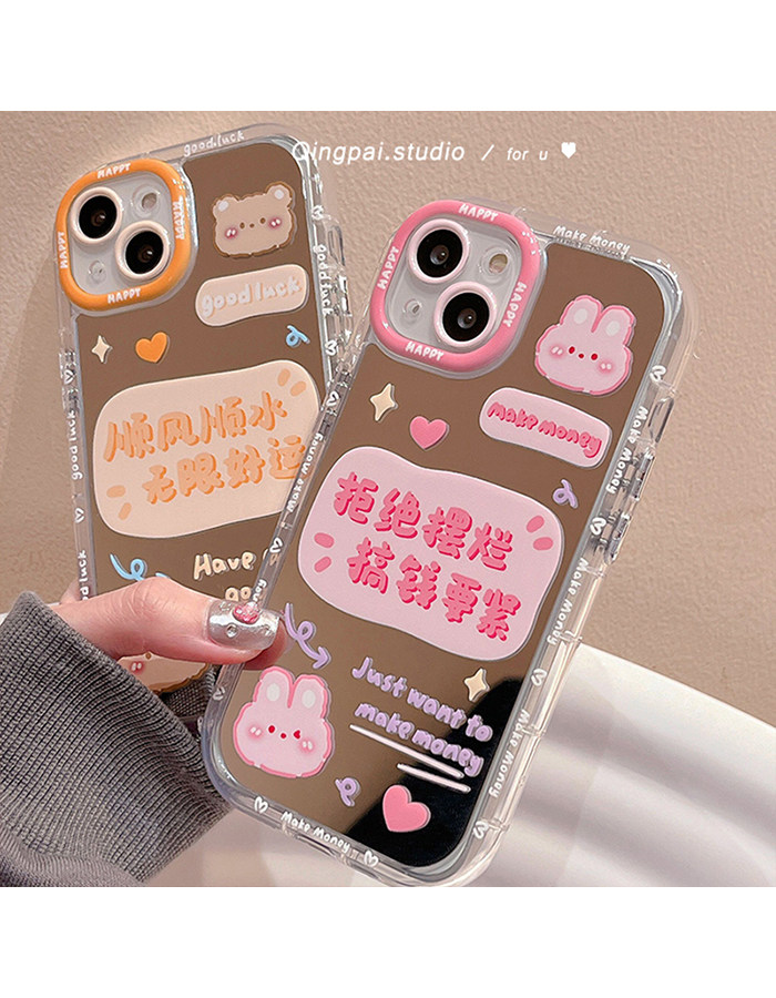 Accessories for Apple 14 mobile phone case mirror text bear rabbit 13 new iphone14promax female 12
