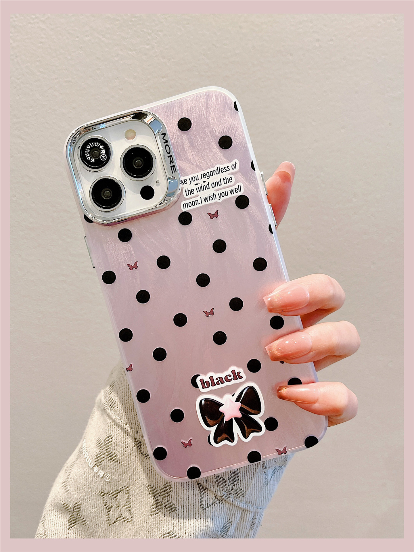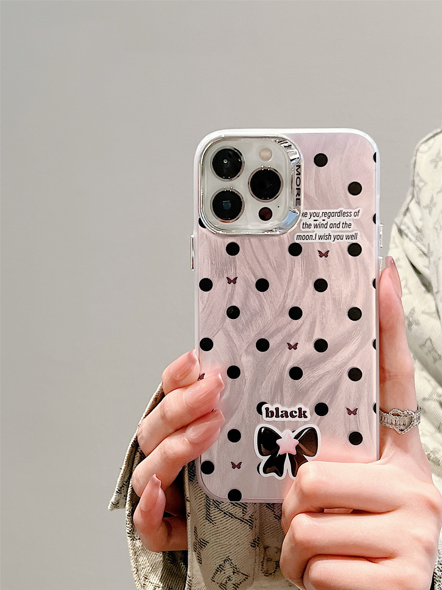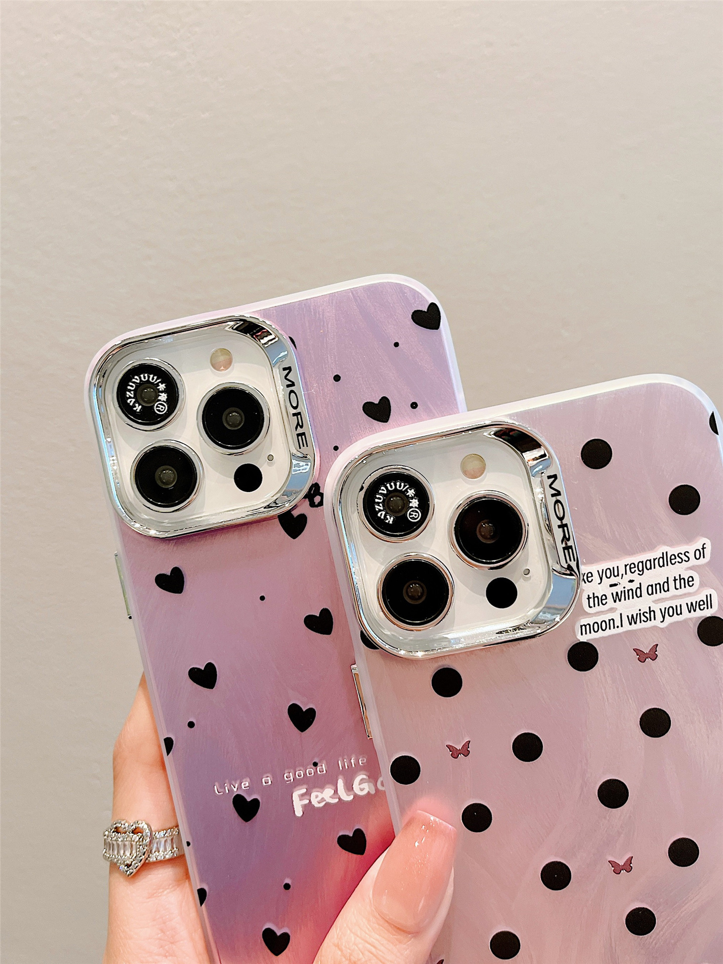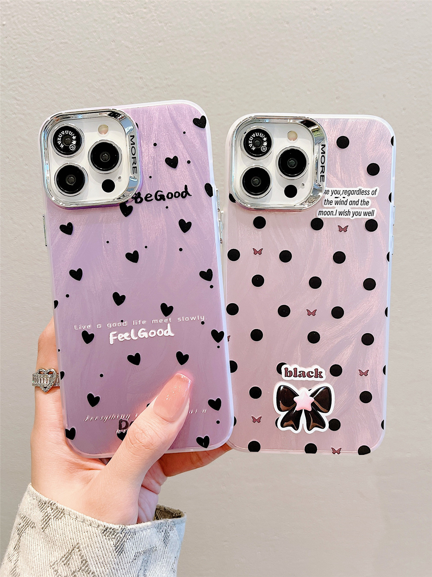 Accessories for Apple 14promax mobile phone case iphone15 feather yarn love polka dot 13 simple ins style 12 Internet celebrities