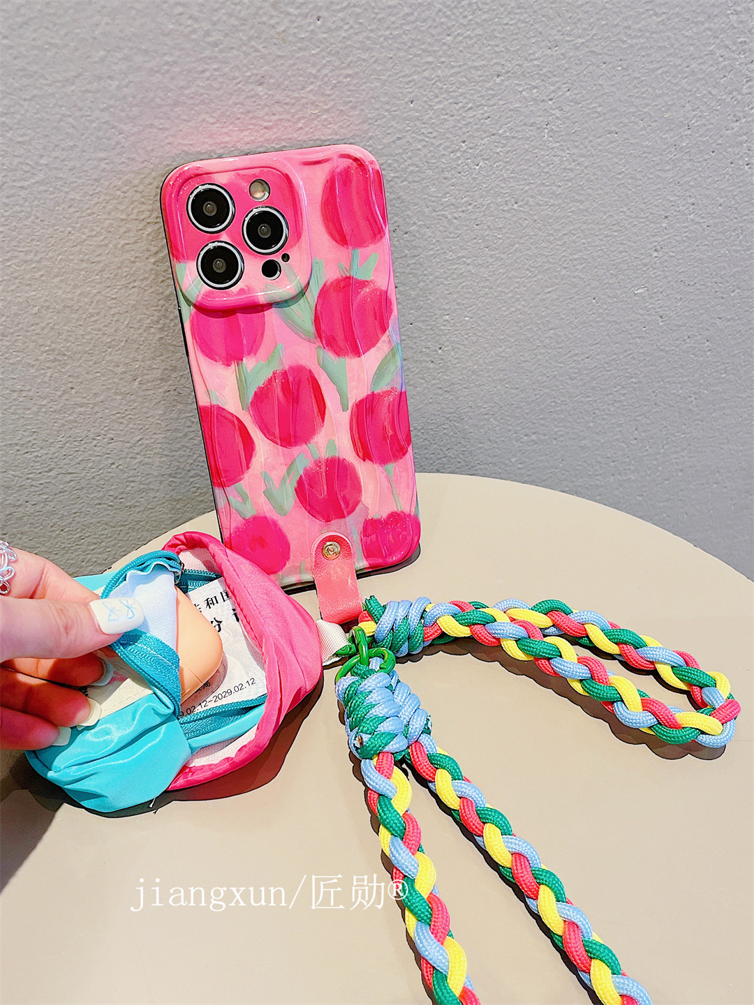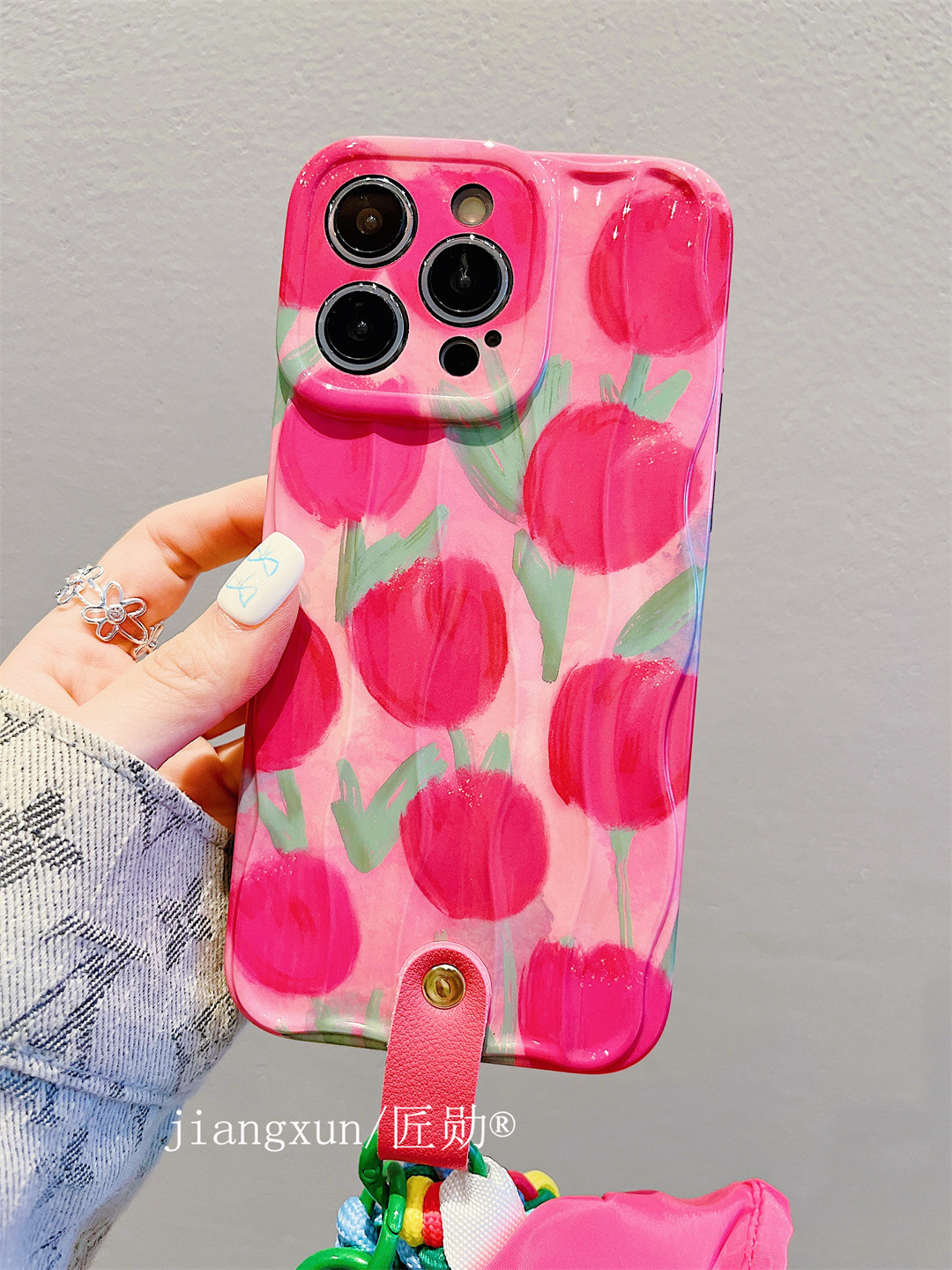 Accessories for Apple 15promax mobile phone case 13/14 small fresh and beautiful tulip 14promax messenger lanyard