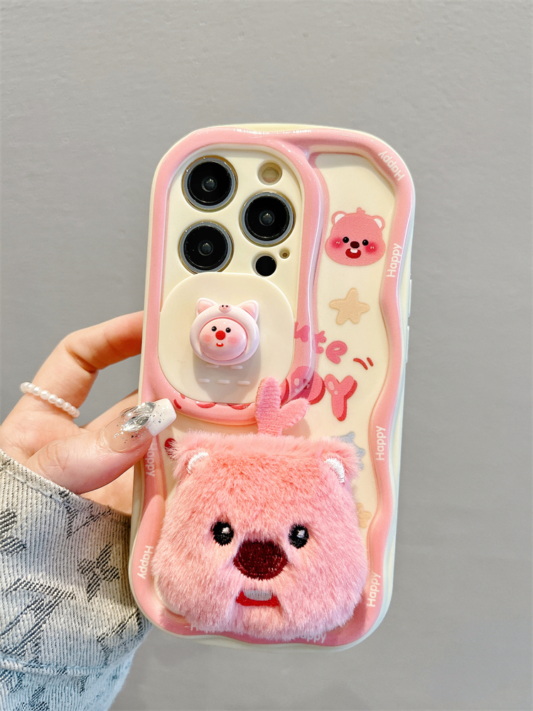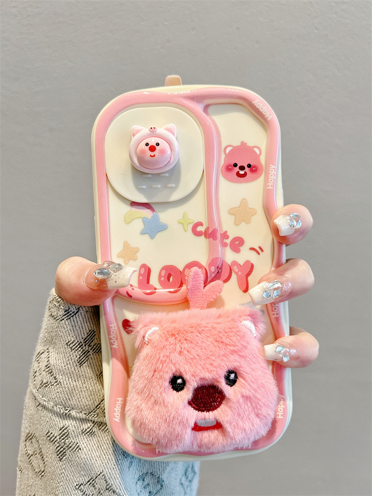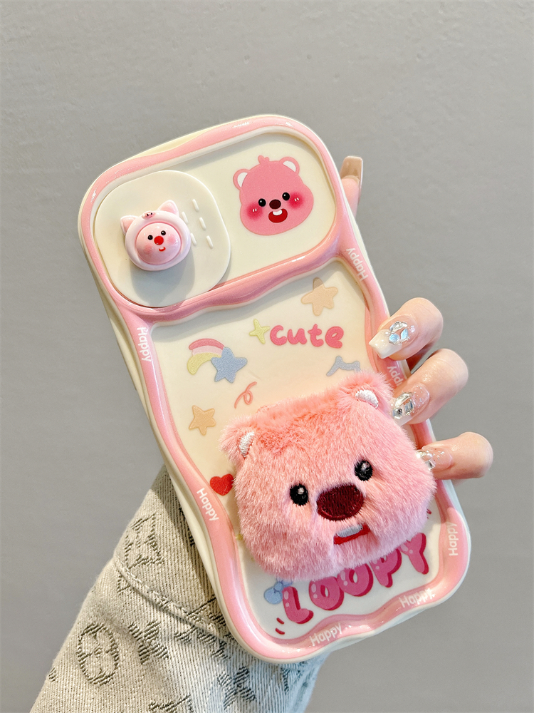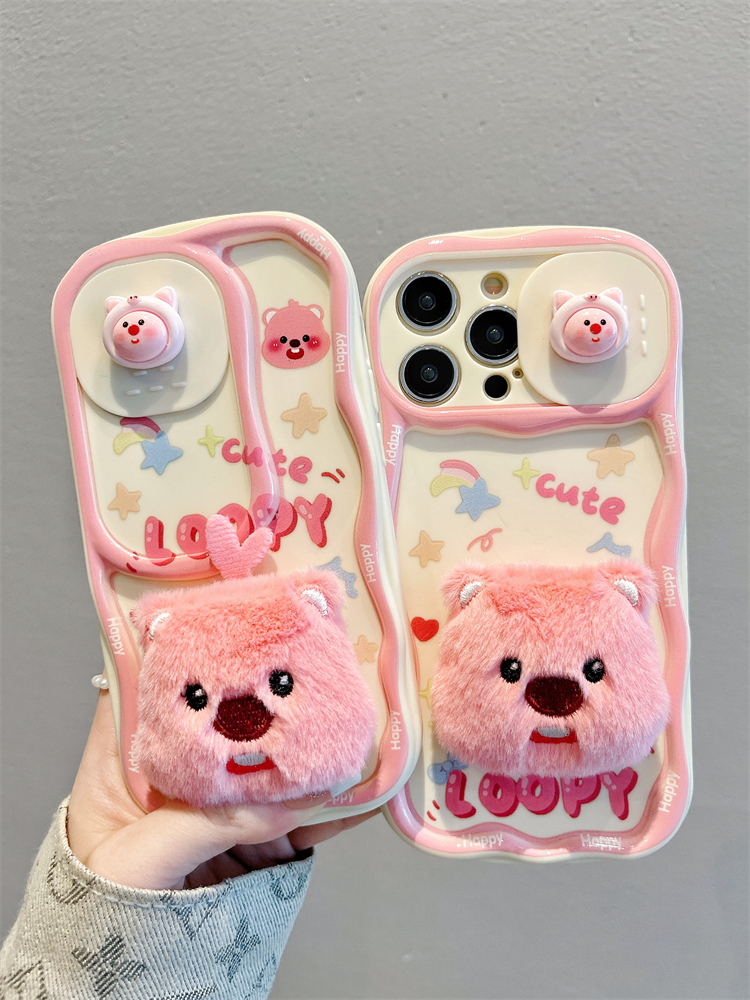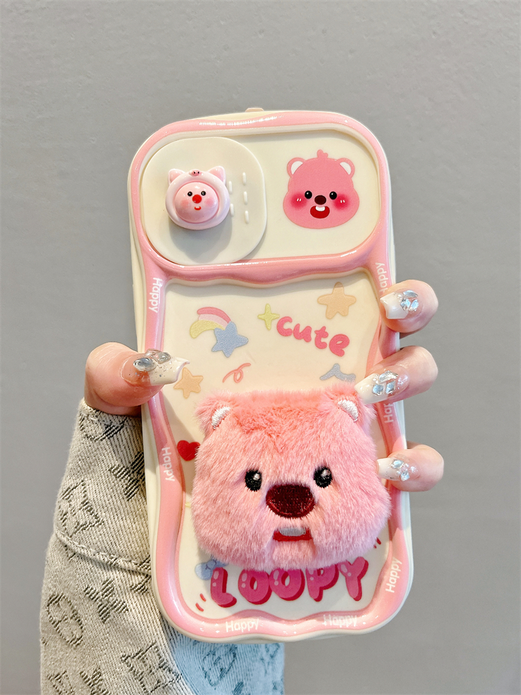 Accessories for Apple 15promax mobile phone case 13 plush little beaver sliding window 14 new iphone15pro full