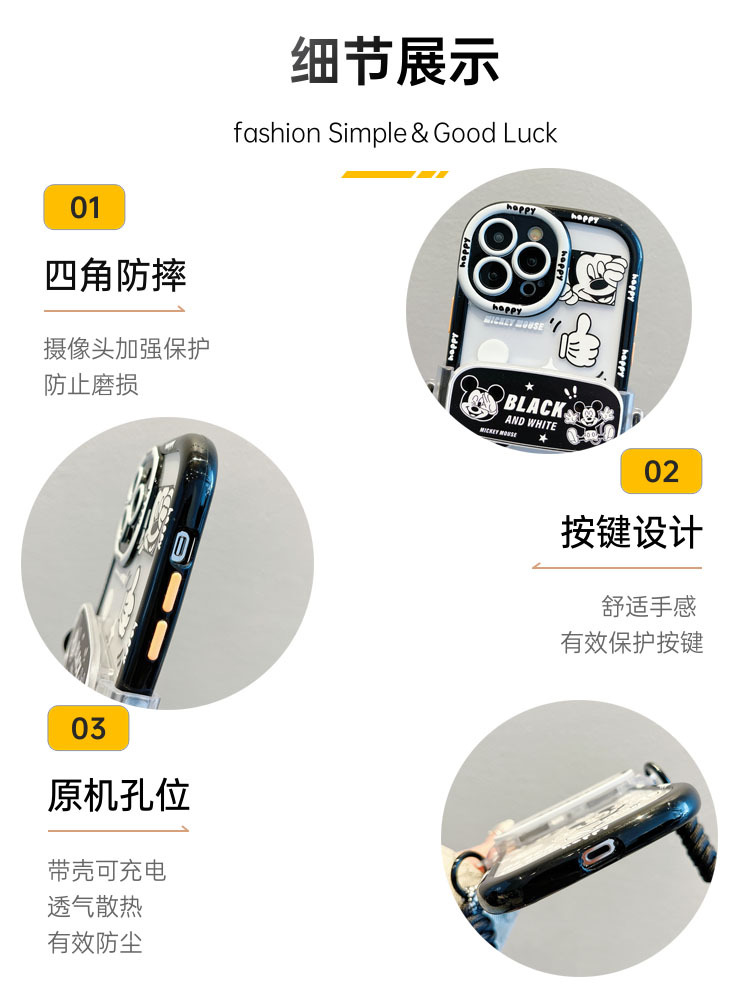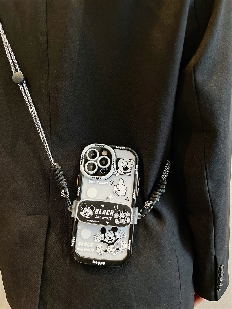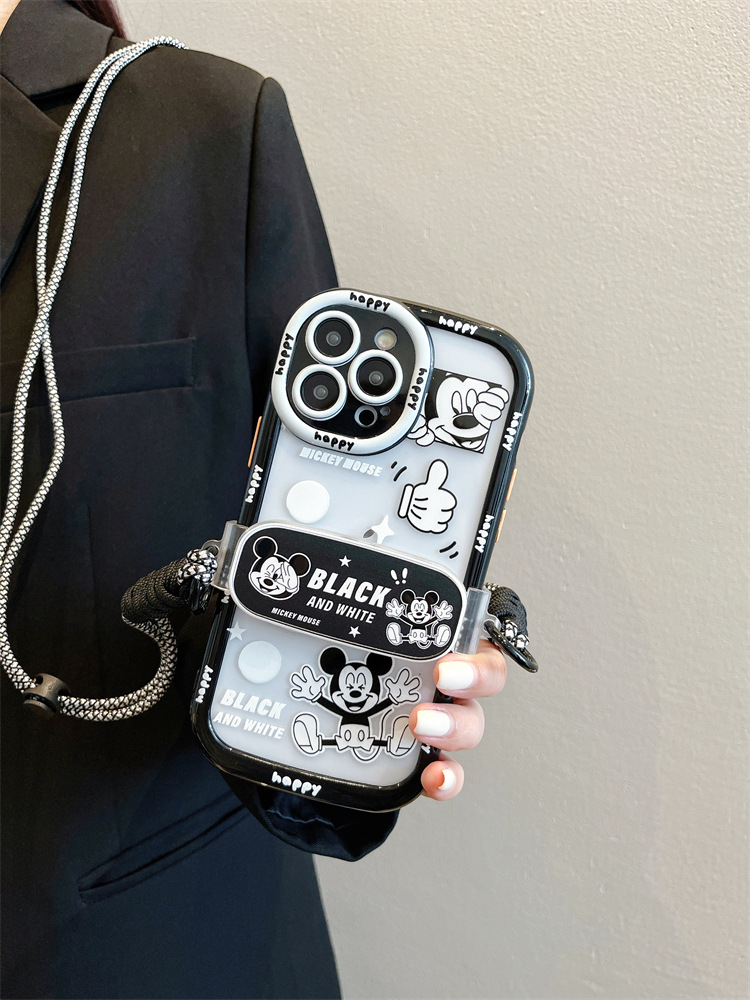 Accessories for Apple 15promax mobile phone case 14 cartoon trendy brand Mickey iphone13 new back clip crossbody lanyard