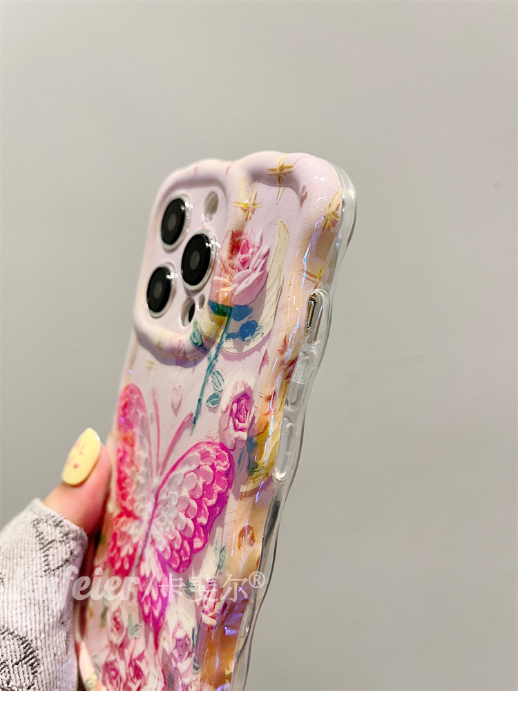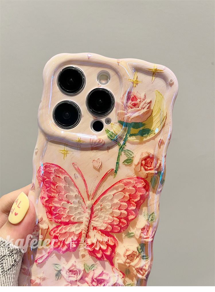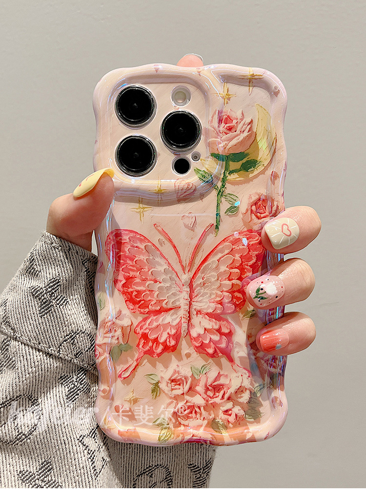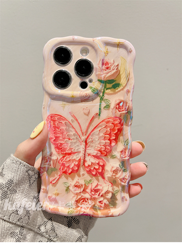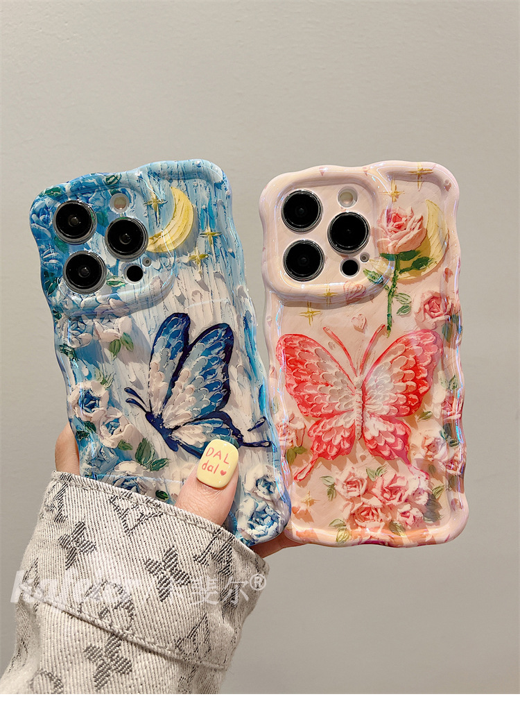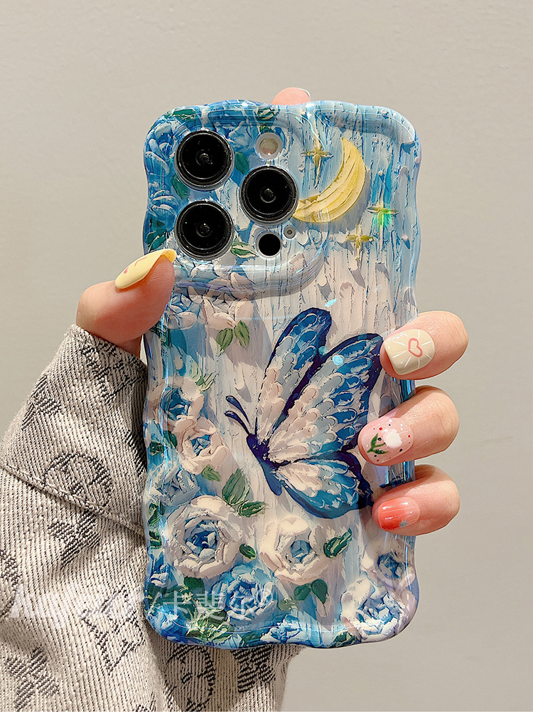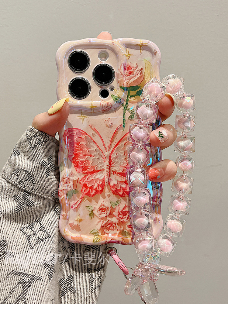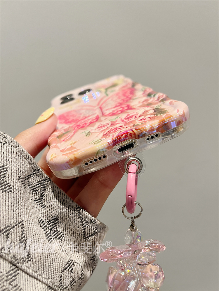 Accessories for high-end aesthetic oil painting blue rose butterfly bracelet iphone14pro max mobile phone case apple 15