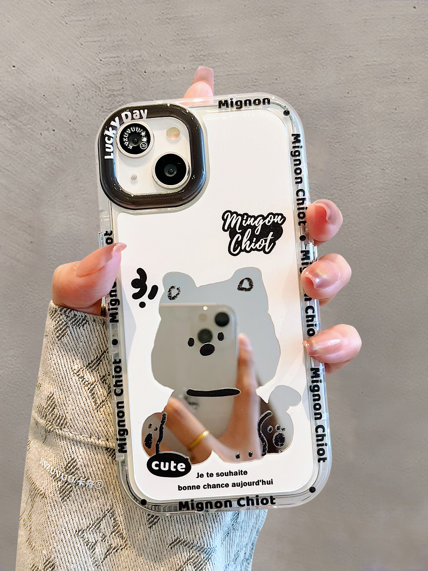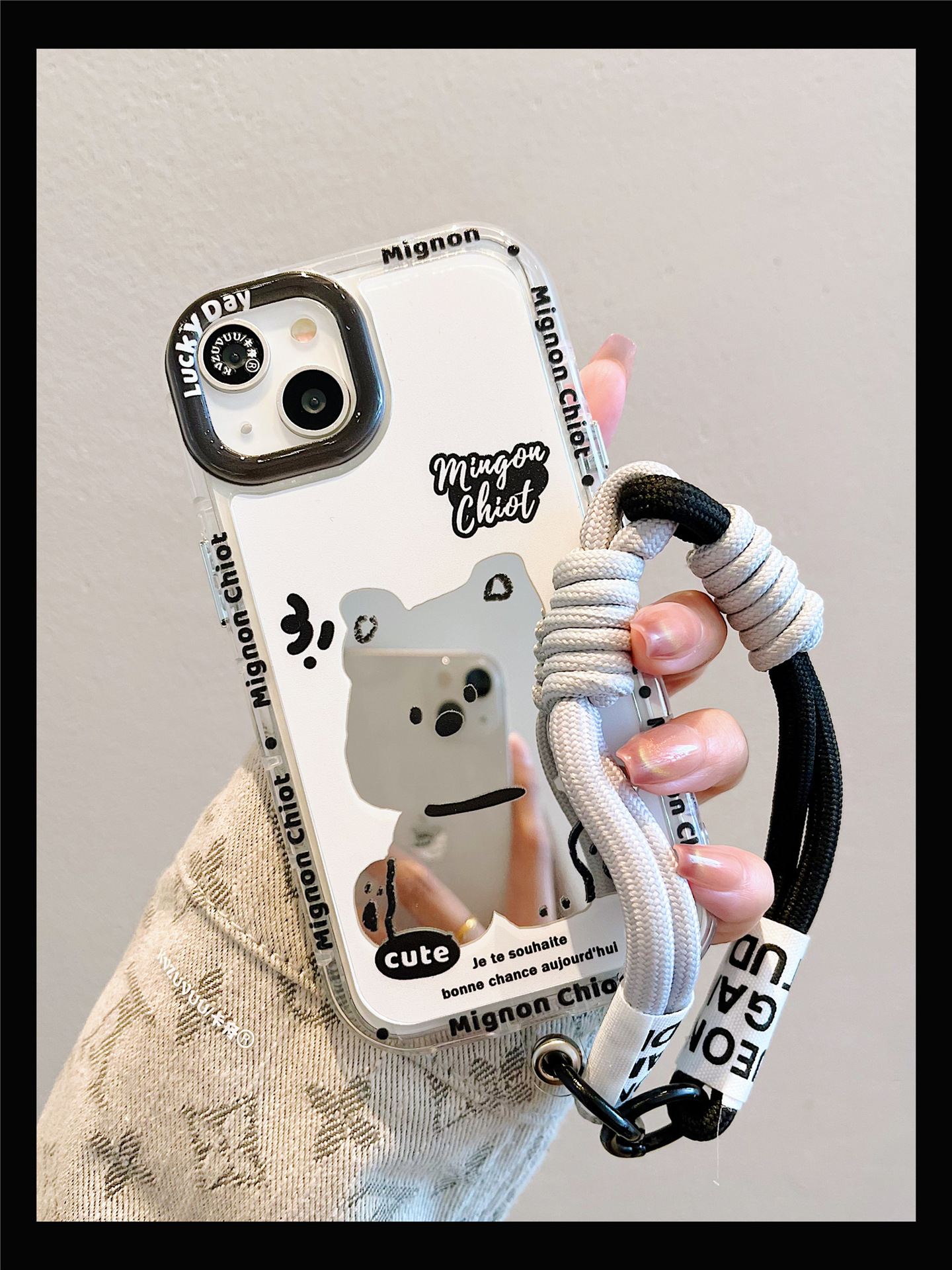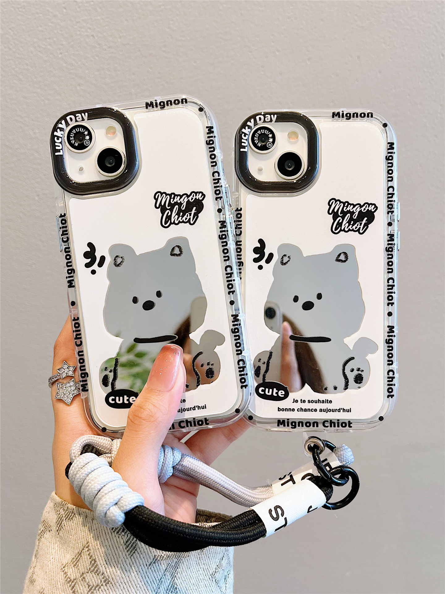 Accessories for iPhone 15 mobile phone case iphone14promax sitting dog lanyard mirror 13 fun cartoon 12p