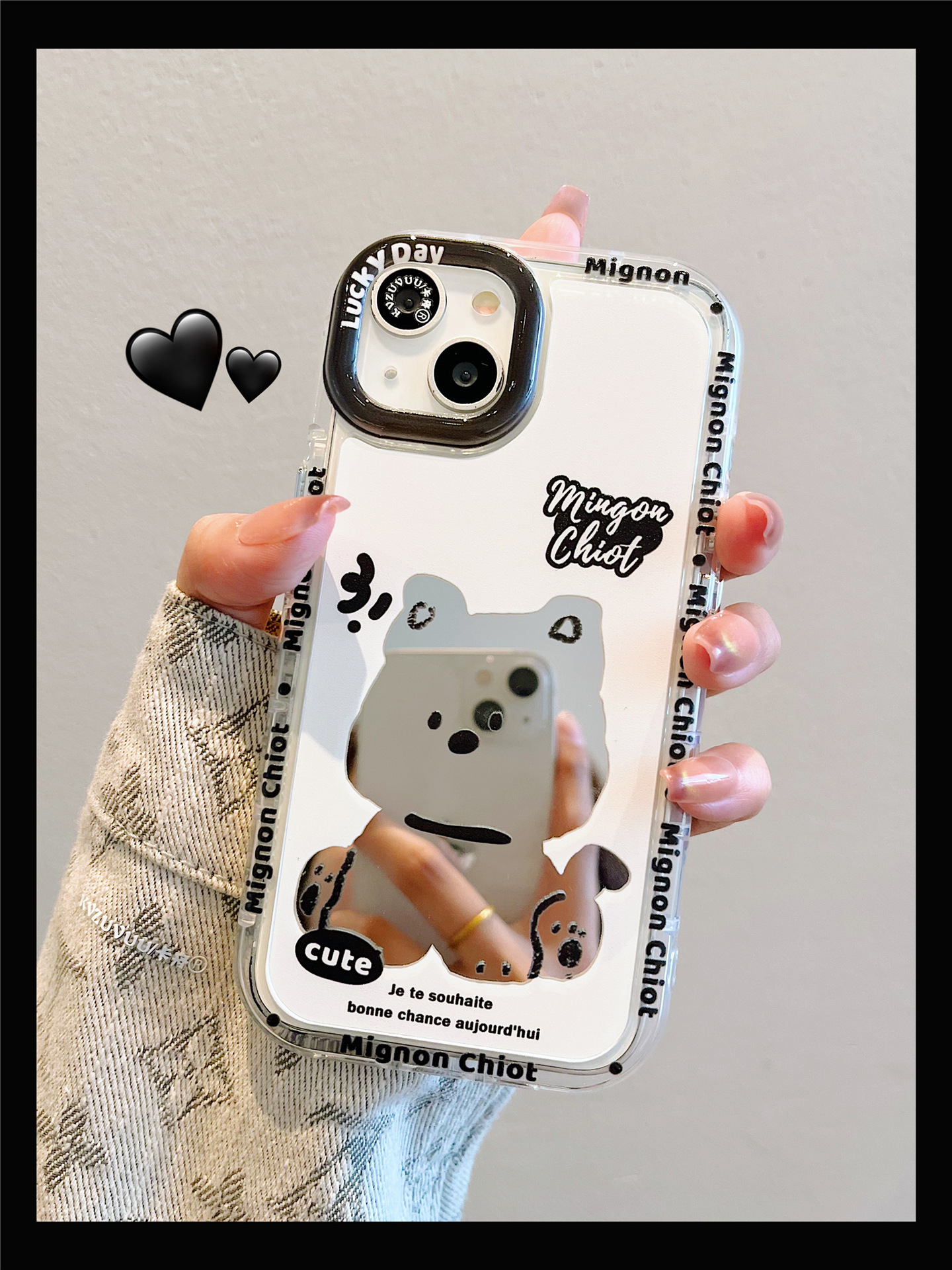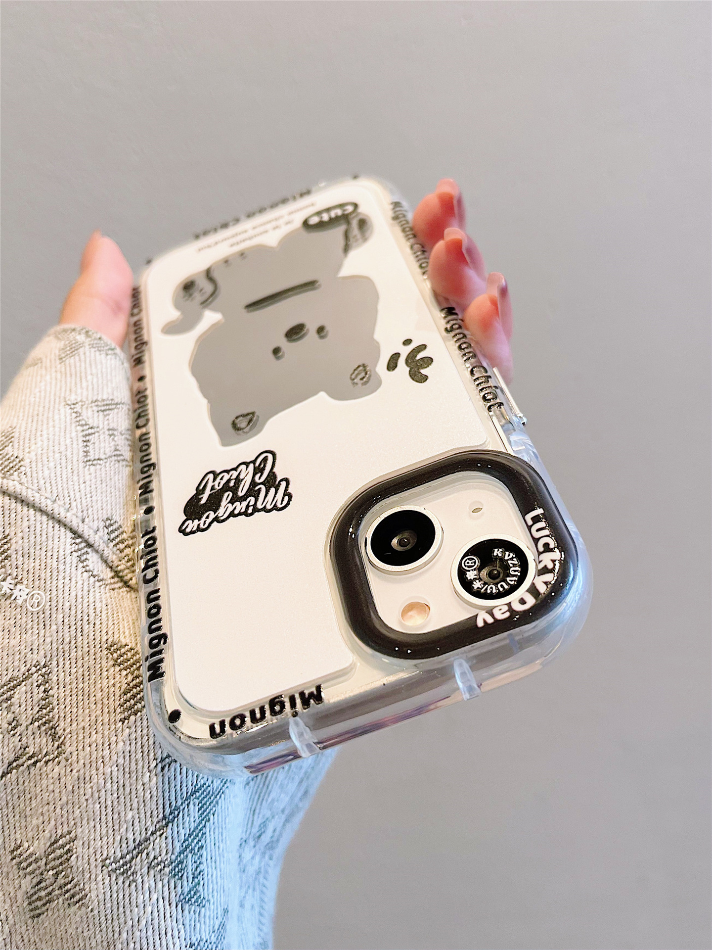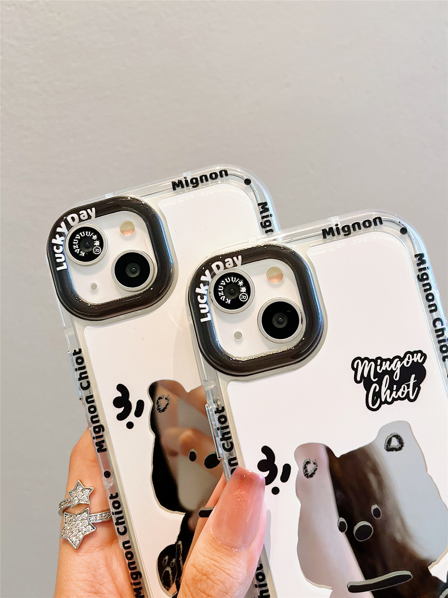 Accessories for iPhone 15 mobile phone case iphone14promax sitting dog lanyard mirror 13 fun cartoon 12p