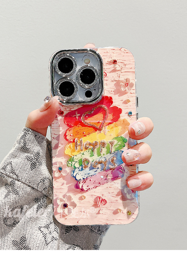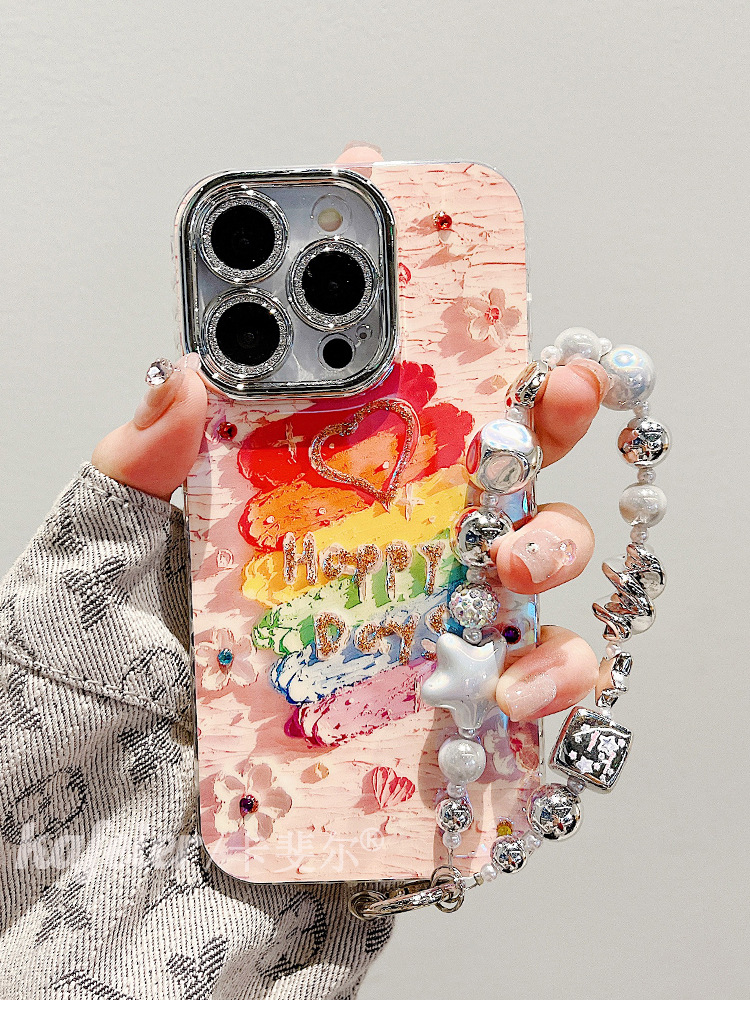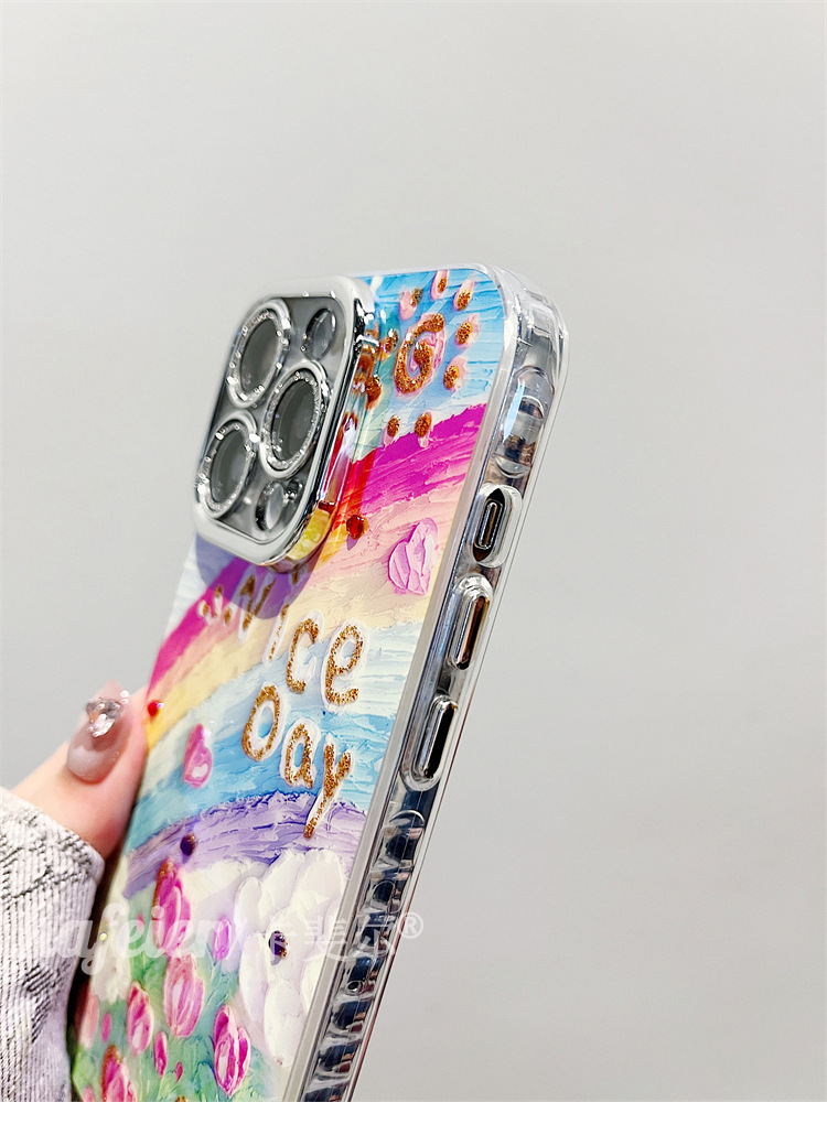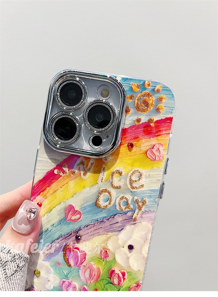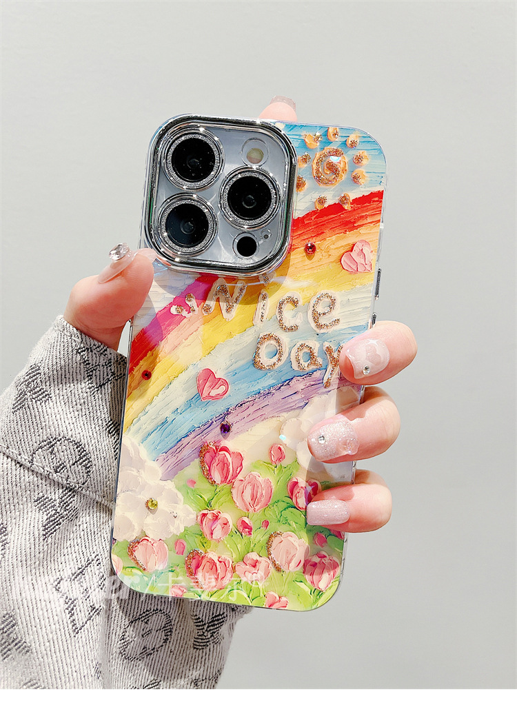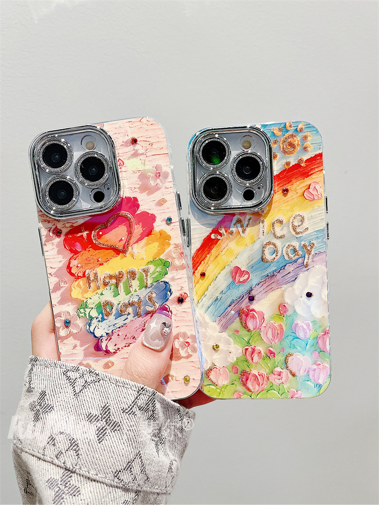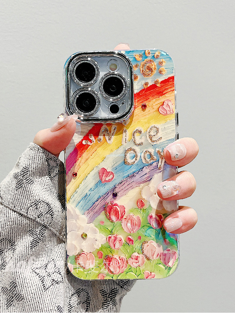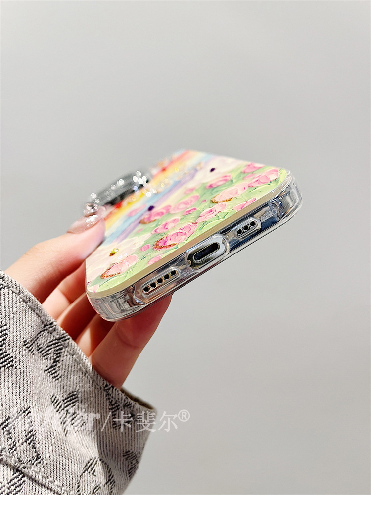 Accessories for premium art oil painting rainbow flower bracelet iphone15pro max phone case apple 13 new