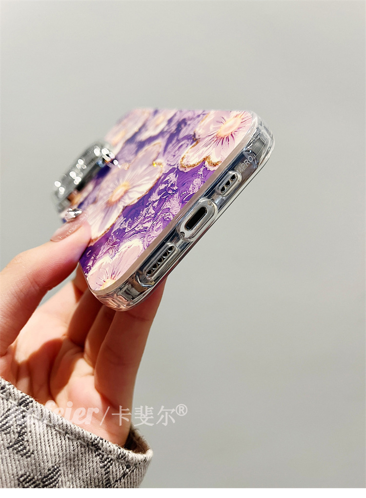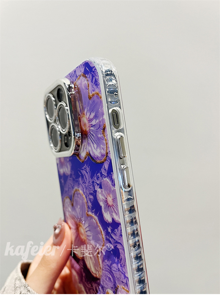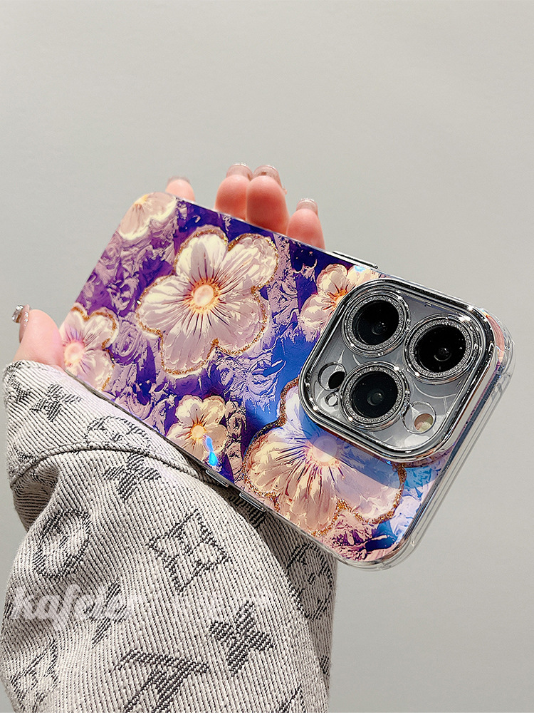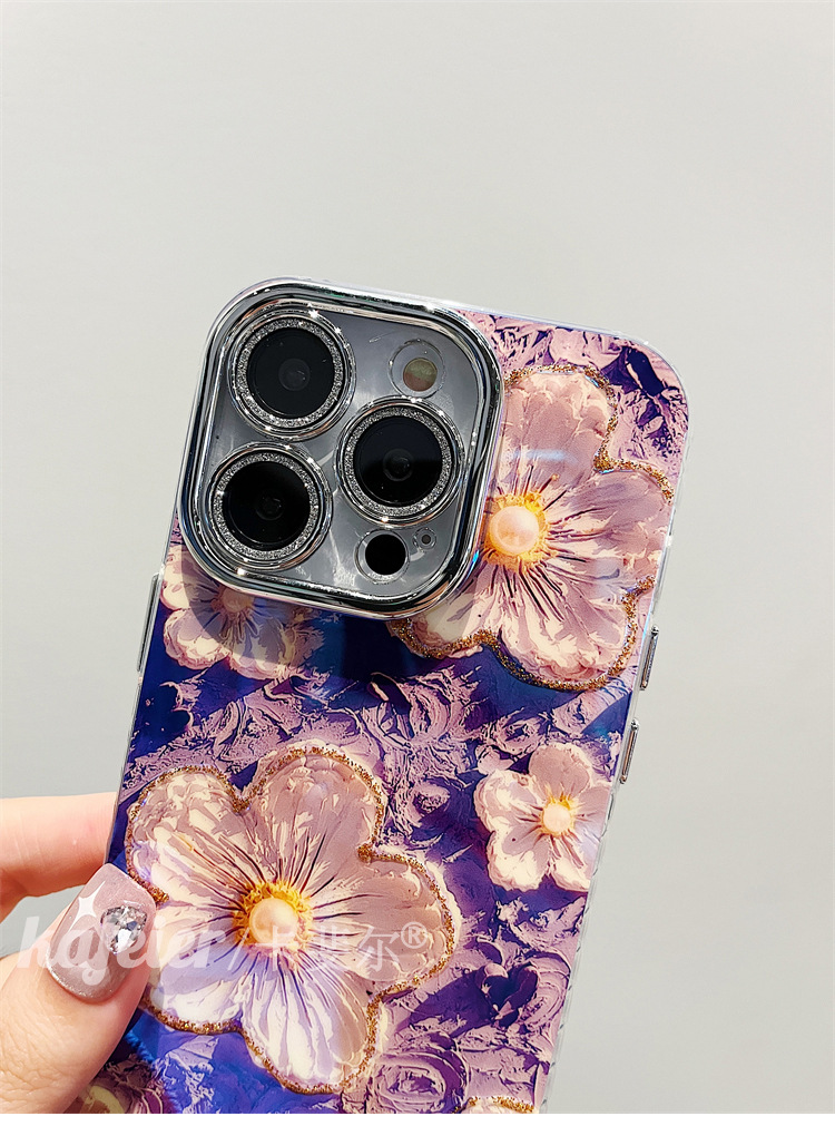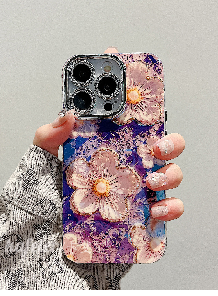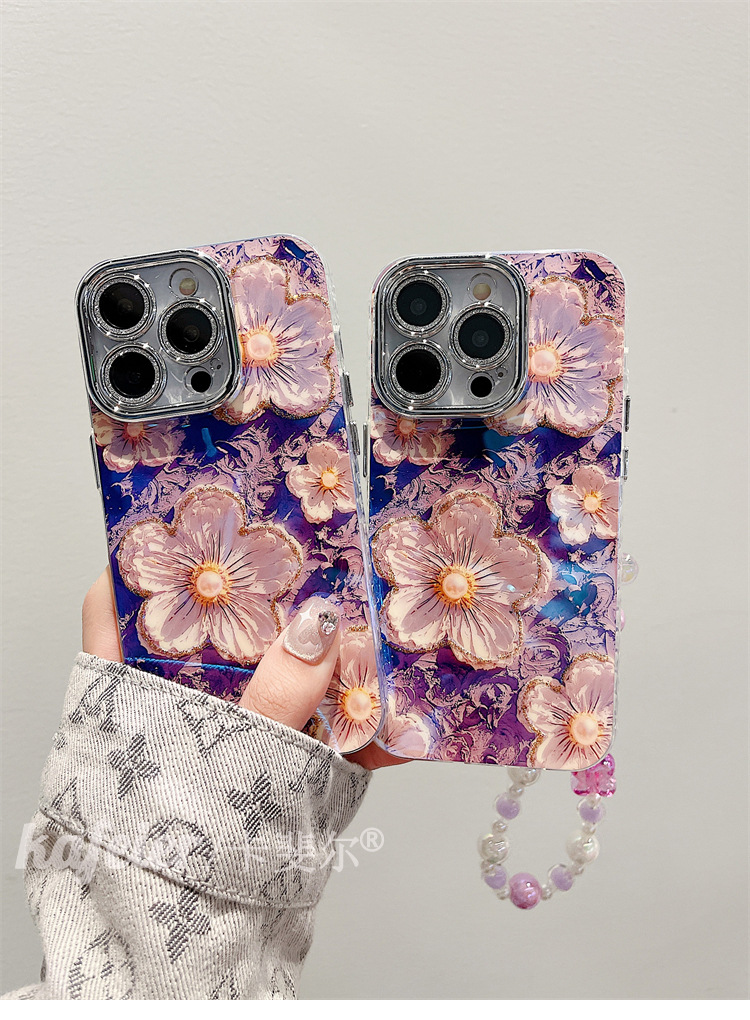 Accessories for premium blue light oil painting pearl flower chain iphone15pro max mobile phone case apple 14 new