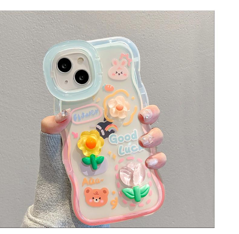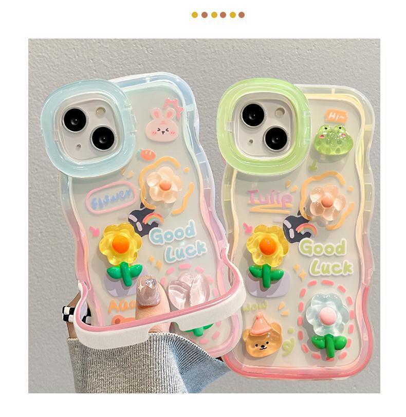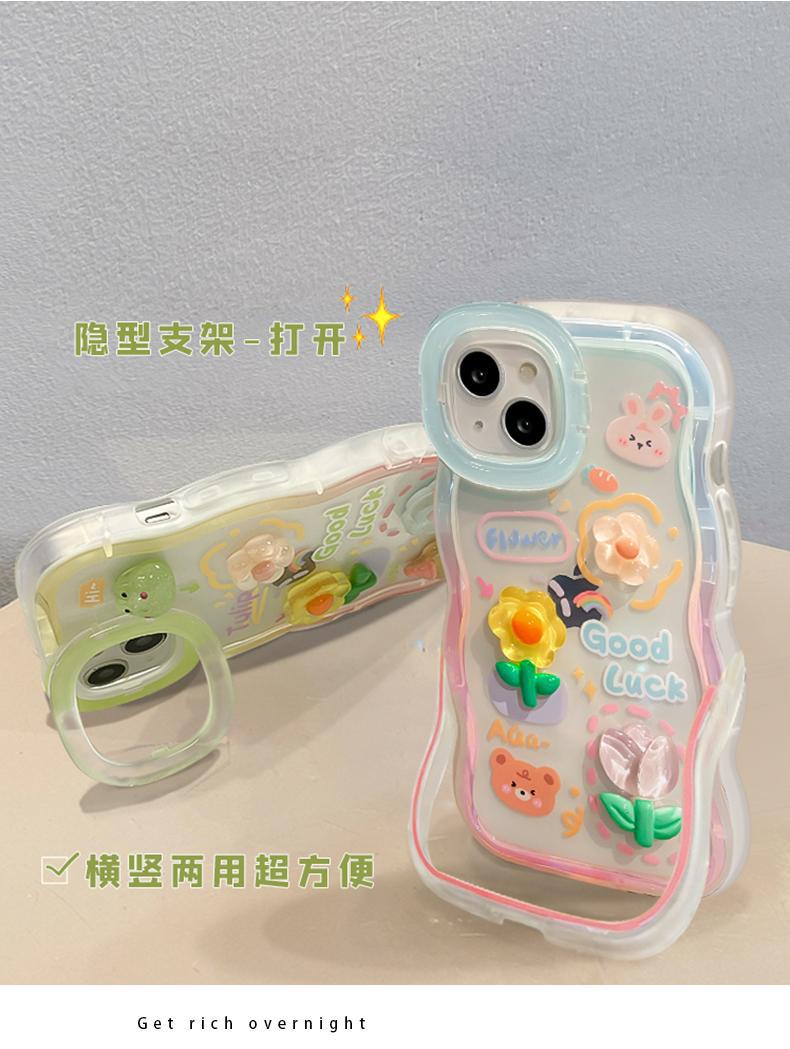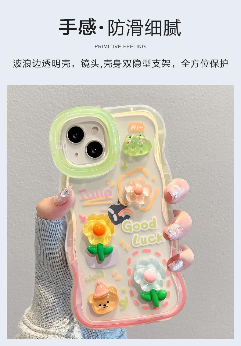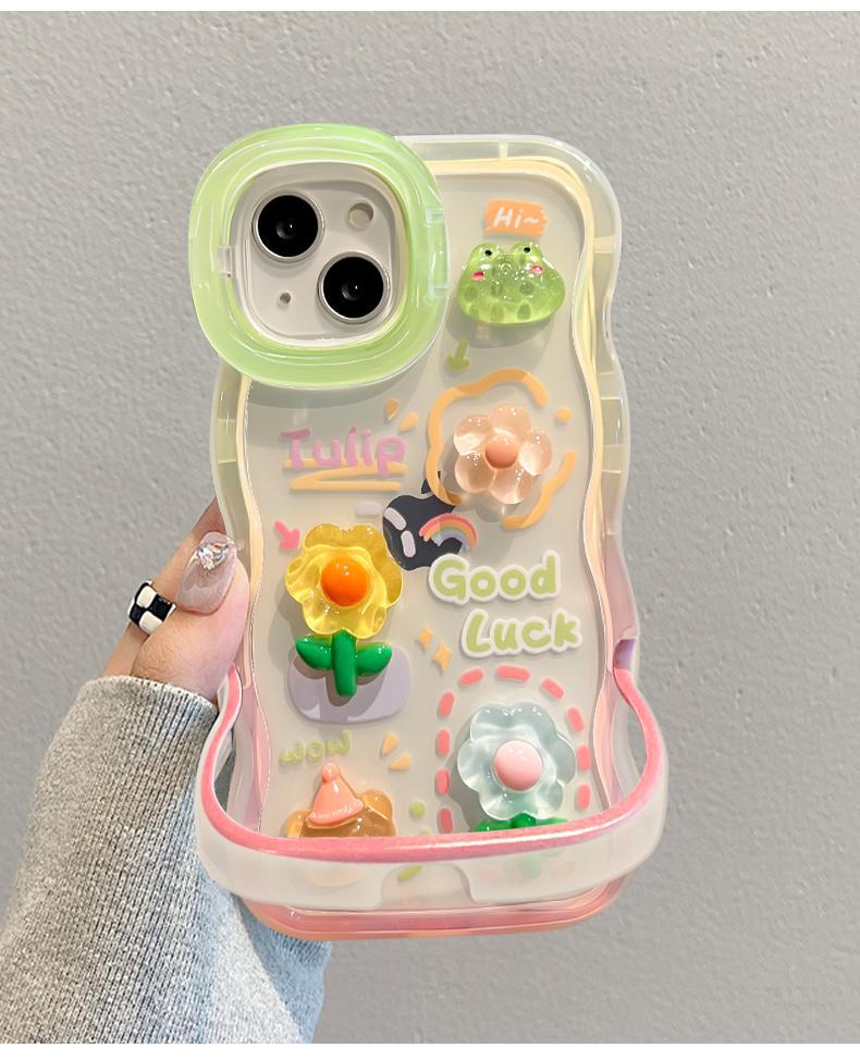 Accessories Frog Flower for Apple 13/14 Double Stand New iPhone 15 Cute Niche Mobile Phone Case Creative Cartoon