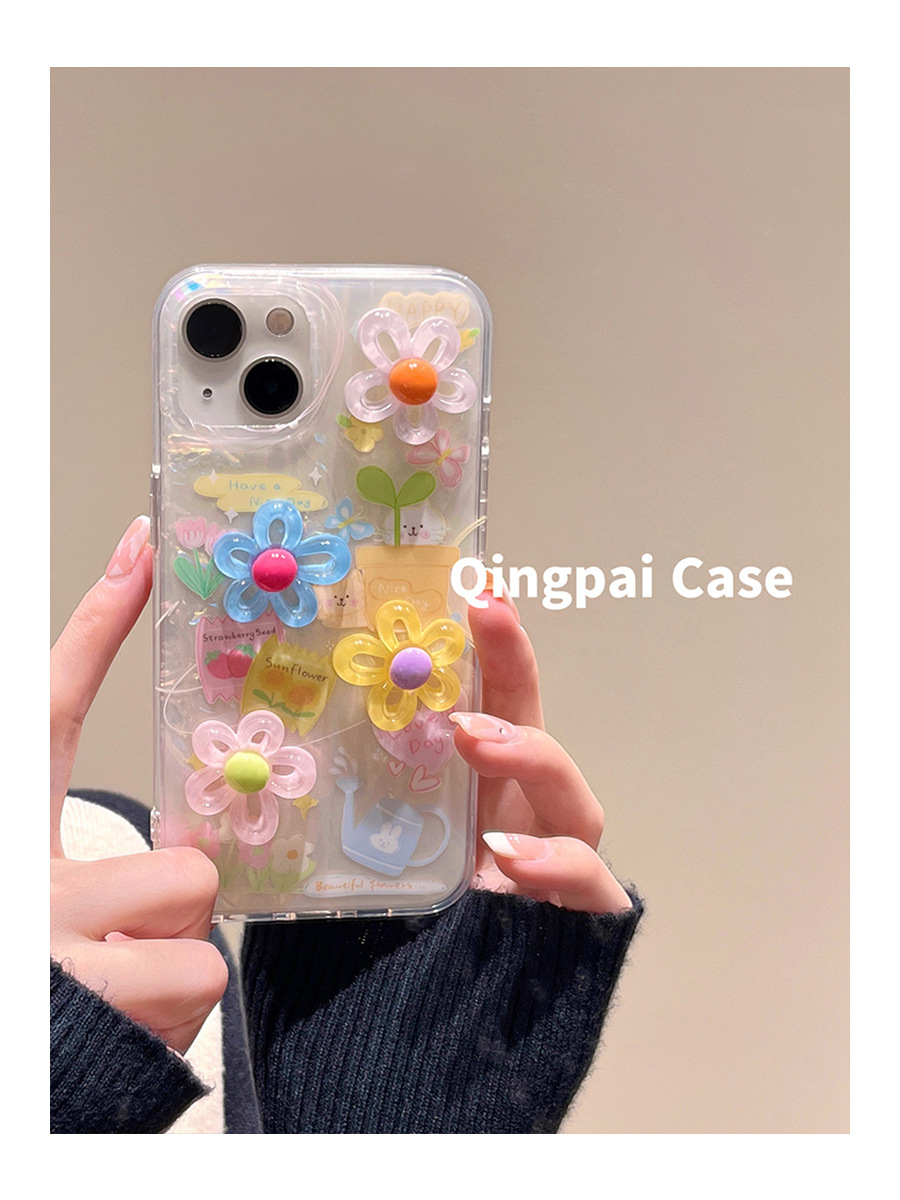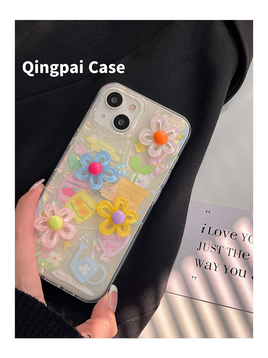 Accessories ins summer color three-dimensional flowers for Apple 15promax mobile phone case iphone13 new 14pro women