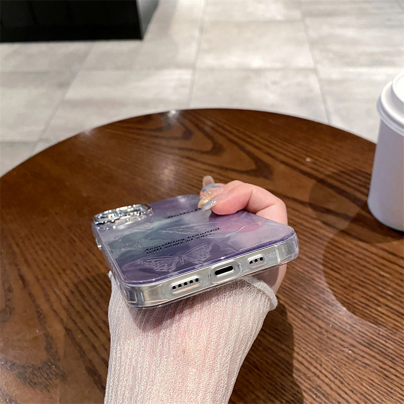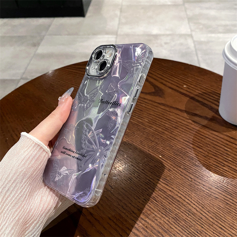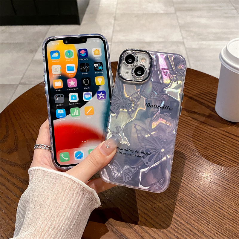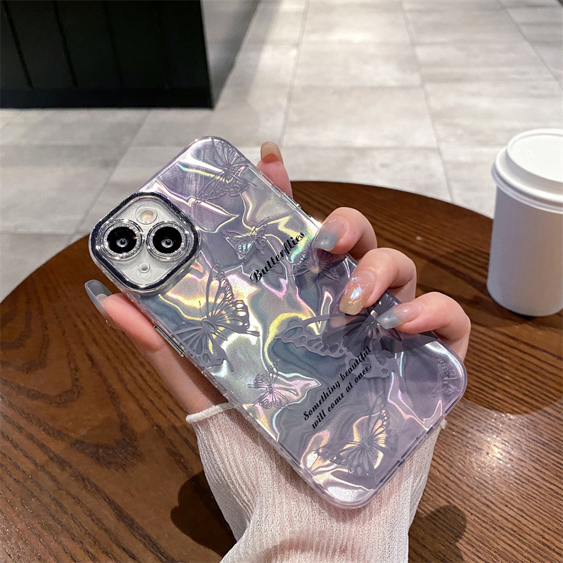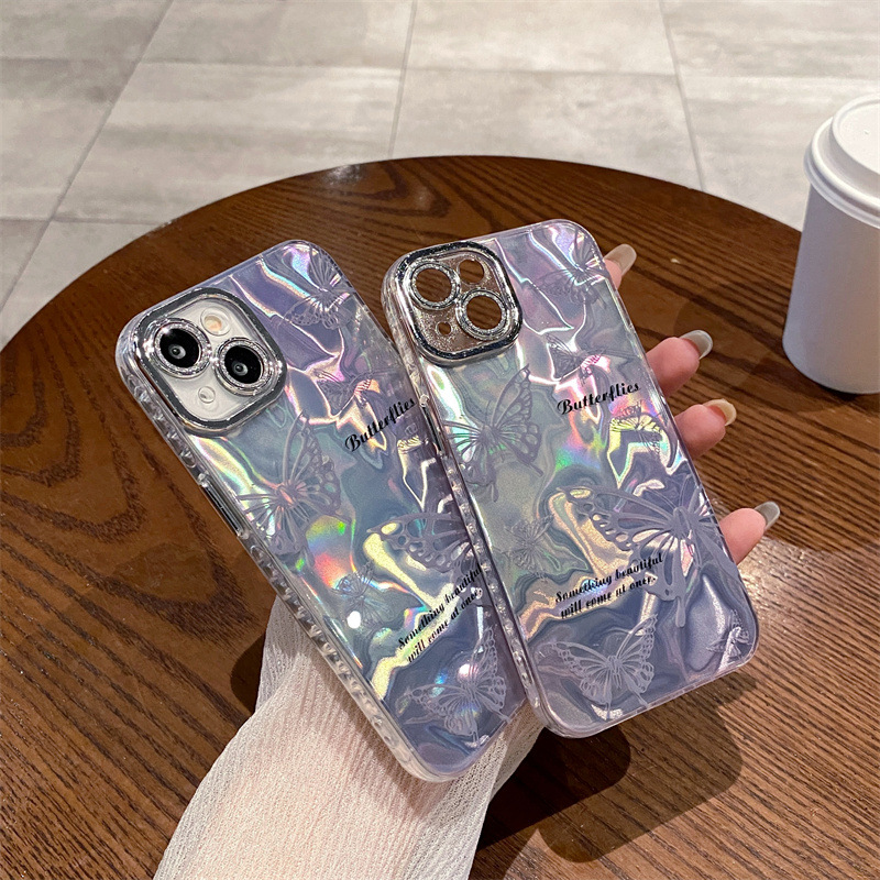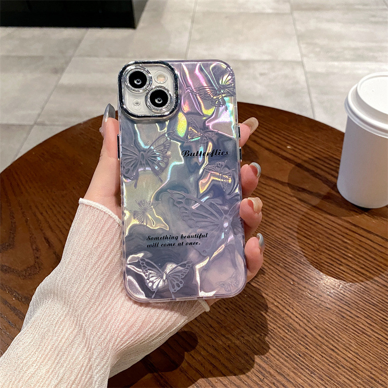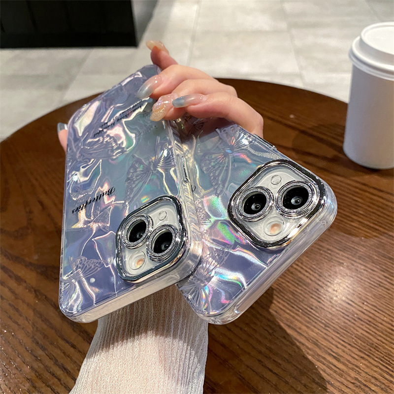 Accessories Japanese and Korean water ripple butterfly for iPhone15Pro mobile phone case Apple 14promax lens film 13/12 women
