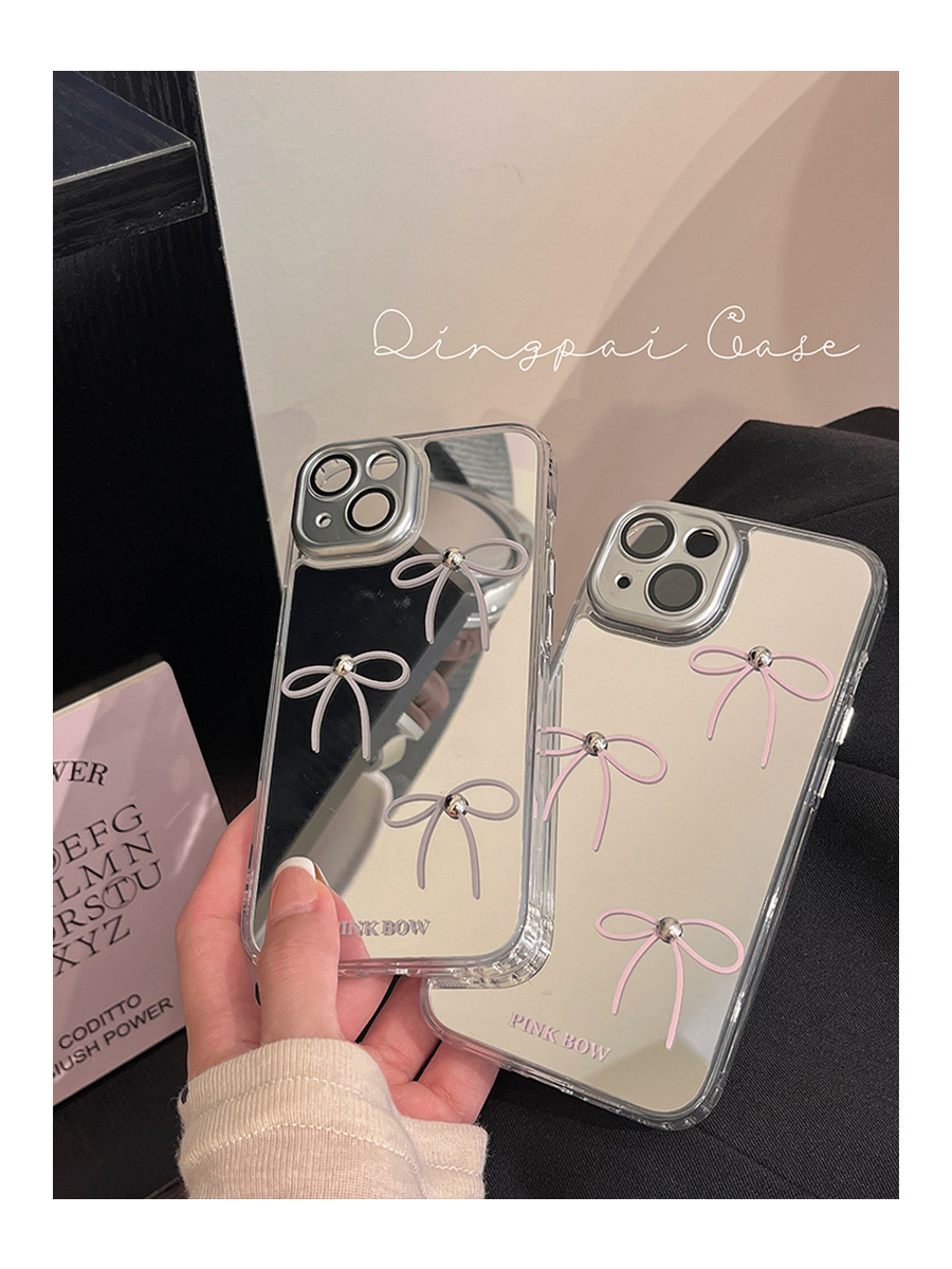 Accessories Korean ins wind mirror bow for Apple 15promax mobile phone case iphone13 new 14pro women