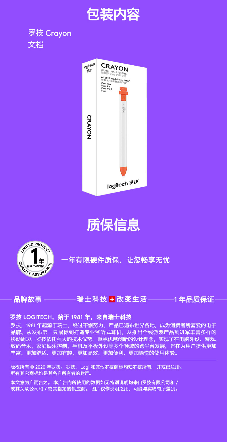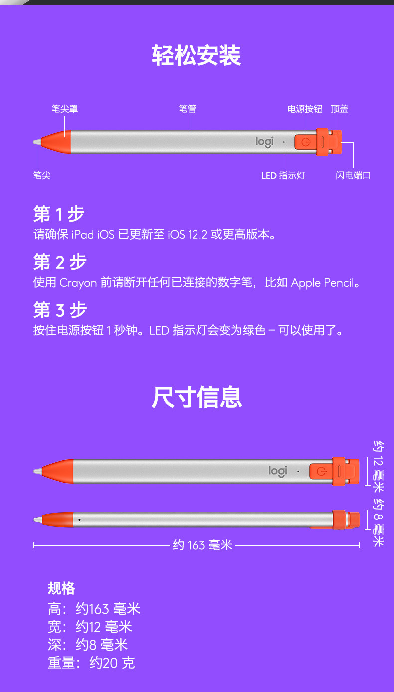 Accessories Logitech CRAYON IP10 Stylus, Apple Pen iPad Pro Drawing Pen iPad Pencil