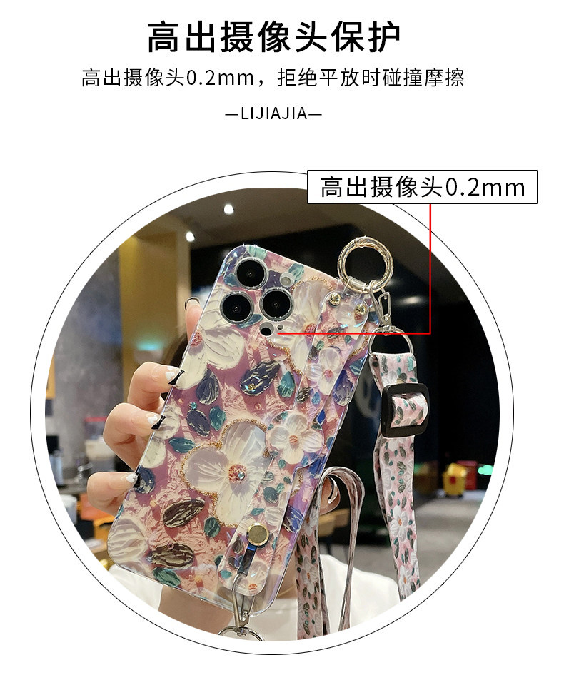 Accessories New Point Diamond Wristband Camellia iphone14promax Mobile Phone Case Crossbody Back Apple 13 Women Soft Silicone