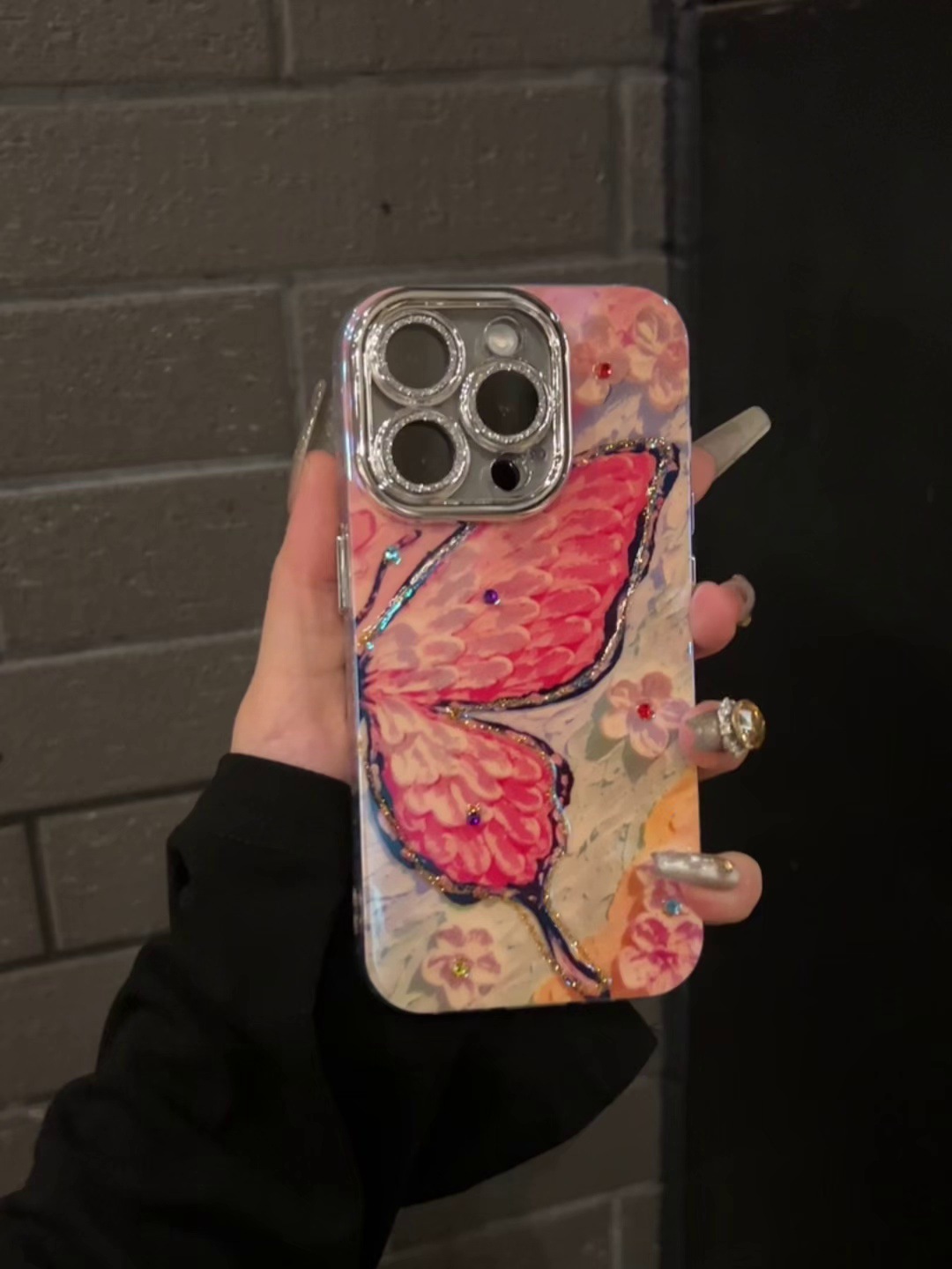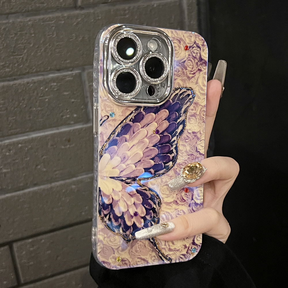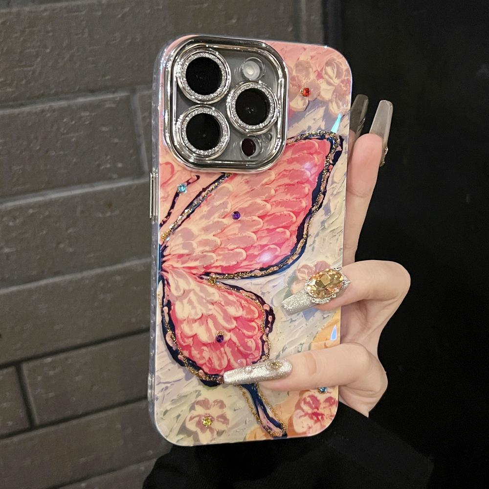 Accessories Oil Painting Butterfly Dot Drill High-end Luxury Applicable Apple 15promax Mobile Phone Case iPhone13 New 14Pro