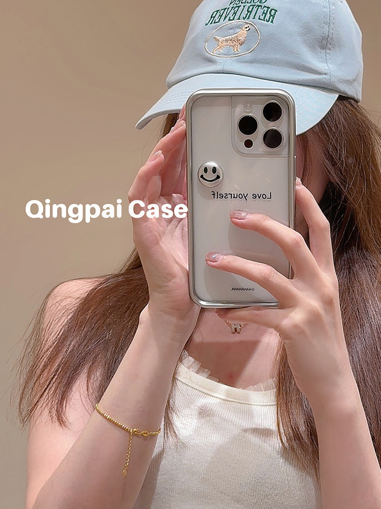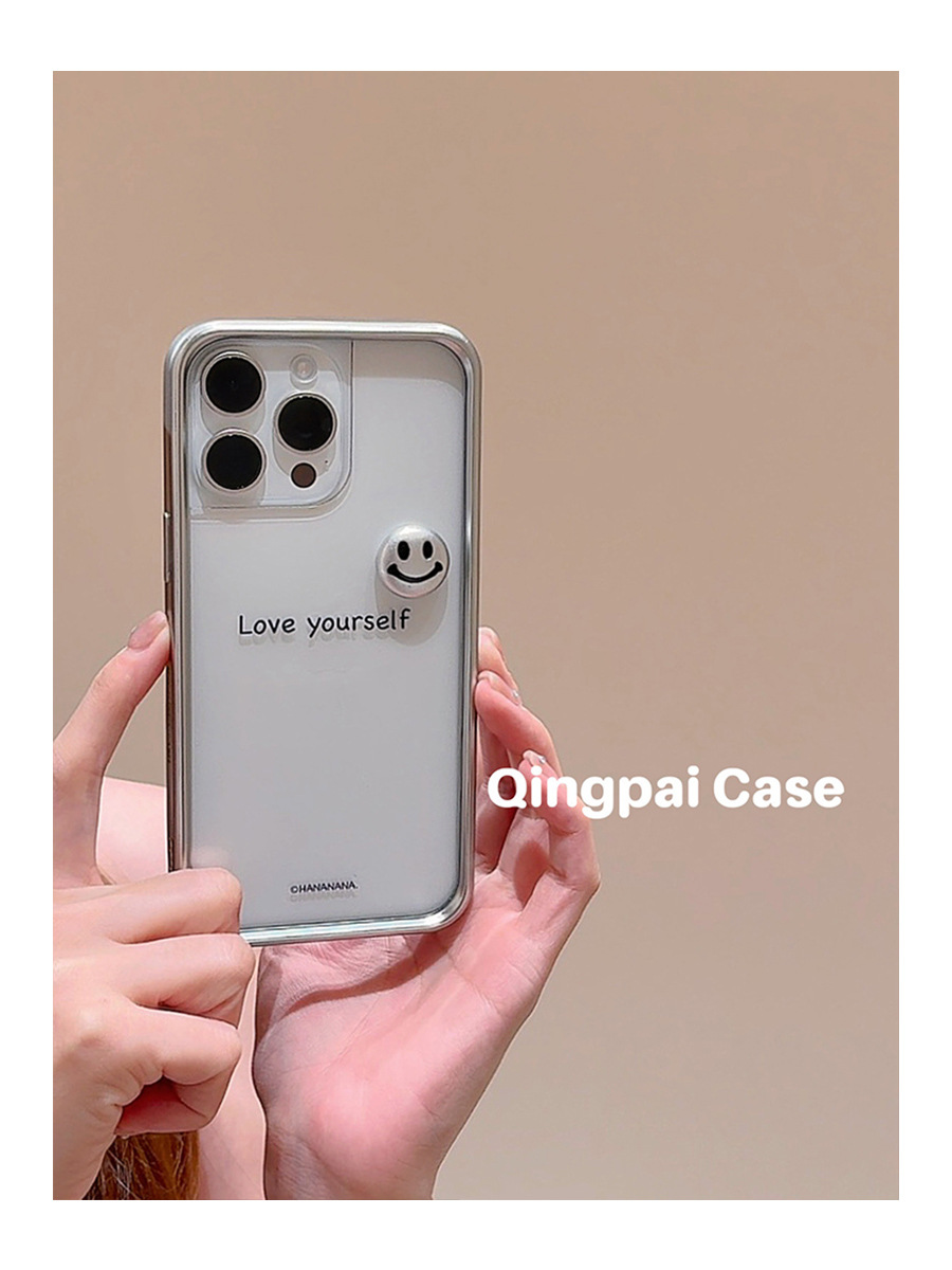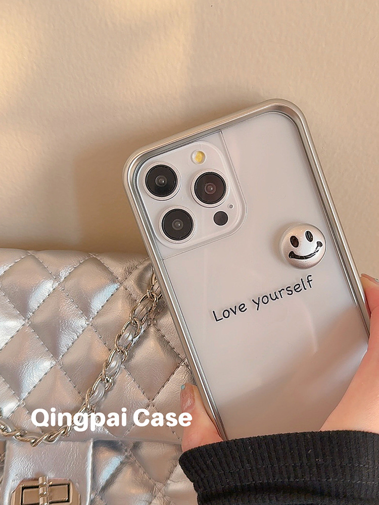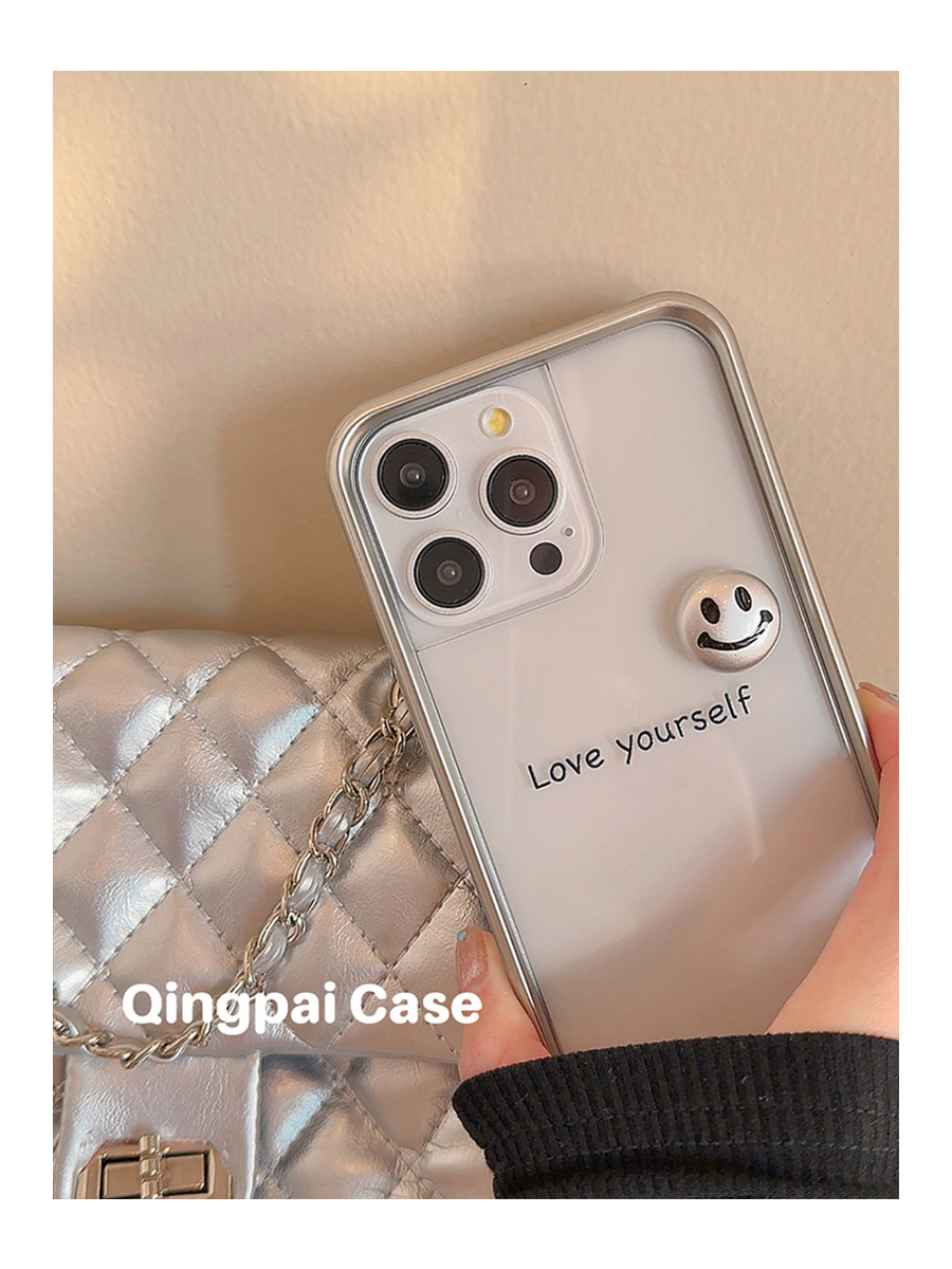 Accessories Personalized transparent three-dimensional silver smiley face for Apple 15promax mobile phone case iphone13 new 14pro