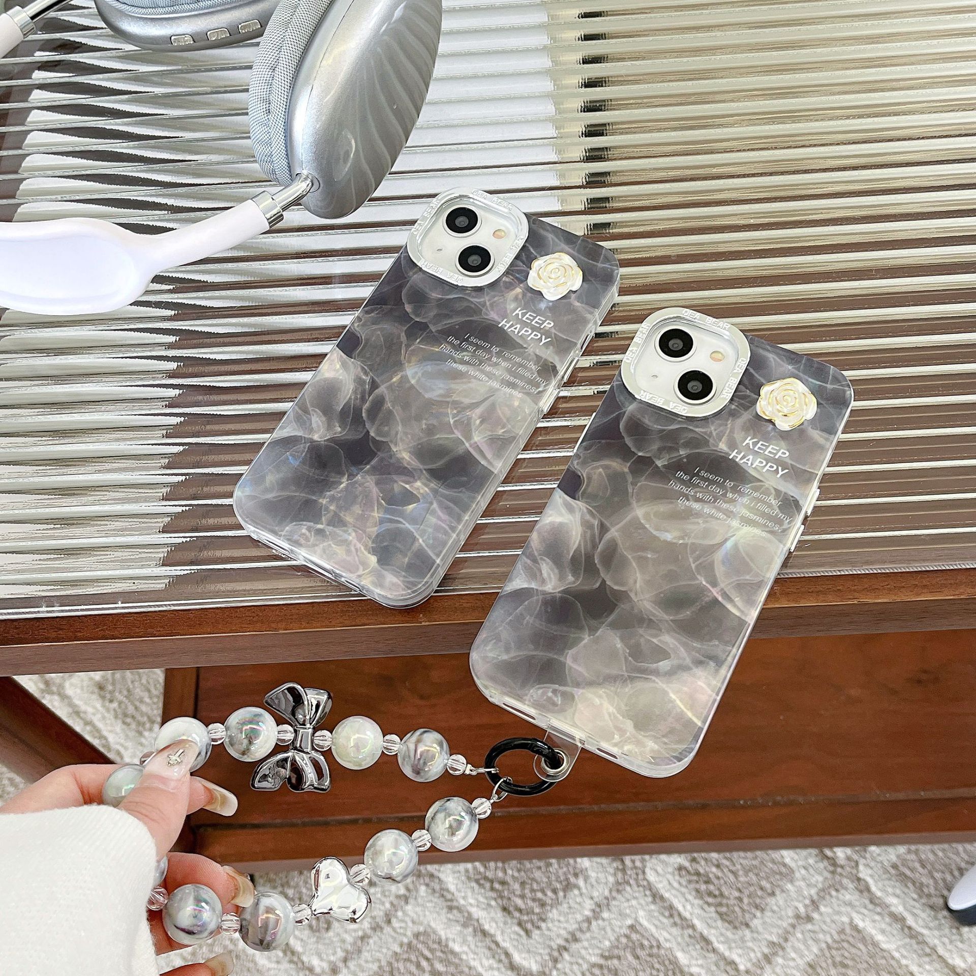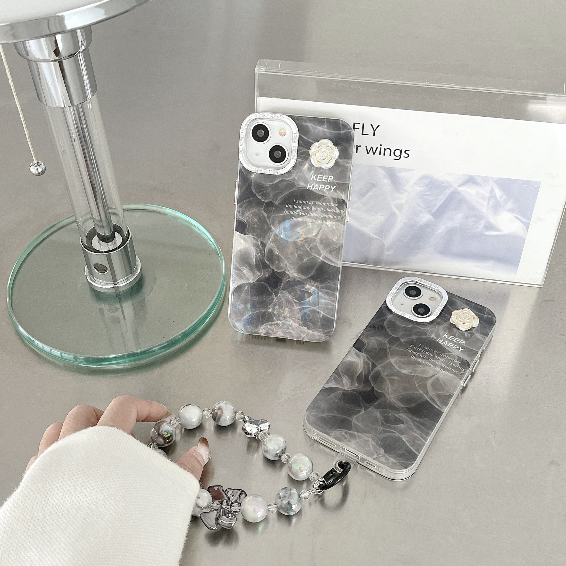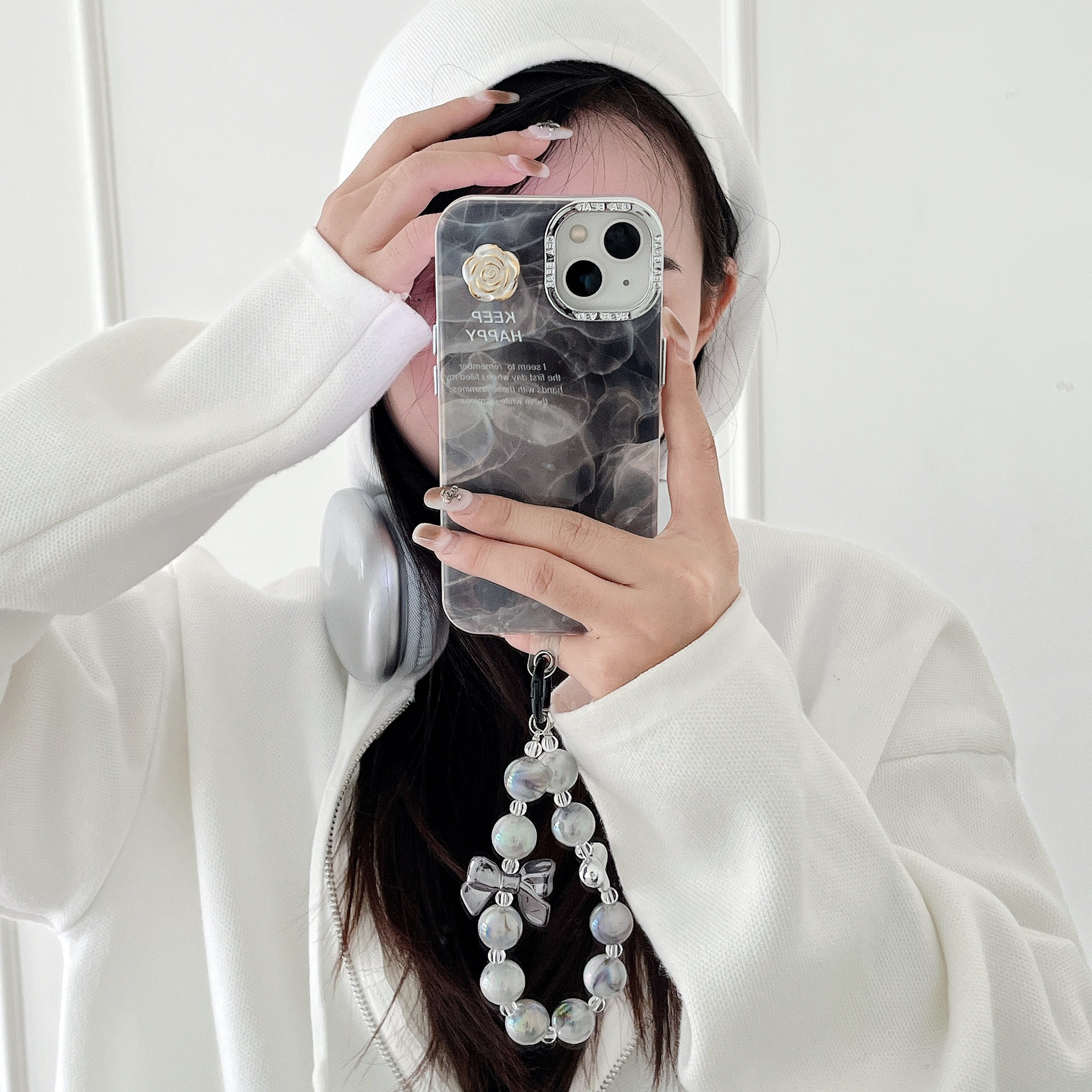 Accessories Premium sense black smudge three-dimensional flower for iPhone15promax mobile phone case Huawei mate60 chain