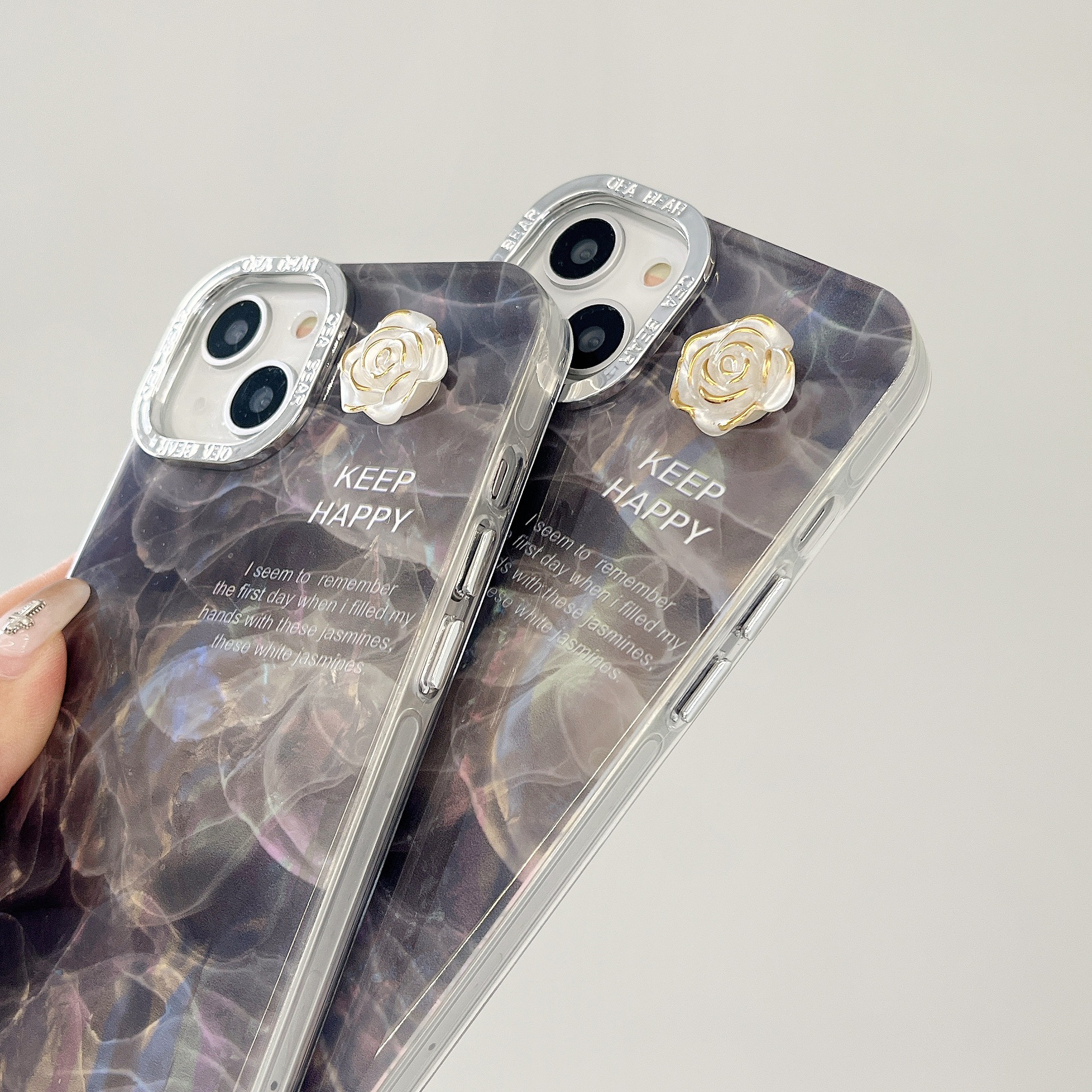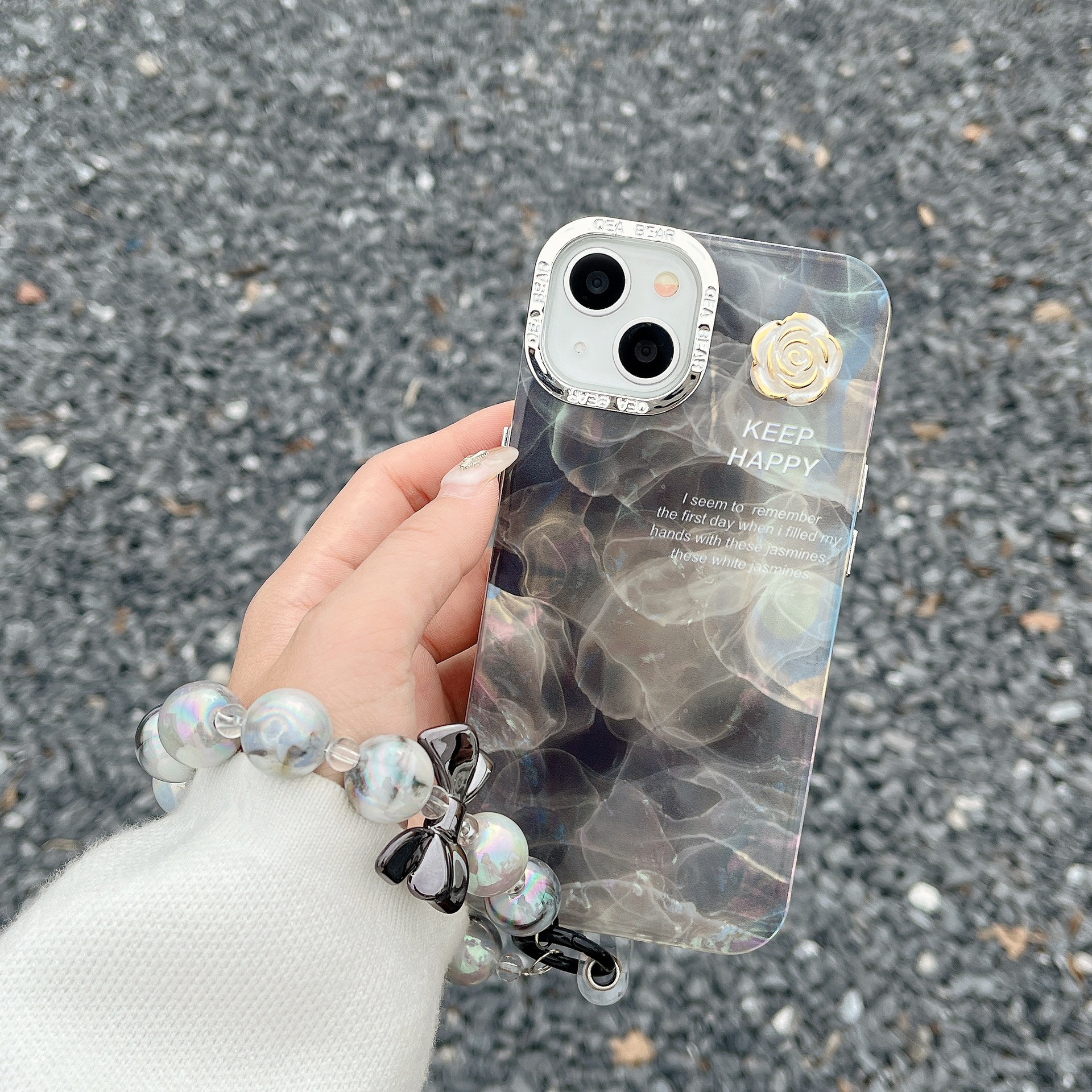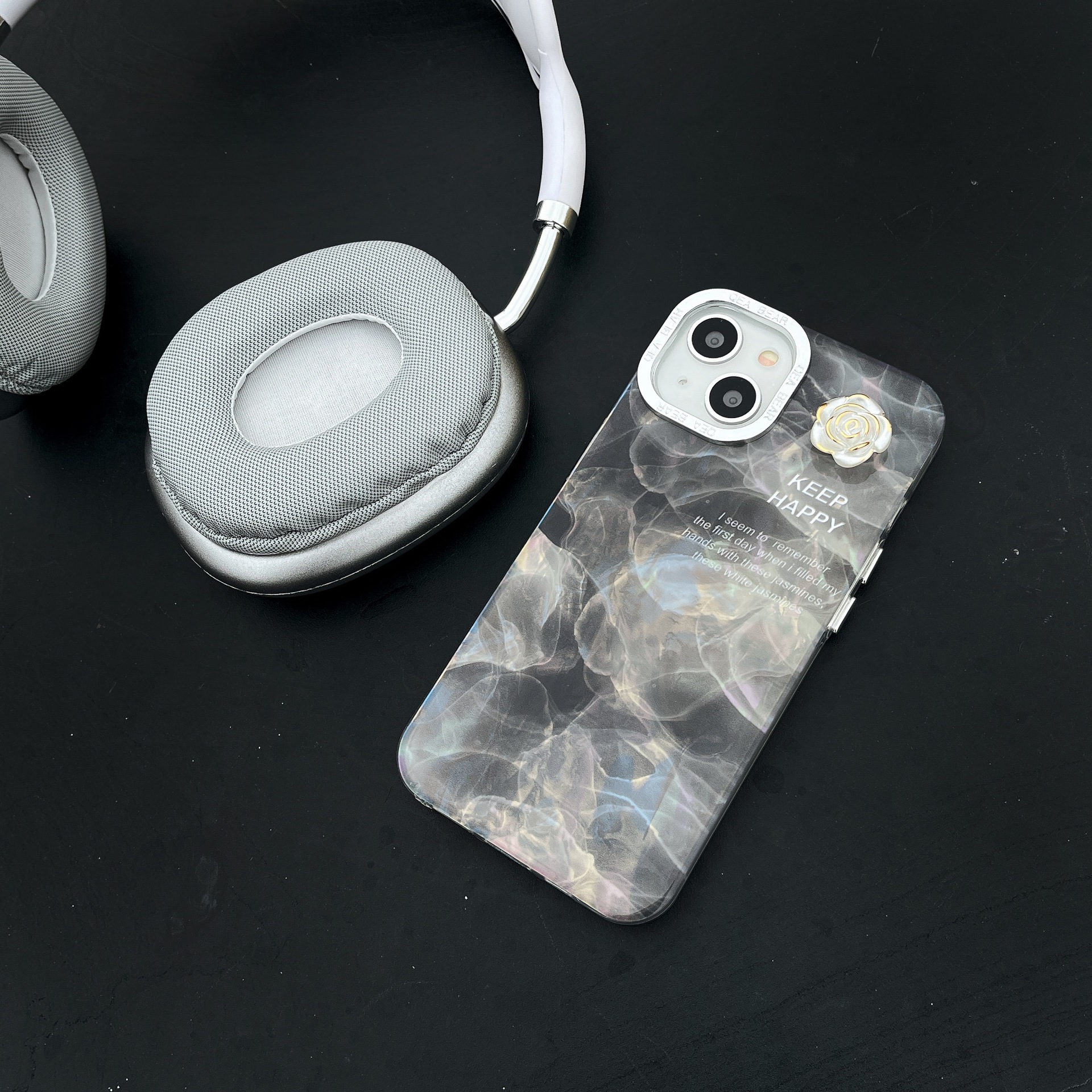 Accessories Premium sense black smudge three-dimensional flower for iPhone15promax mobile phone case Huawei mate60 chain