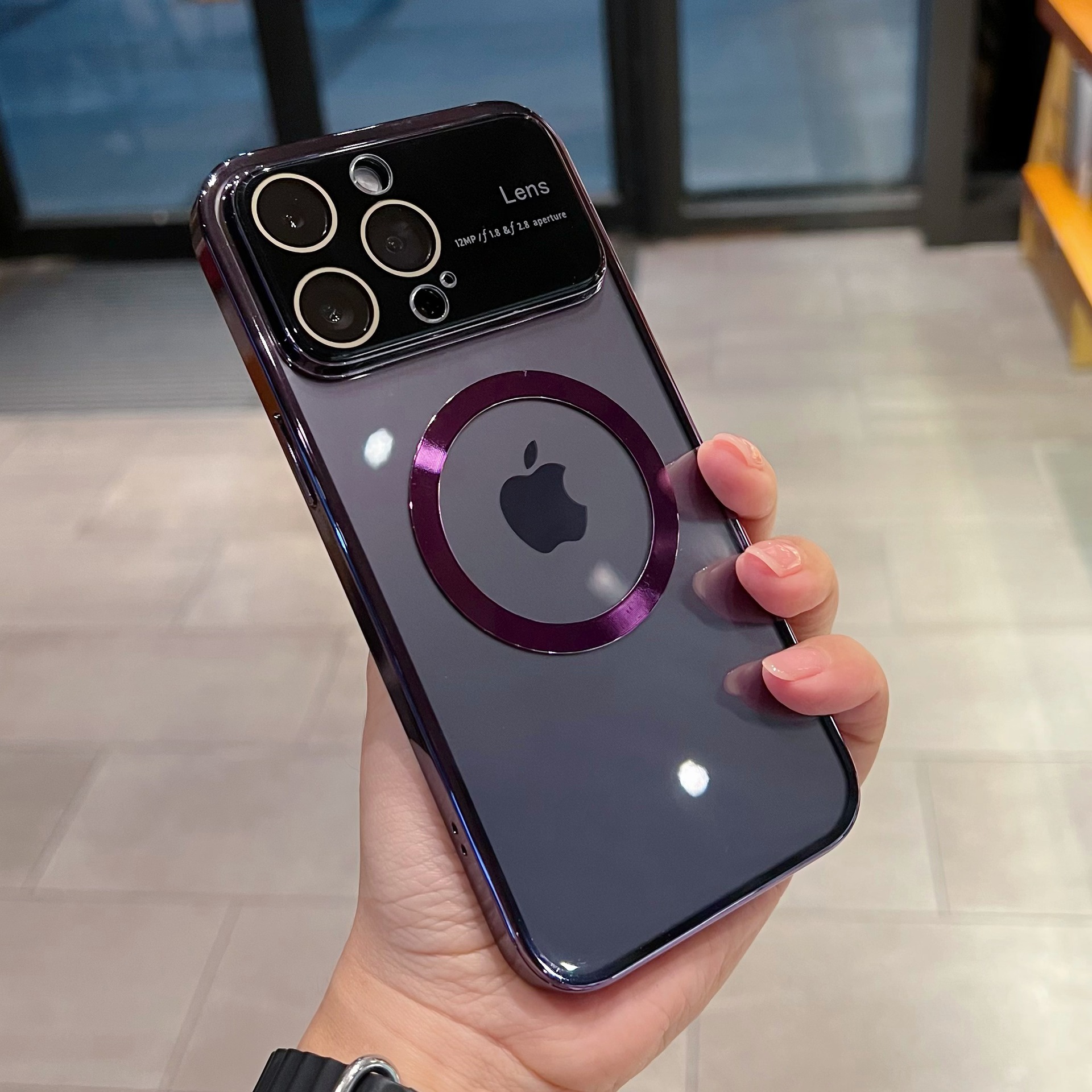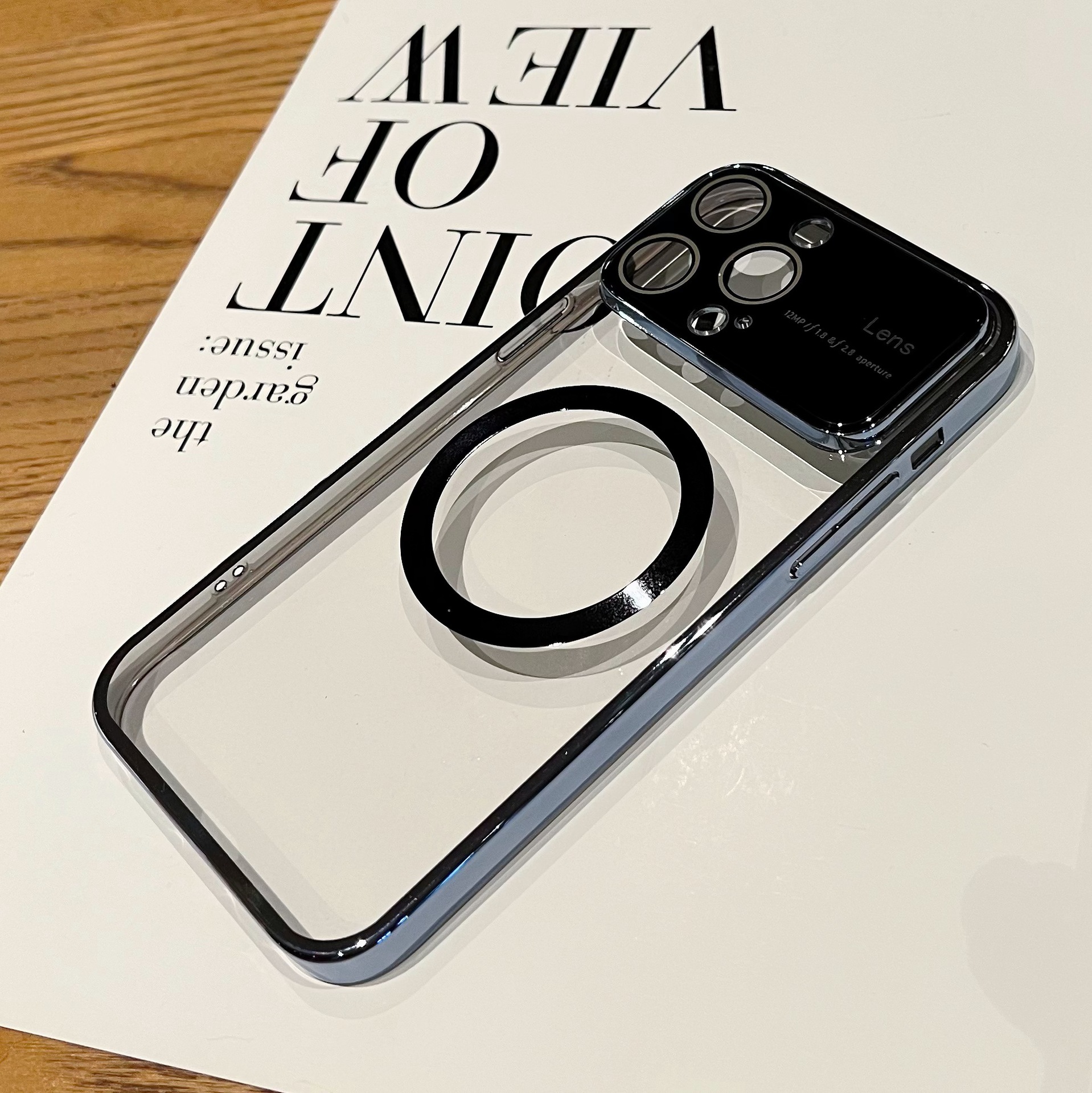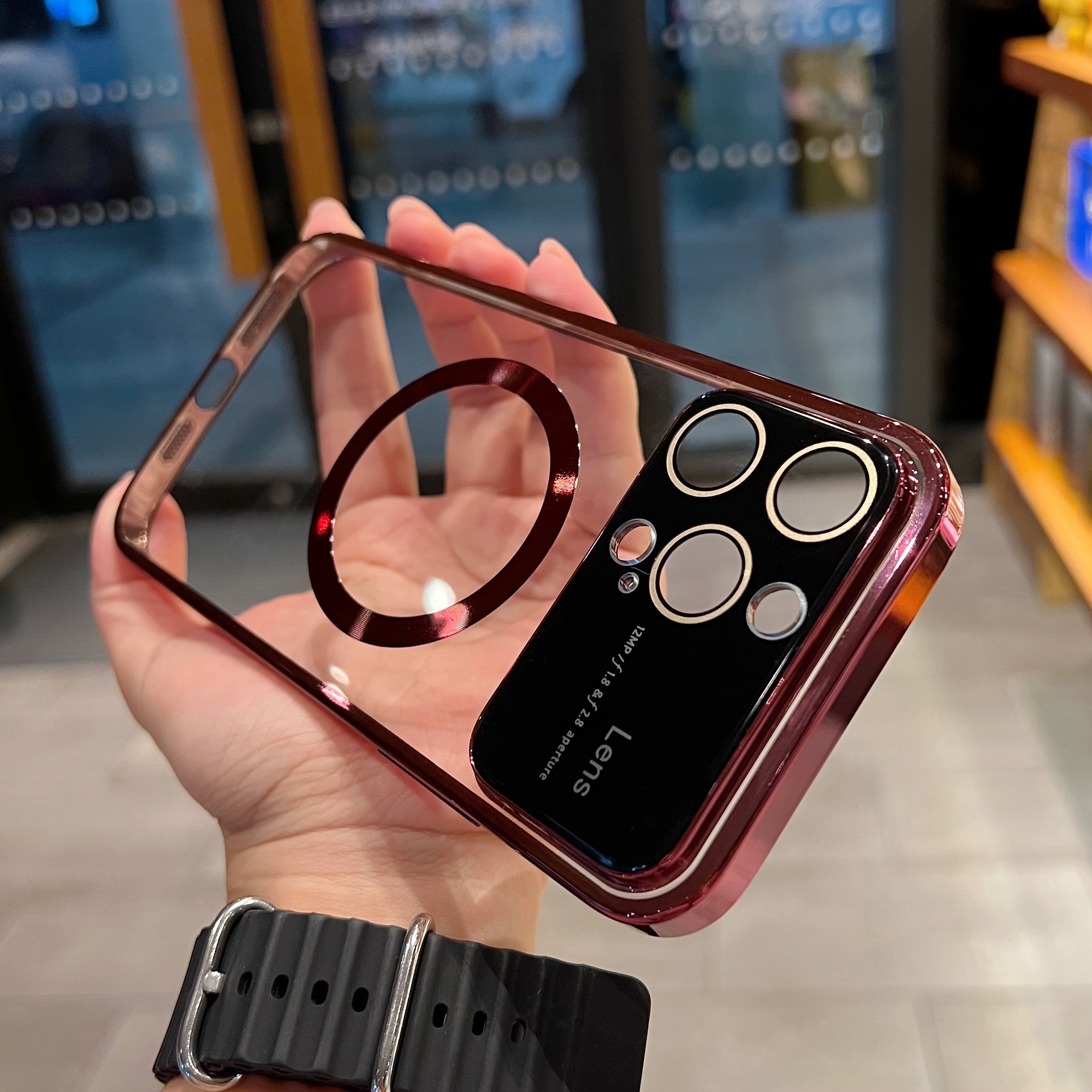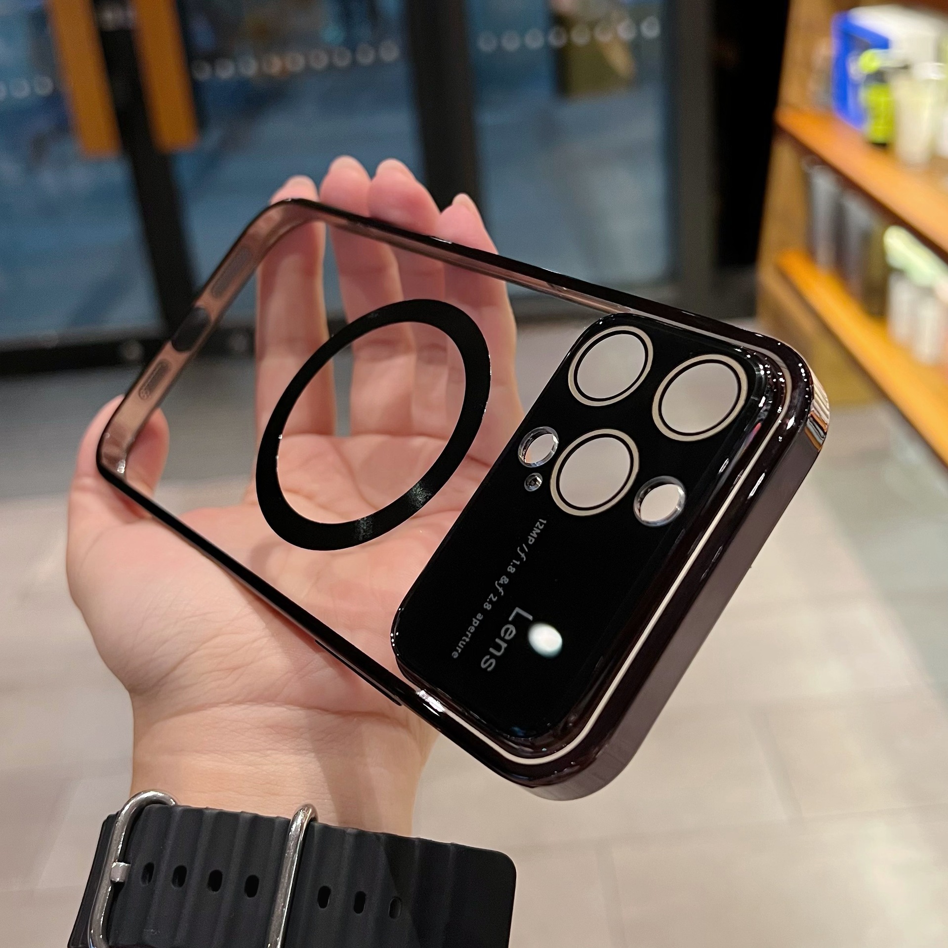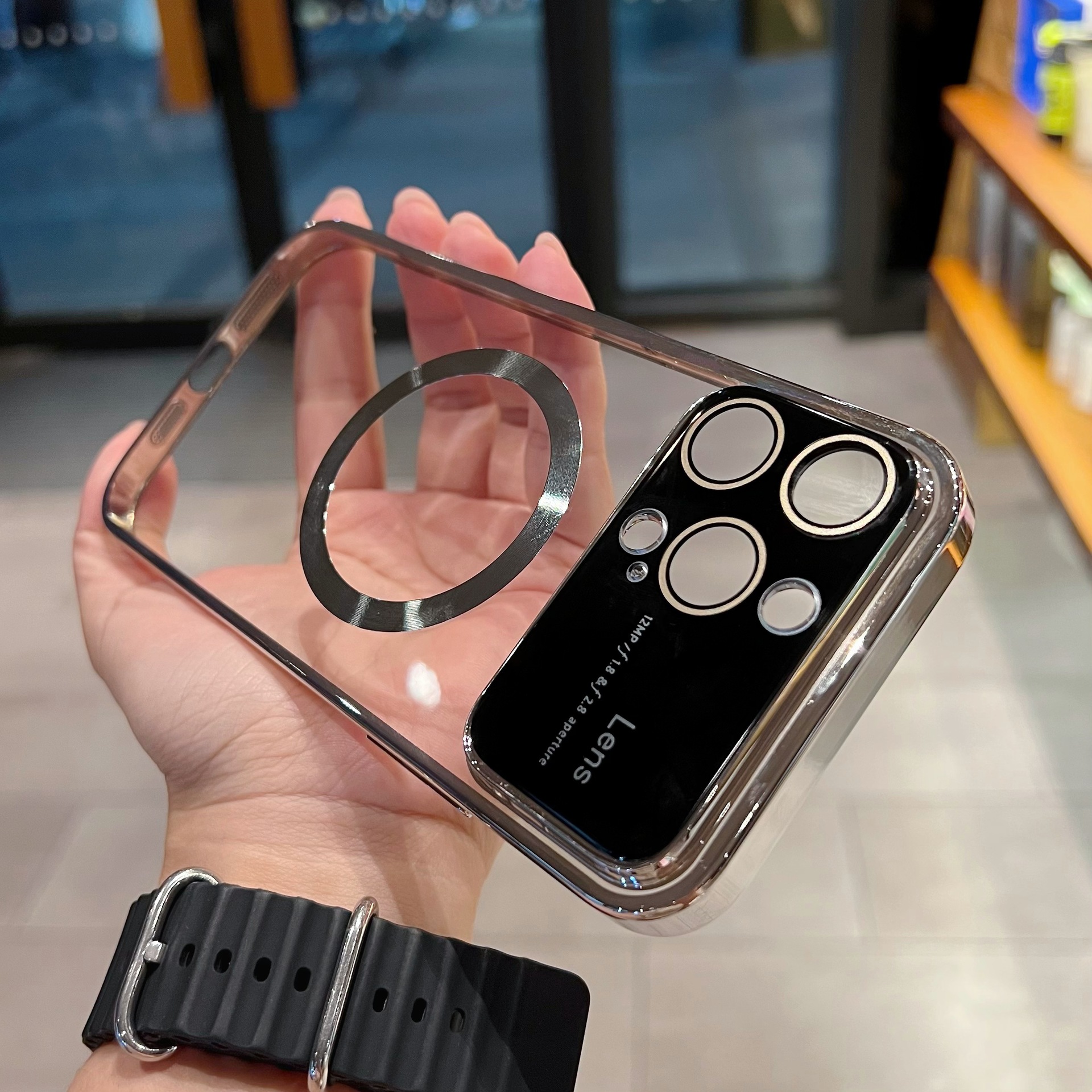 Accessories (Shipping fee not included) Magnetic large window goggles for iPhone14promax mobile phone case Apple 13 electroplated transparent protective case male