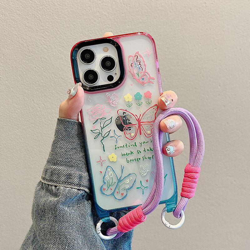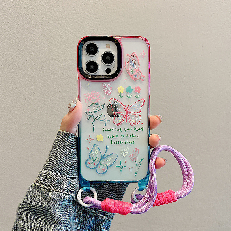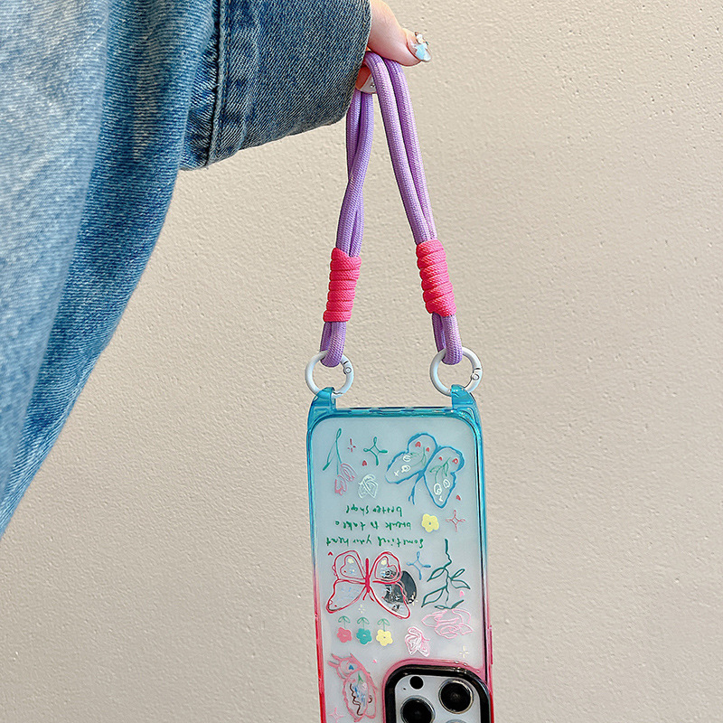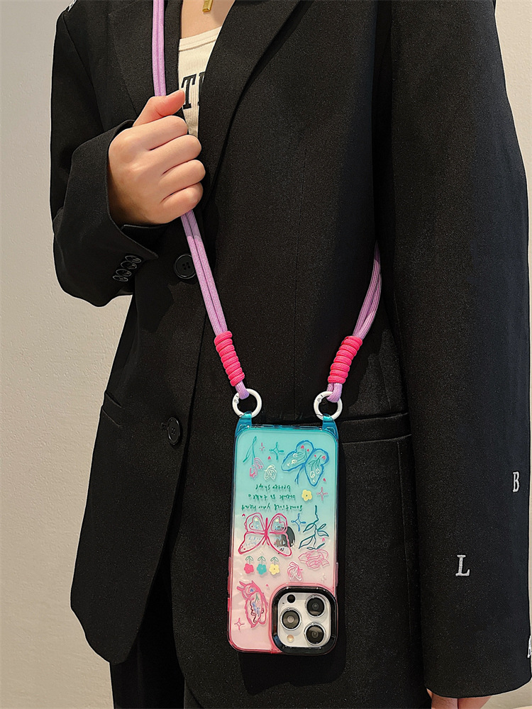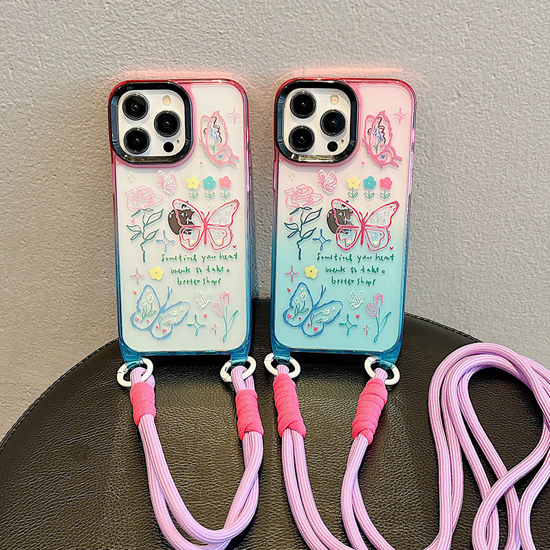Accessories Small Fresh Flower Butterfly Suitable for Apple 15 Mobile Phone Case 2024 Summer New Crossbody Strap Lanyard 14/13