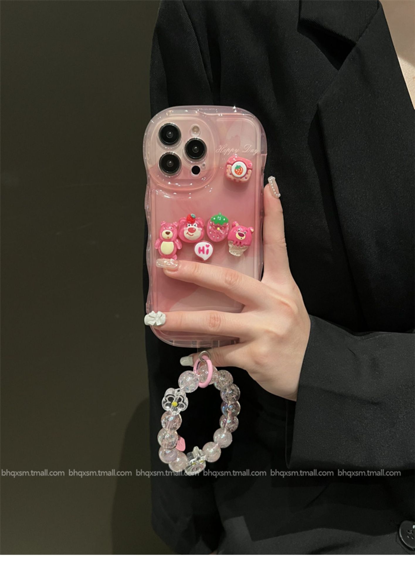 Accessories Smudge Powder Strawberry Bear Powder Lollipop Bracelet for Apple 14promax Mobile Phone Case iPhone13/14 New