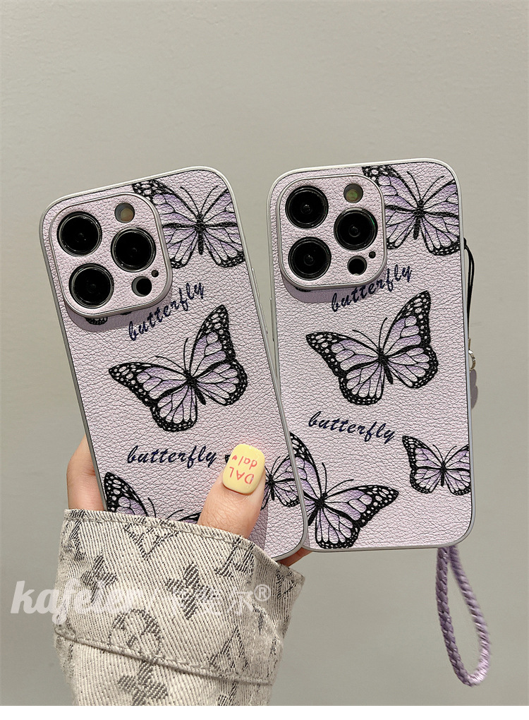 Accessories Superior sense beautiful purple butterfly bracelet iphone15pro max mobile phone case Apple 14 new 12