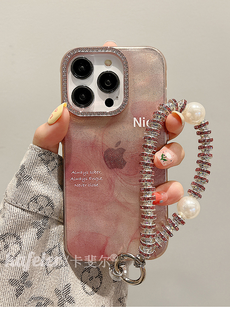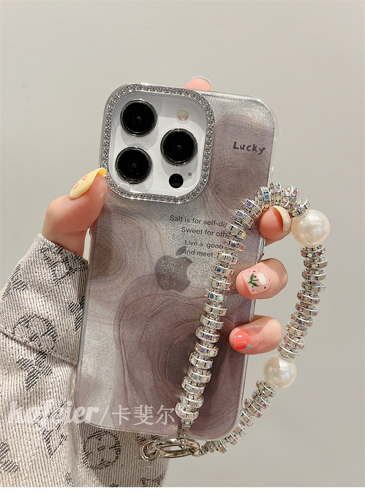 Accessories Superior sense diamond setting glitter smudge English bracelet iphone15pro max mobile phone case Apple 14 new