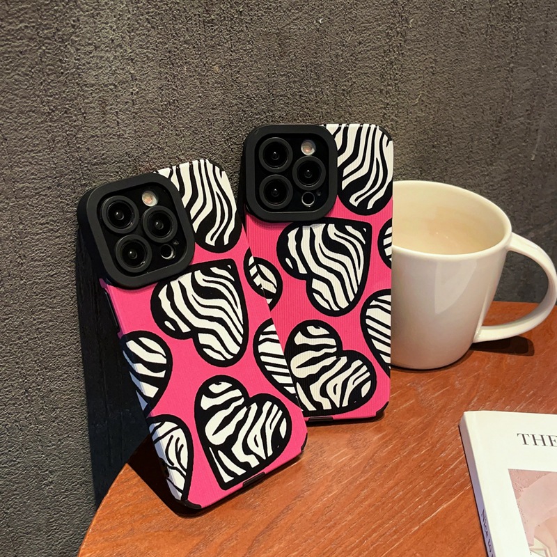 Accessories Sweet and cool zebra pattern love for iPhone14promax Apple 13 mobile phone case 12 new Internet celebrities 11 rose red