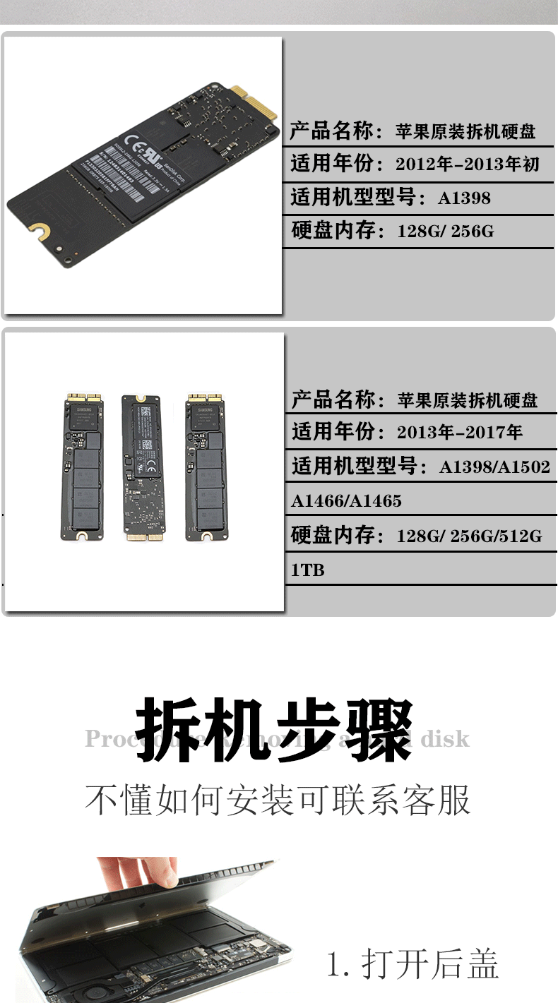 (Shipping fee not include)For apple Macbook original A1465 A1466 A1398 A1502 A1708 A1425 128GB 256GB 512GB 1TB SSD