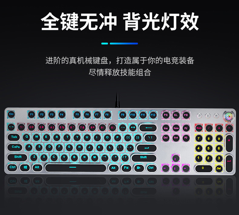 E-sports wired mechanical keyboard Metal key cap Mechanical shaft keyboard mouse headset Punk game keyboard mouse