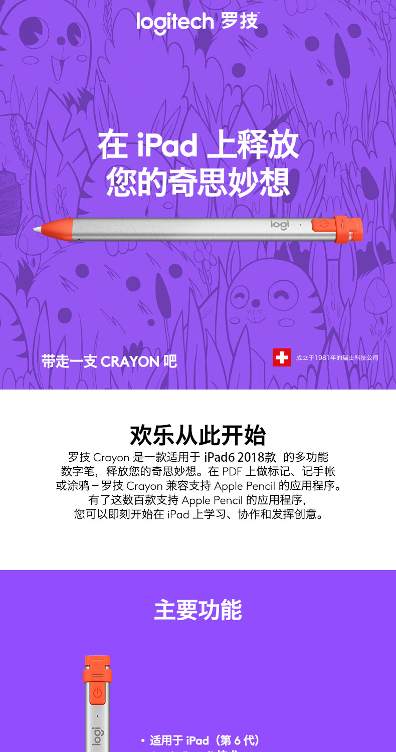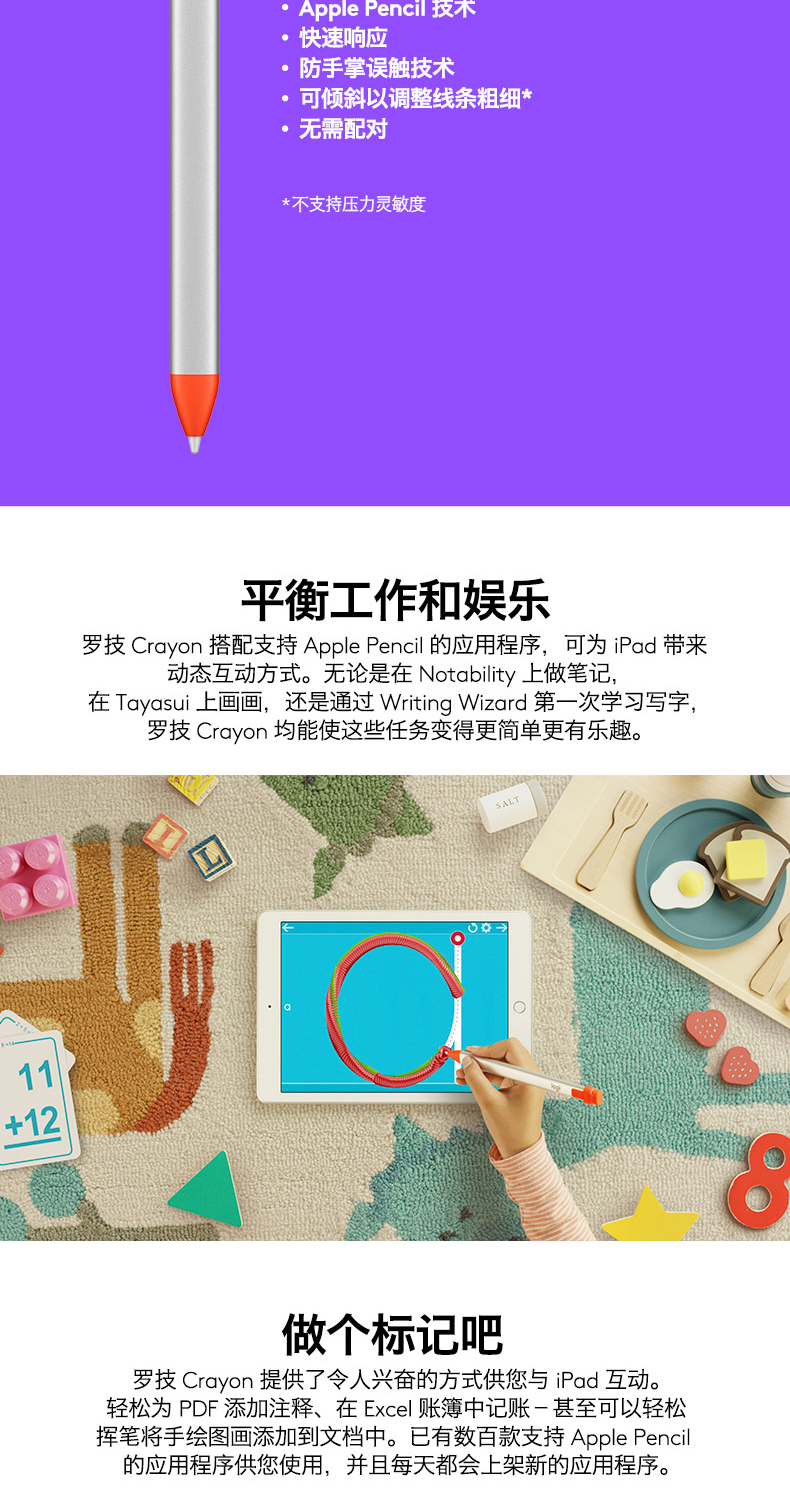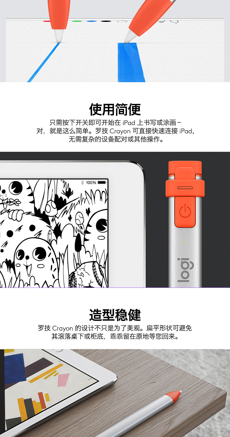 Logitech Crayon stylus iPad tablet pen ip10 digital stylus, replaceable stylus