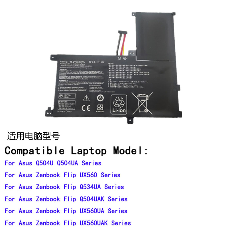 (Shipping fee not include)全新 for ASUS ASUS B41N1532 UX560 UX560UA Q504UA repalcement battery
