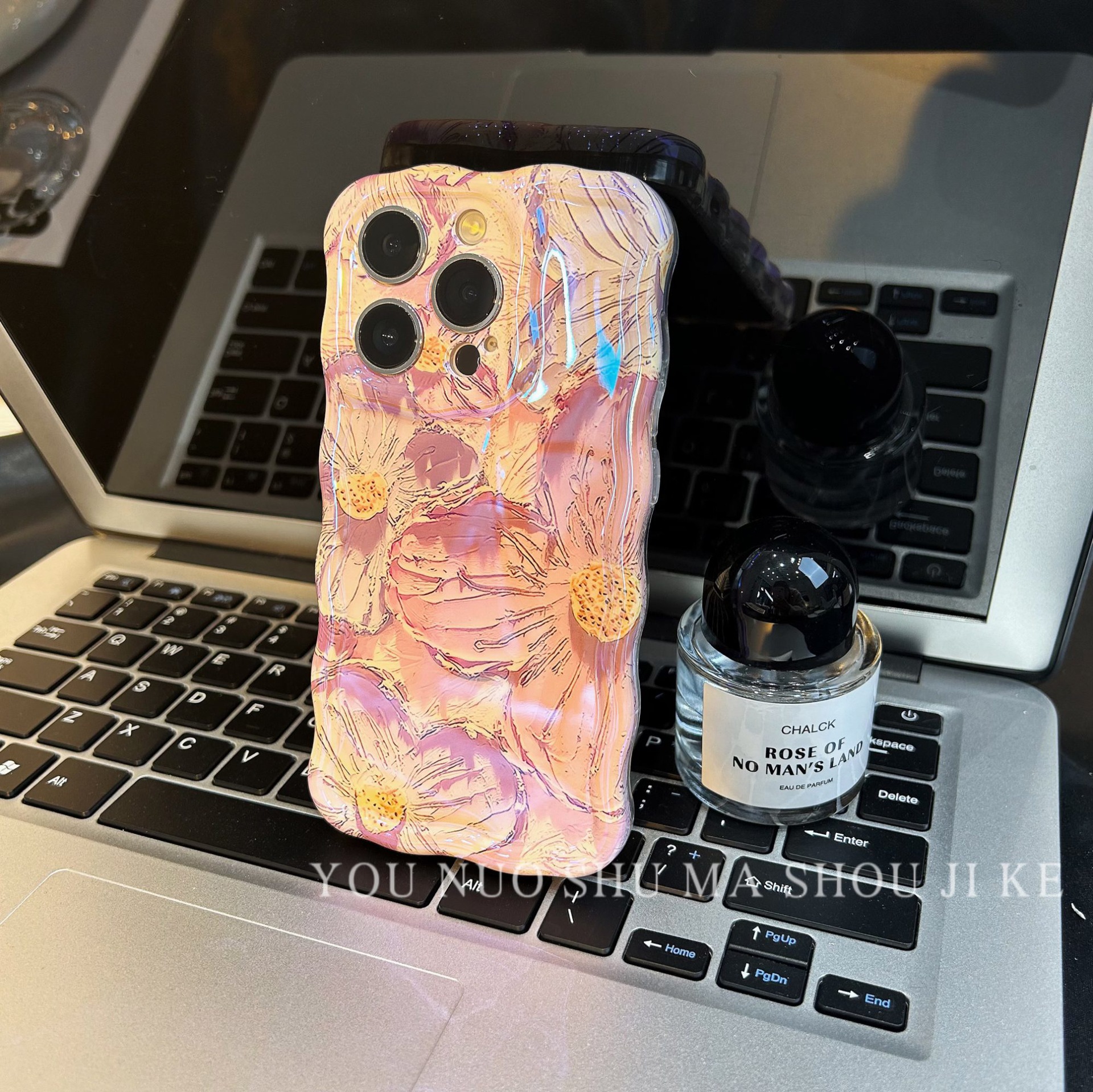 Accessories [Apple] iPhone15Pro Apple 14 anti-drop ins Blu-ray retro oil painting flower new female phone case