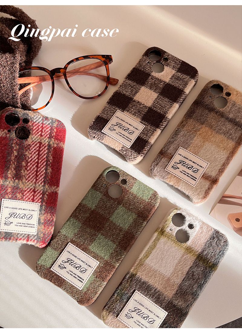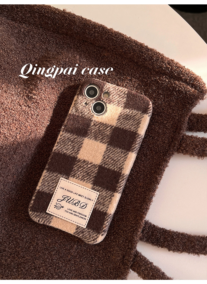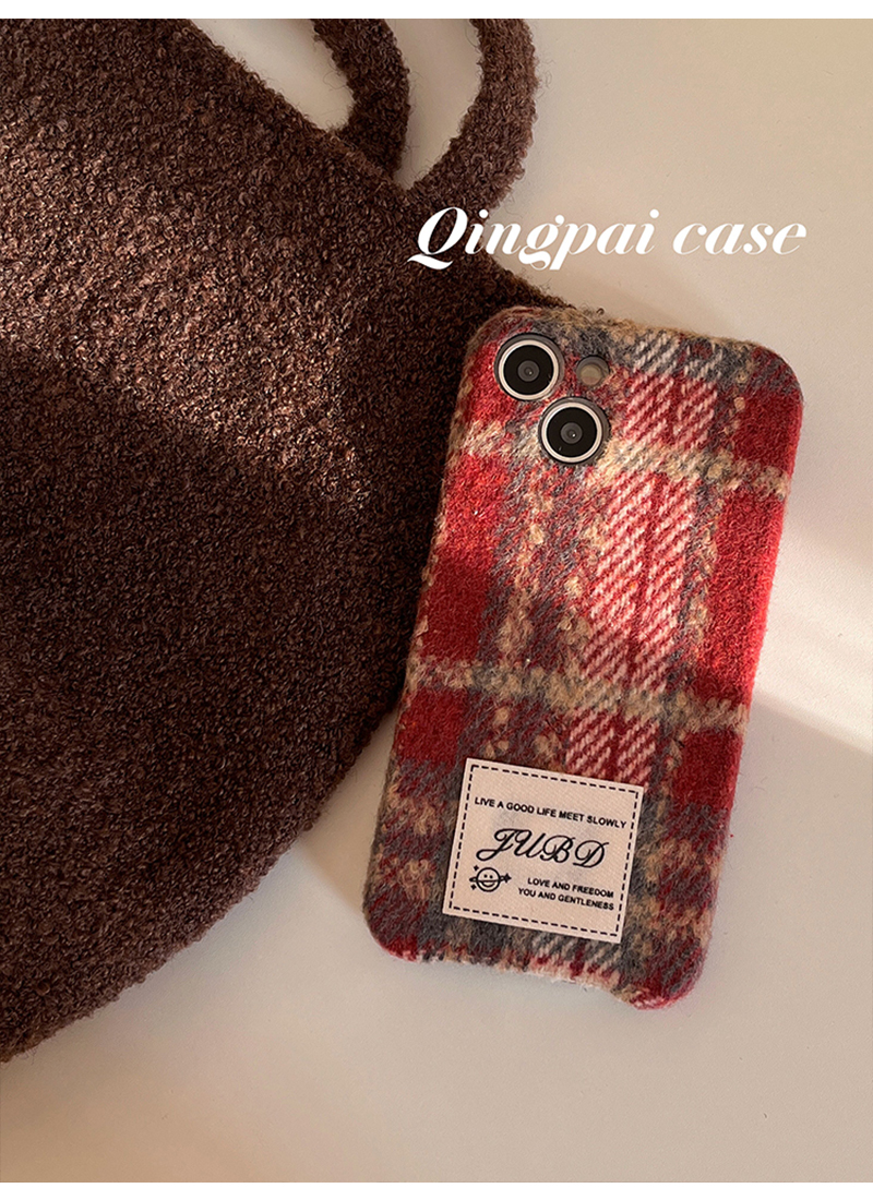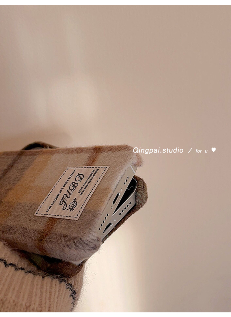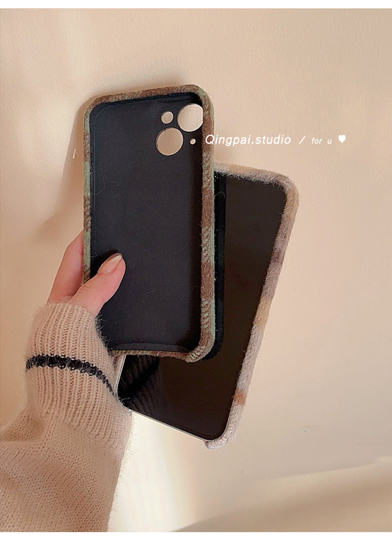 Accessories Autumn and winter woolen plaid for iPhone15promax mobile phone case Apple 14 new 13 women's 12 retro trendy