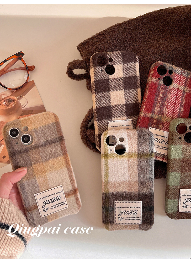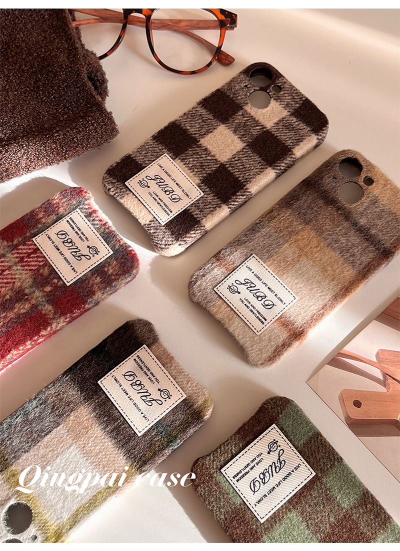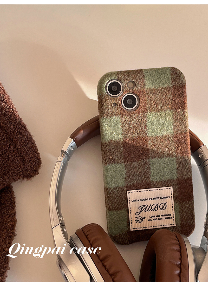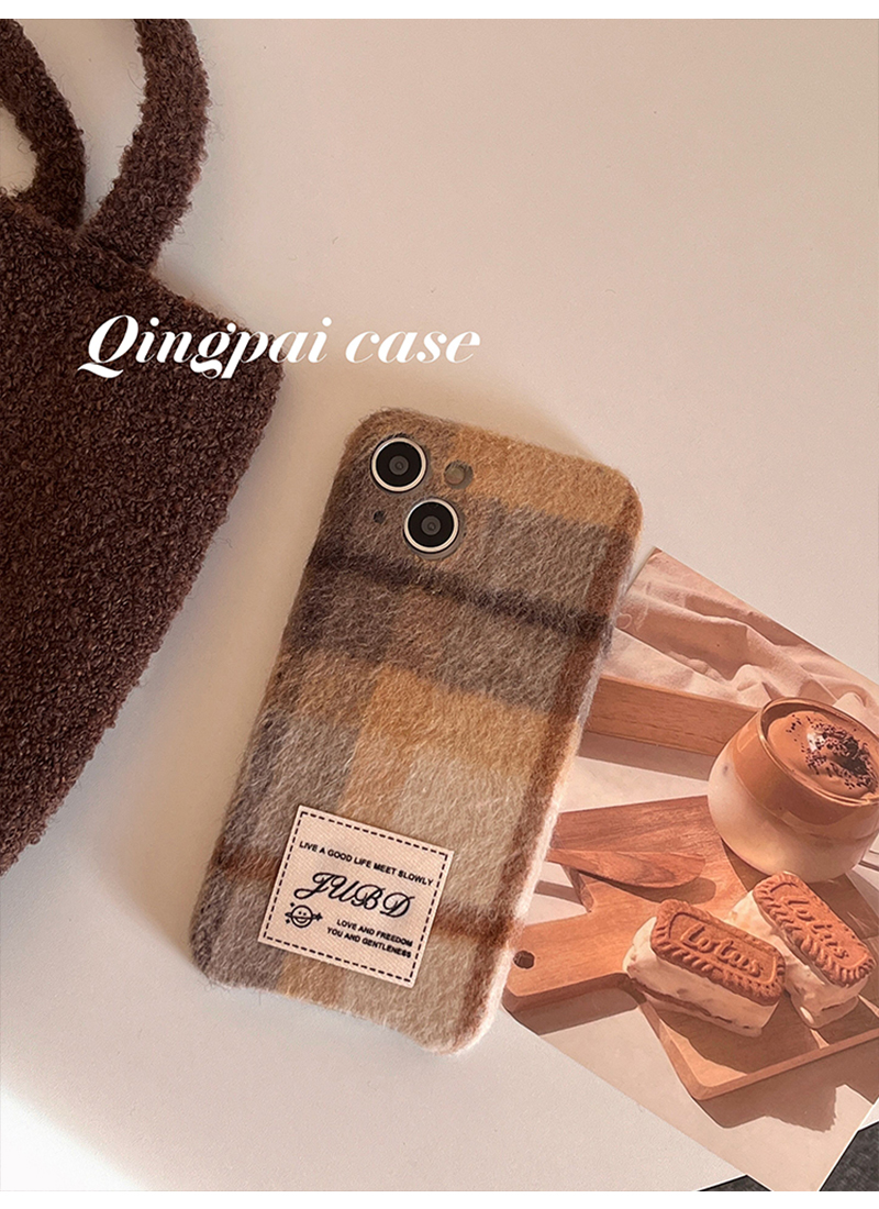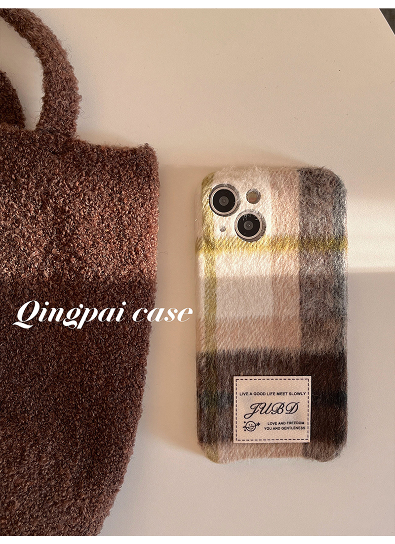 Accessories Autumn and winter woolen plaid for iPhone15promax mobile phone case Apple 14 new 13 women's 12 retro trendy
