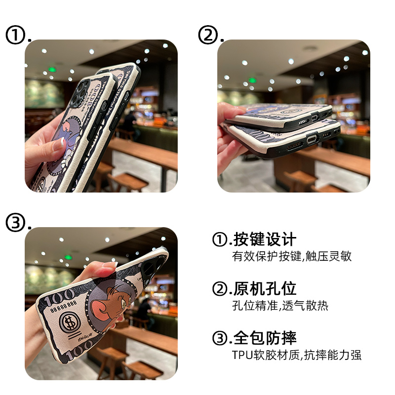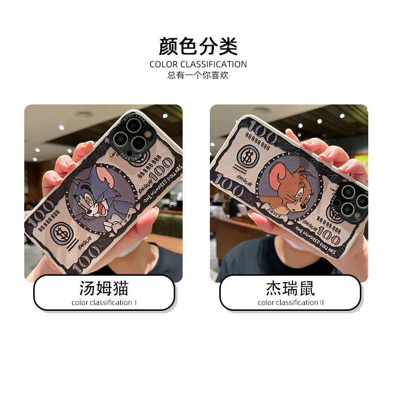 Accessories banknotes cat and mouse for iphone15 mobile phone case apple 14 silicone case 12pro max soft case 11