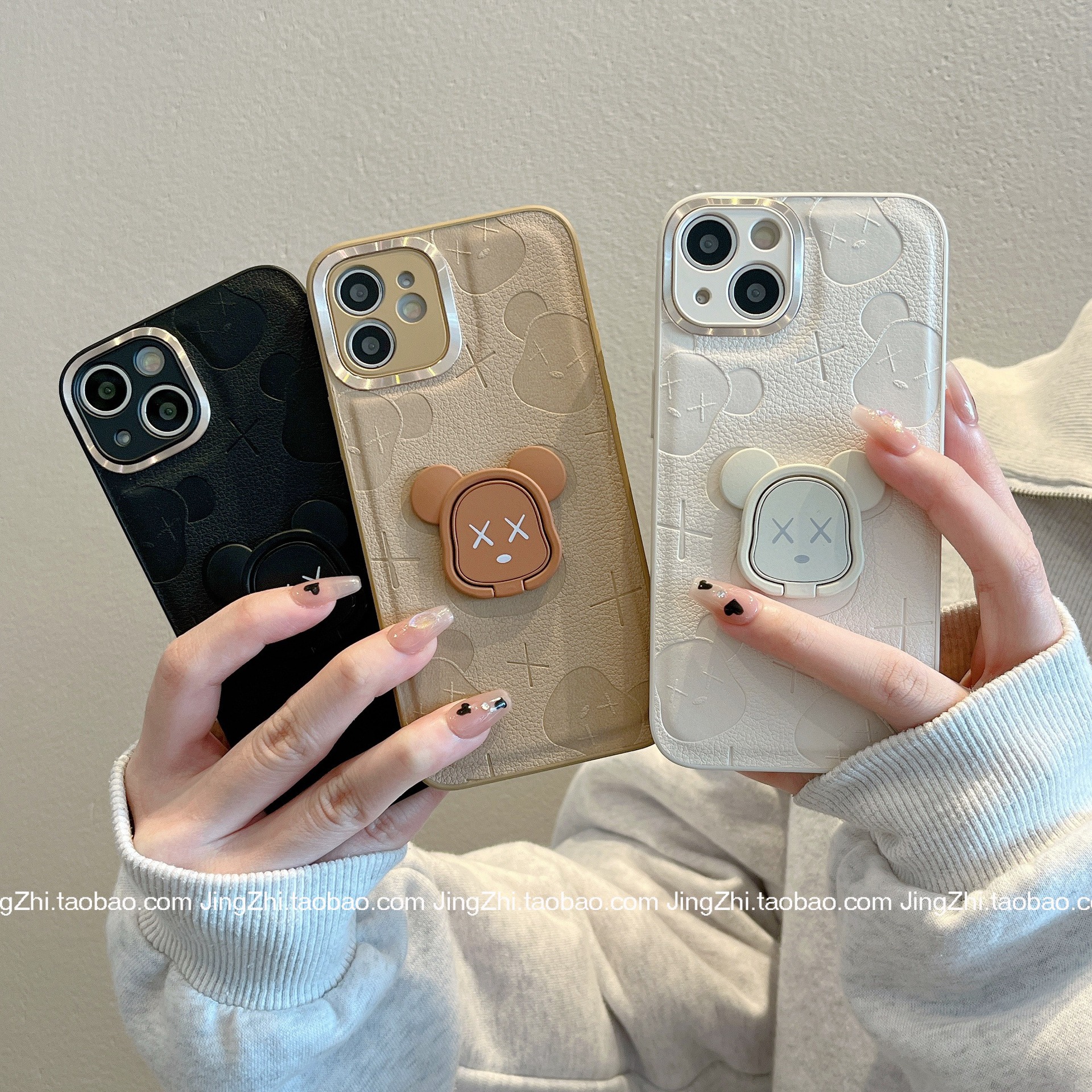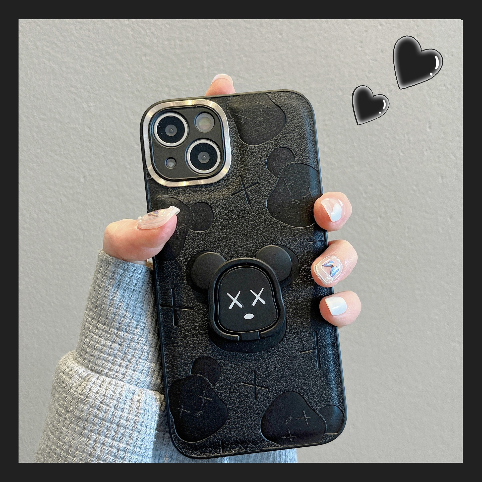 Accessories Cartoon bear with bracket for iphone14 mobile phone case 13 Apple 12/11 anti-drop xsmax female xr anti-drop