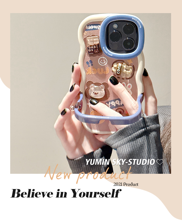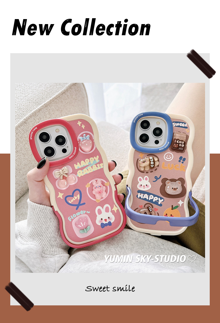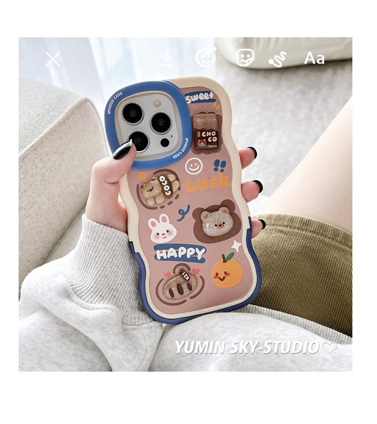 Accessories Contrast color bear rabbit for iPhone14promax Apple 13 mobile phone case 11 bracket 12 couple plus soft