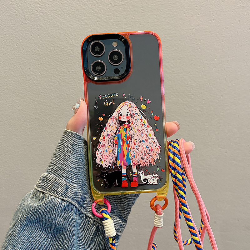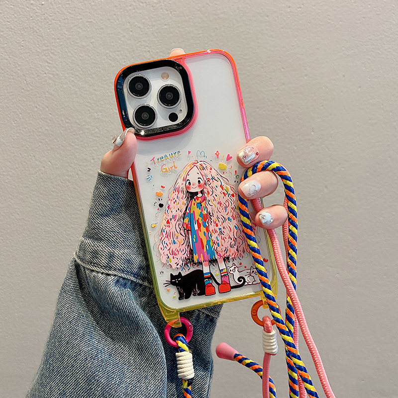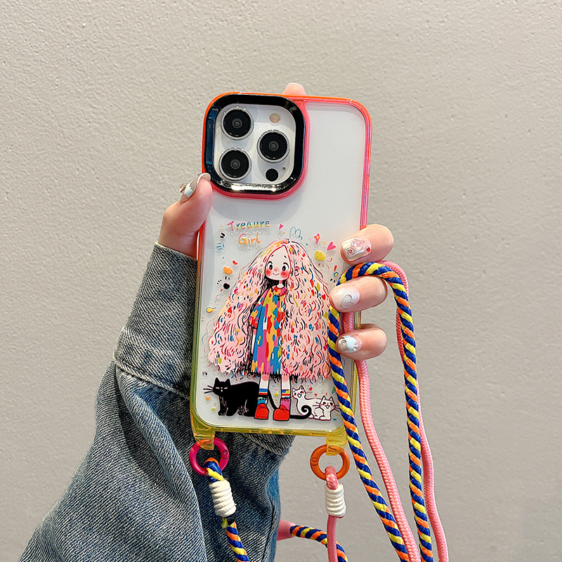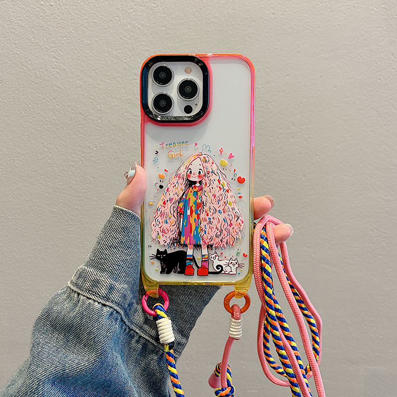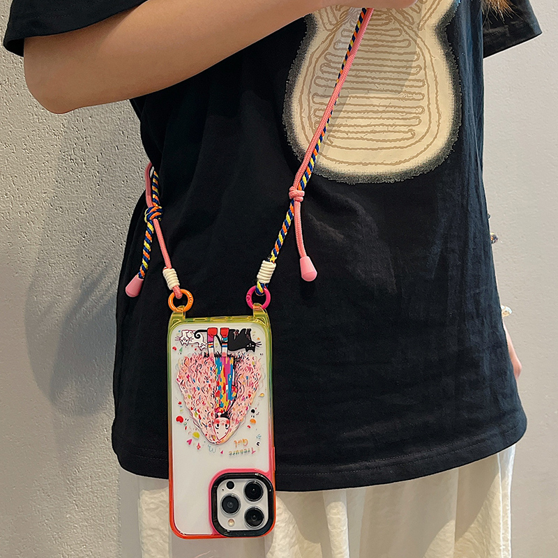 Accessories Cute Fun Girl Applicable Apple 15 Mobile Phone Case 2024 Summer New Crossbody Strap iphone14pro