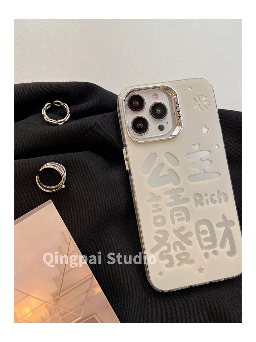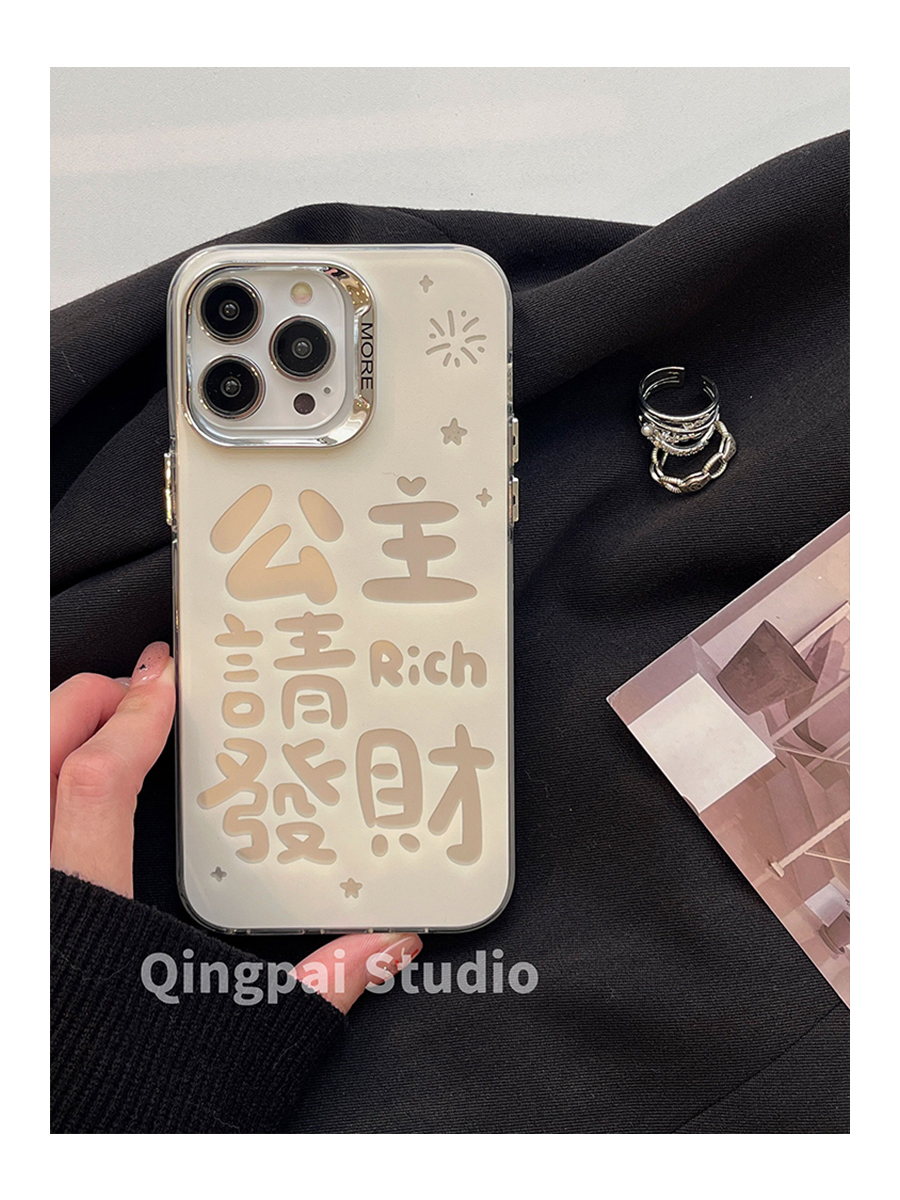 Accessories Electroplating Personality Princess Please Get Rich Applicable to Apple 15promax mobile phone case iphone13 new 14pro women