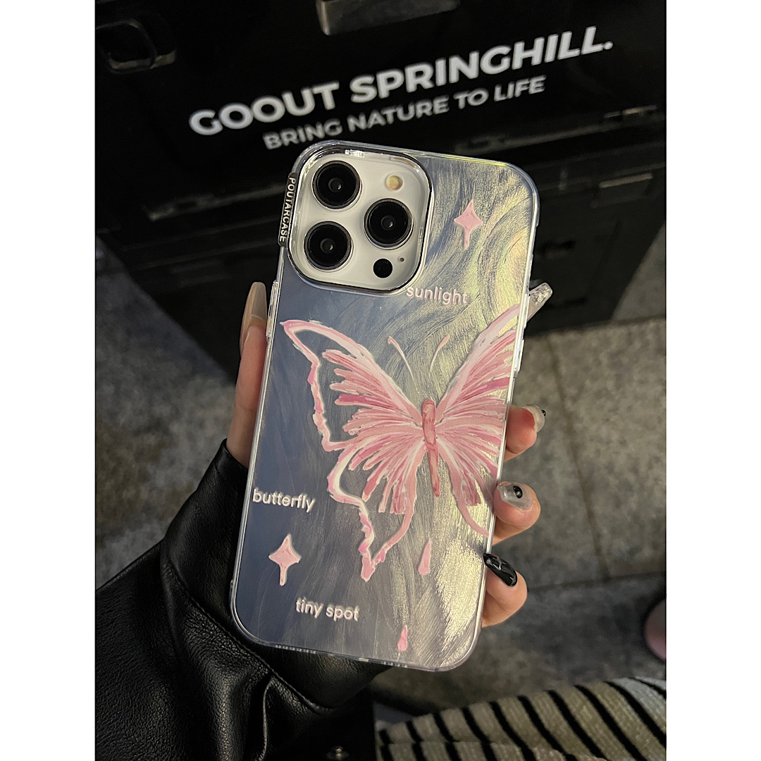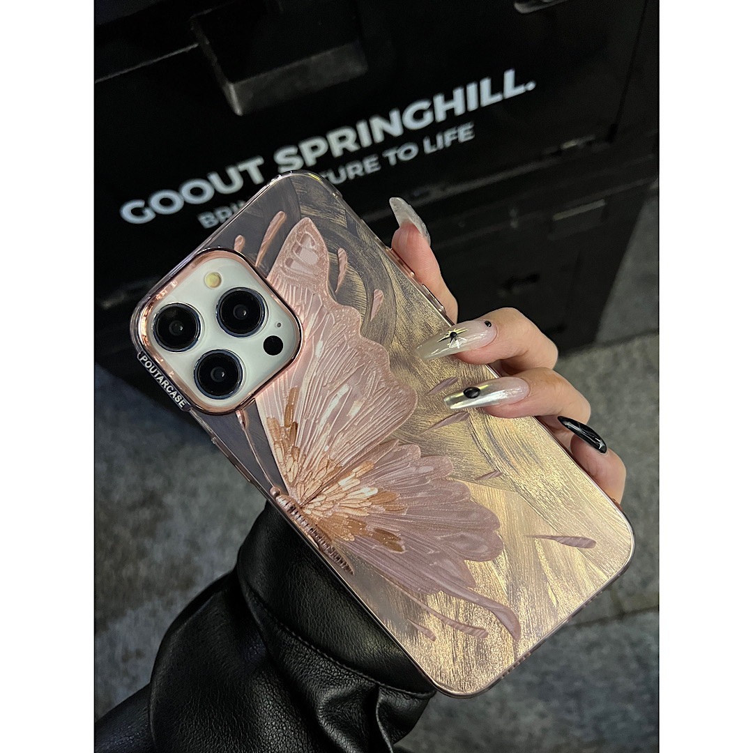 Accessories for Apple 13 mobile phone case, new 2024 women's high-end feather butterfly mobile phone case iPhone15prom