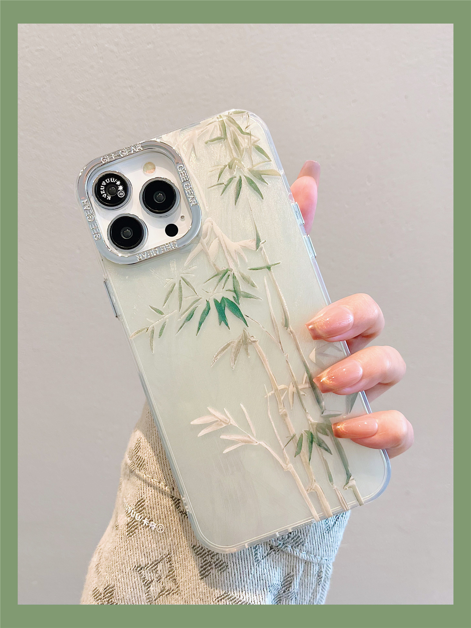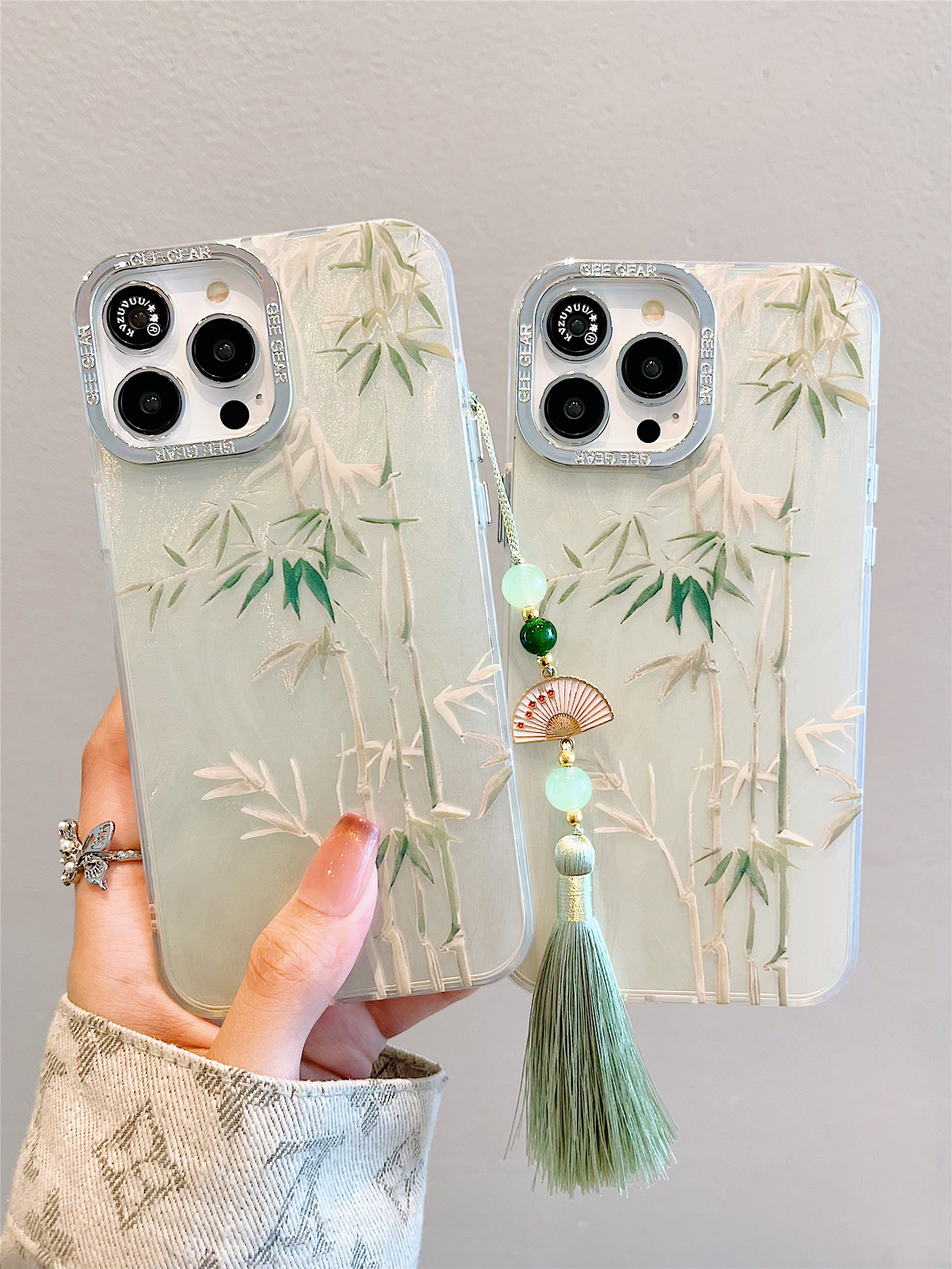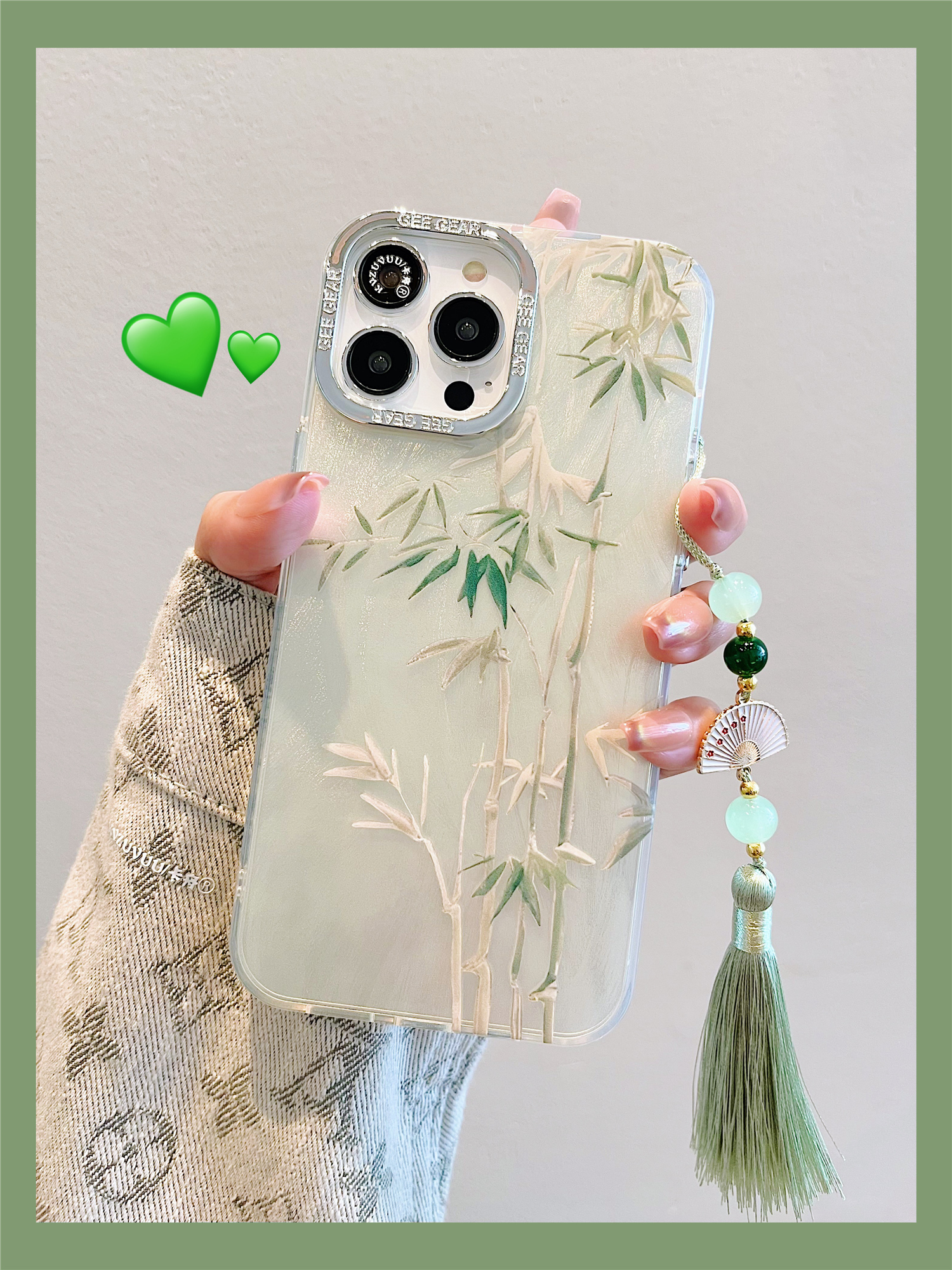 Accessories for Apple 15 mobile phone case iphone14promax green bamboo small fan bracelet 14 Chinese style 13 Internet celebrities