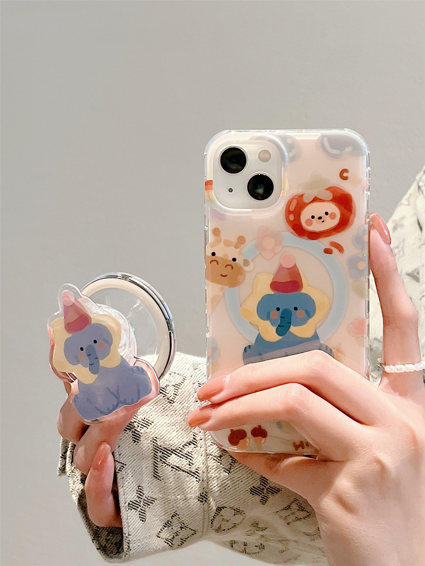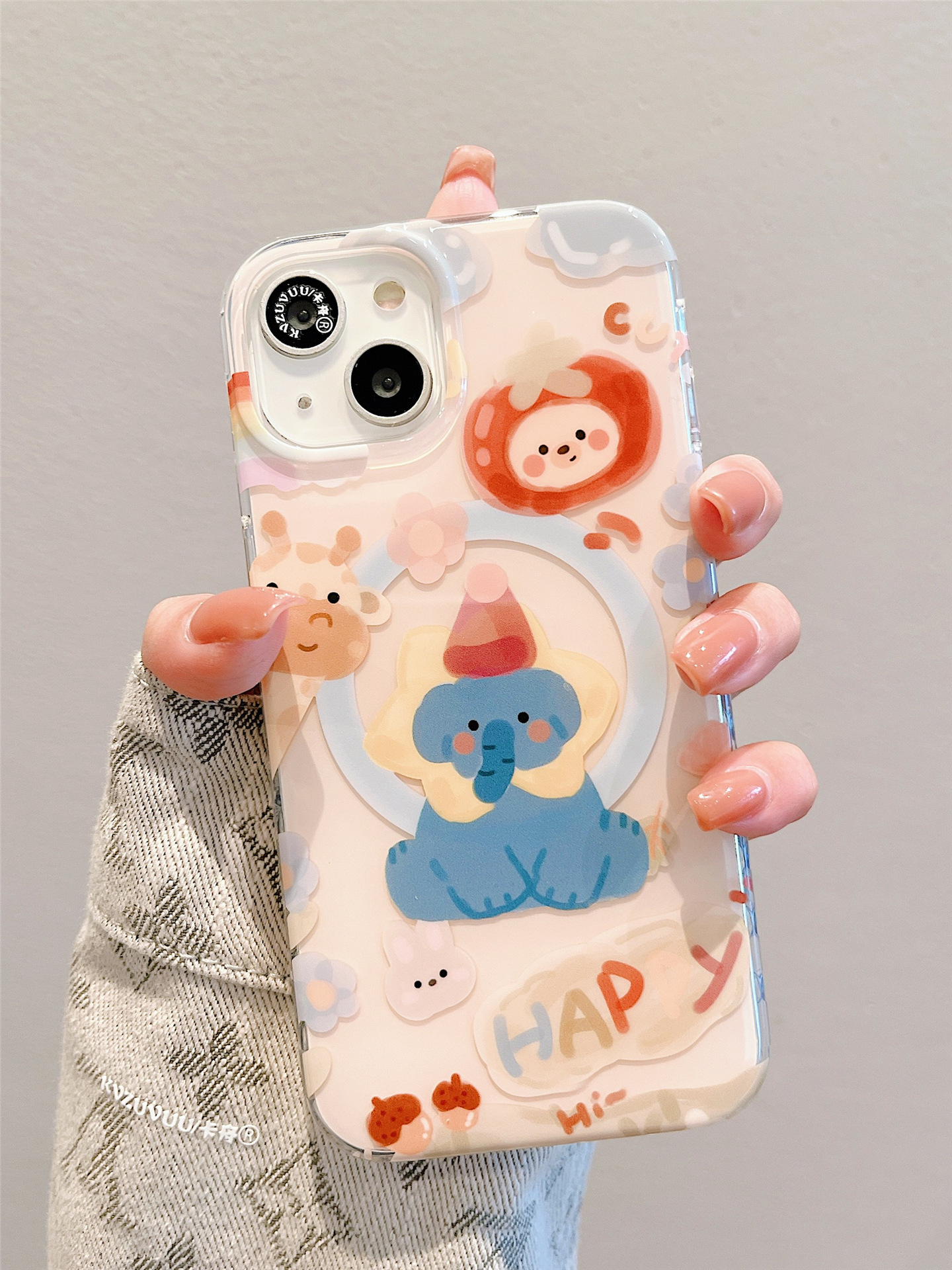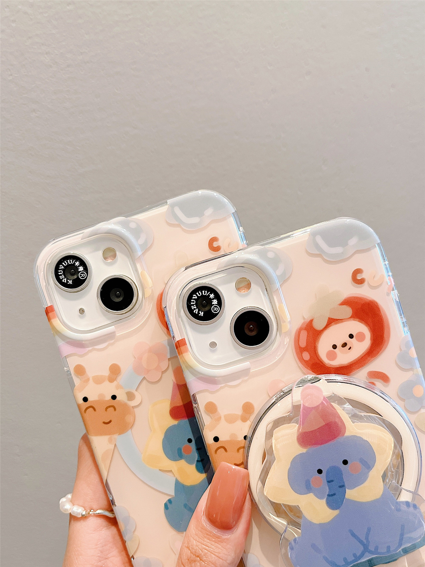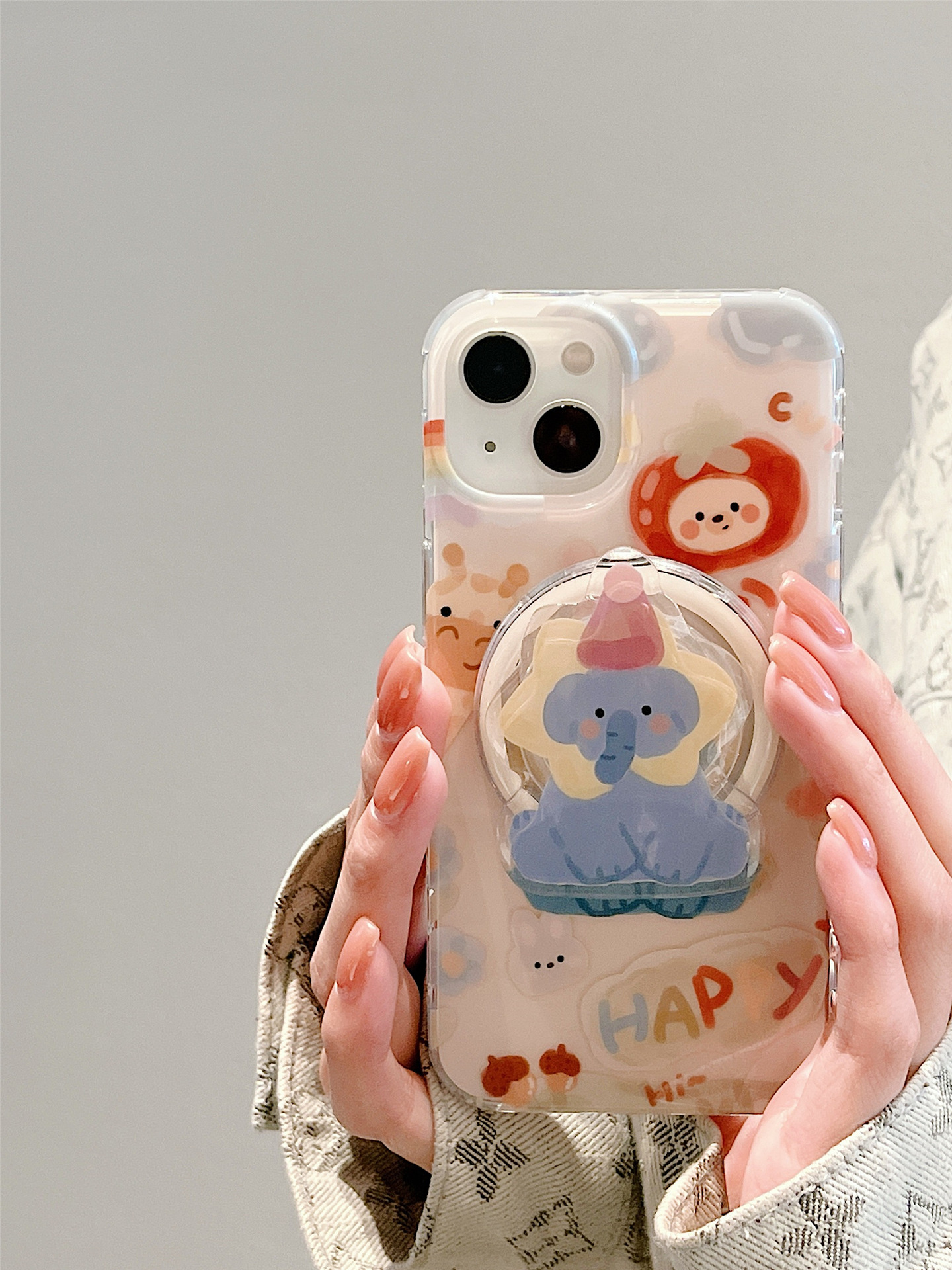 Accessories for Apple 15 mobile phone case iphone14promax white deer with the same blue elephant magnetic suction bracket 13 fun
