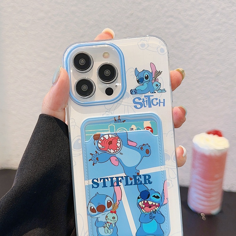 Accessories for Apple 15iPhone14Pro cute 13promax fun Stitch card bag soft rubber phone case