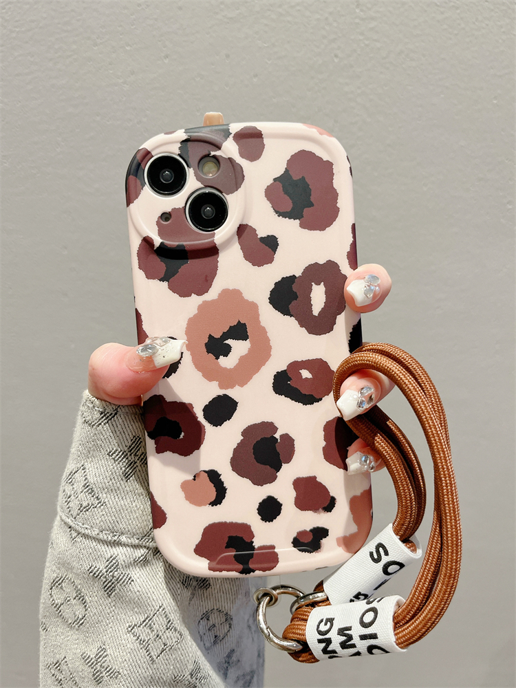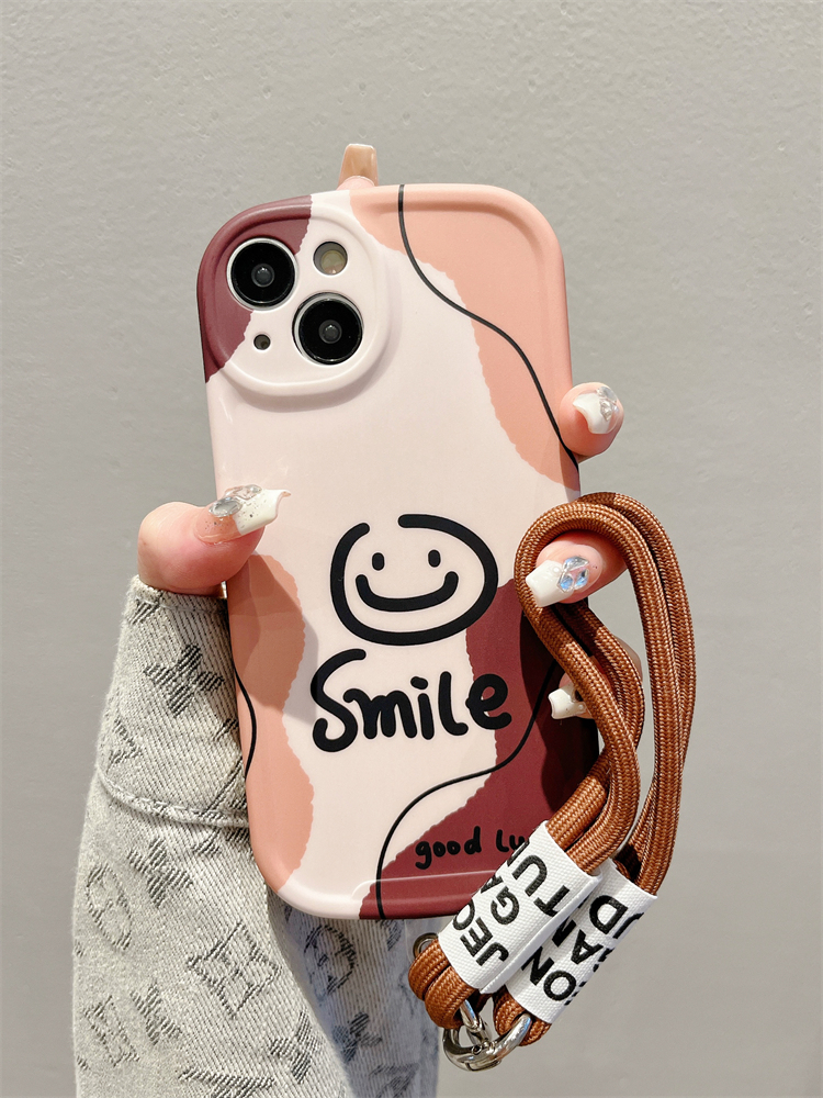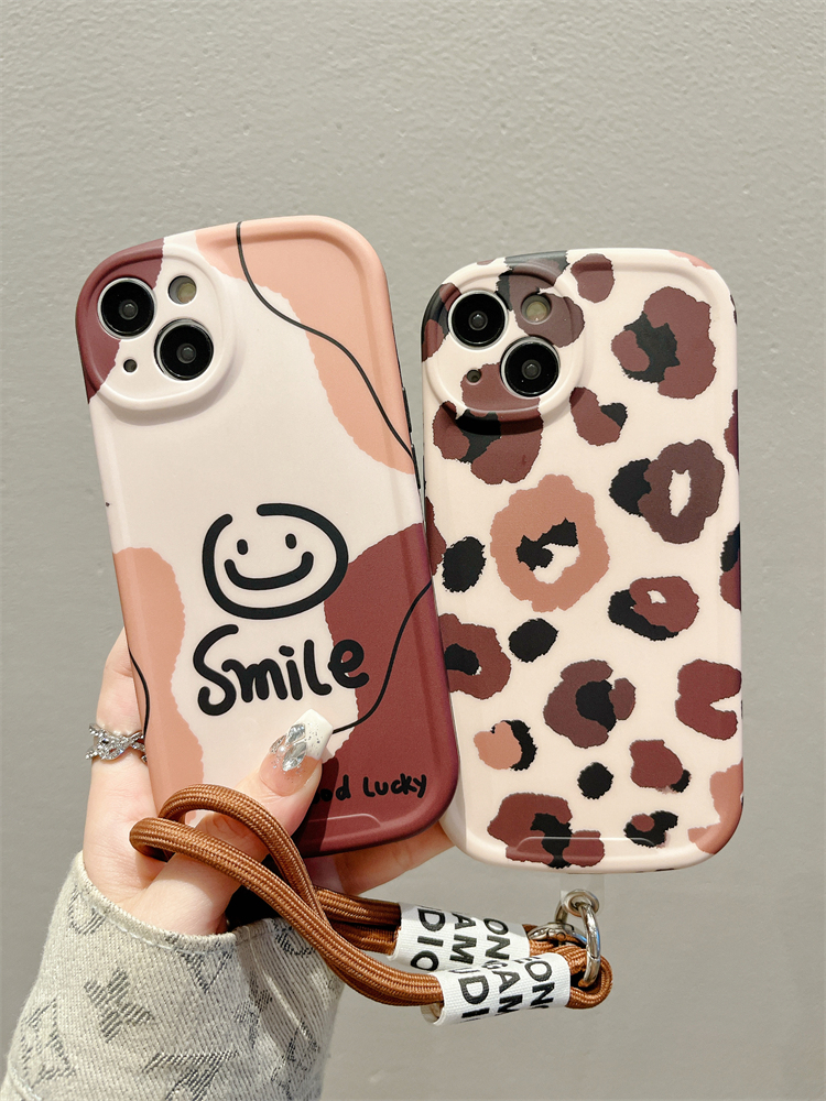 Accessories for Apple 15promax mobile phone case 13 simple smiley face leopard print 14 new iphone15 lanyard super fire 15