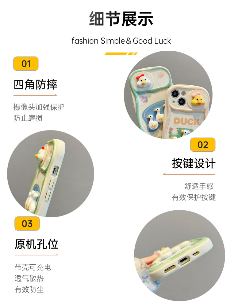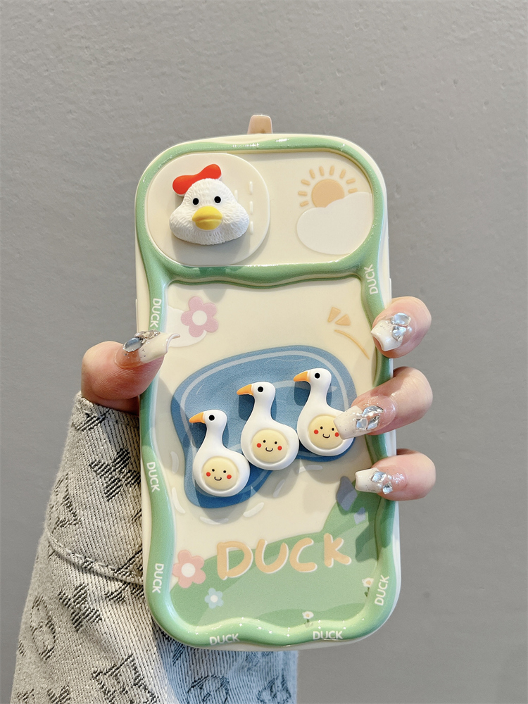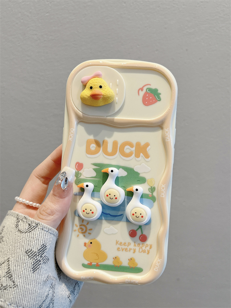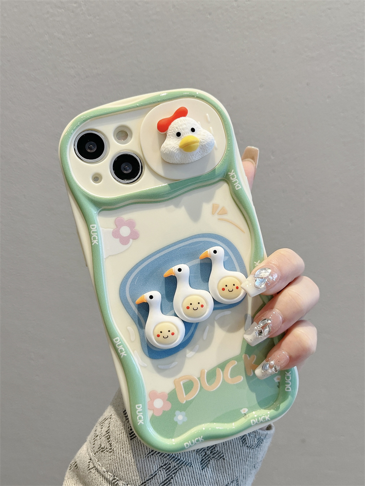 Accessories for Apple 15promax mobile phone case 13 three-dimensional cartoon duck sliding window iphone15 new 15pro