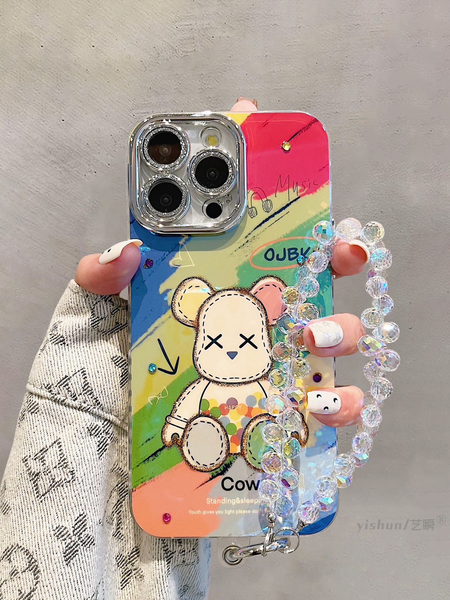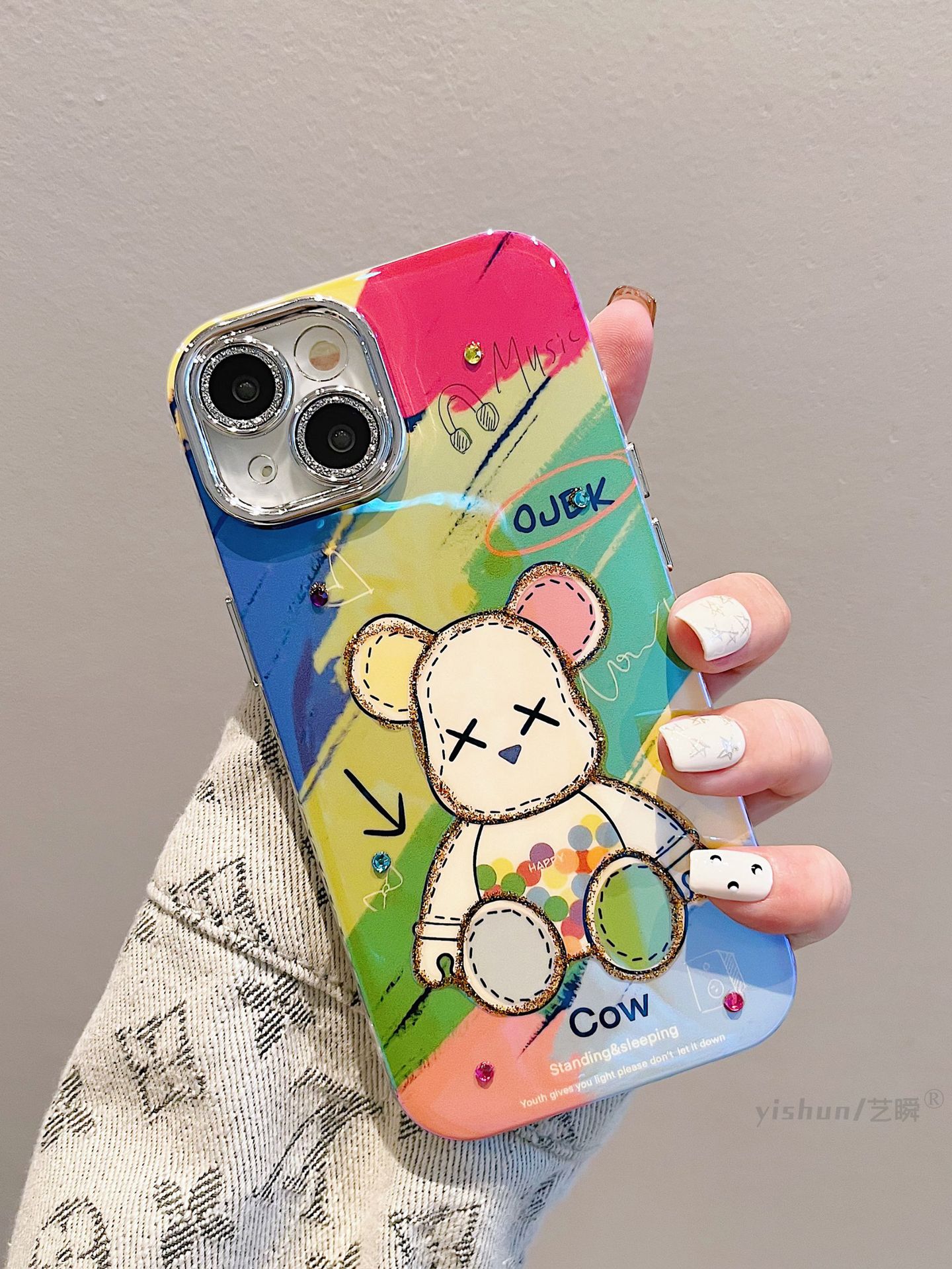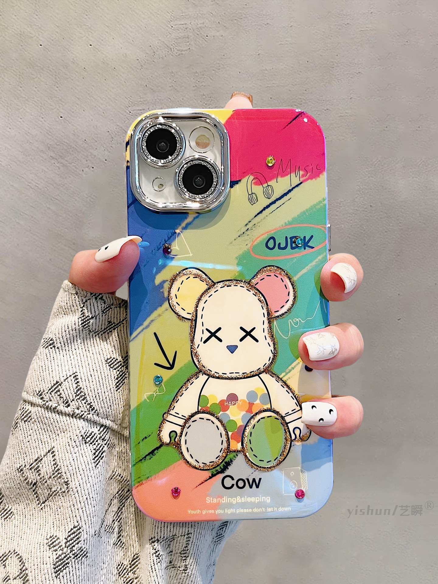 Accessories for Apple 15ProMax mobile phone case iPhone14 creative cartoon Blu-ray violent bear 12 couple women's 15