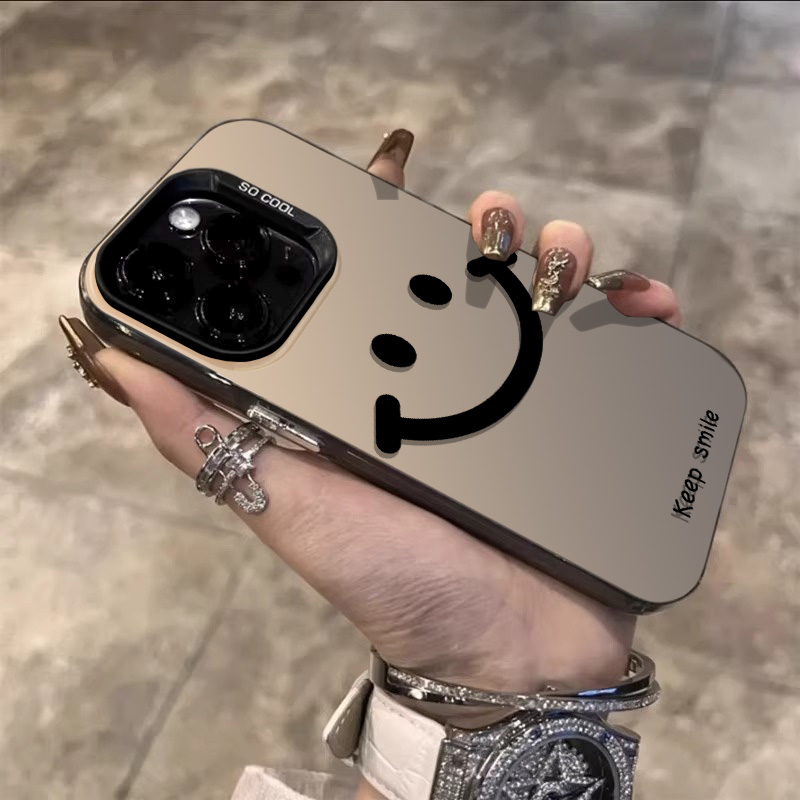Accessories for Apple 15promax mobile phone case, matte red smiley face iPhone14pro protective case, fashionable and creative.