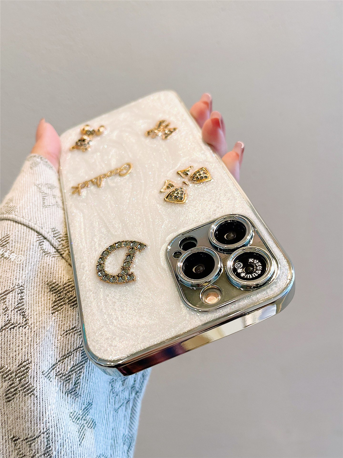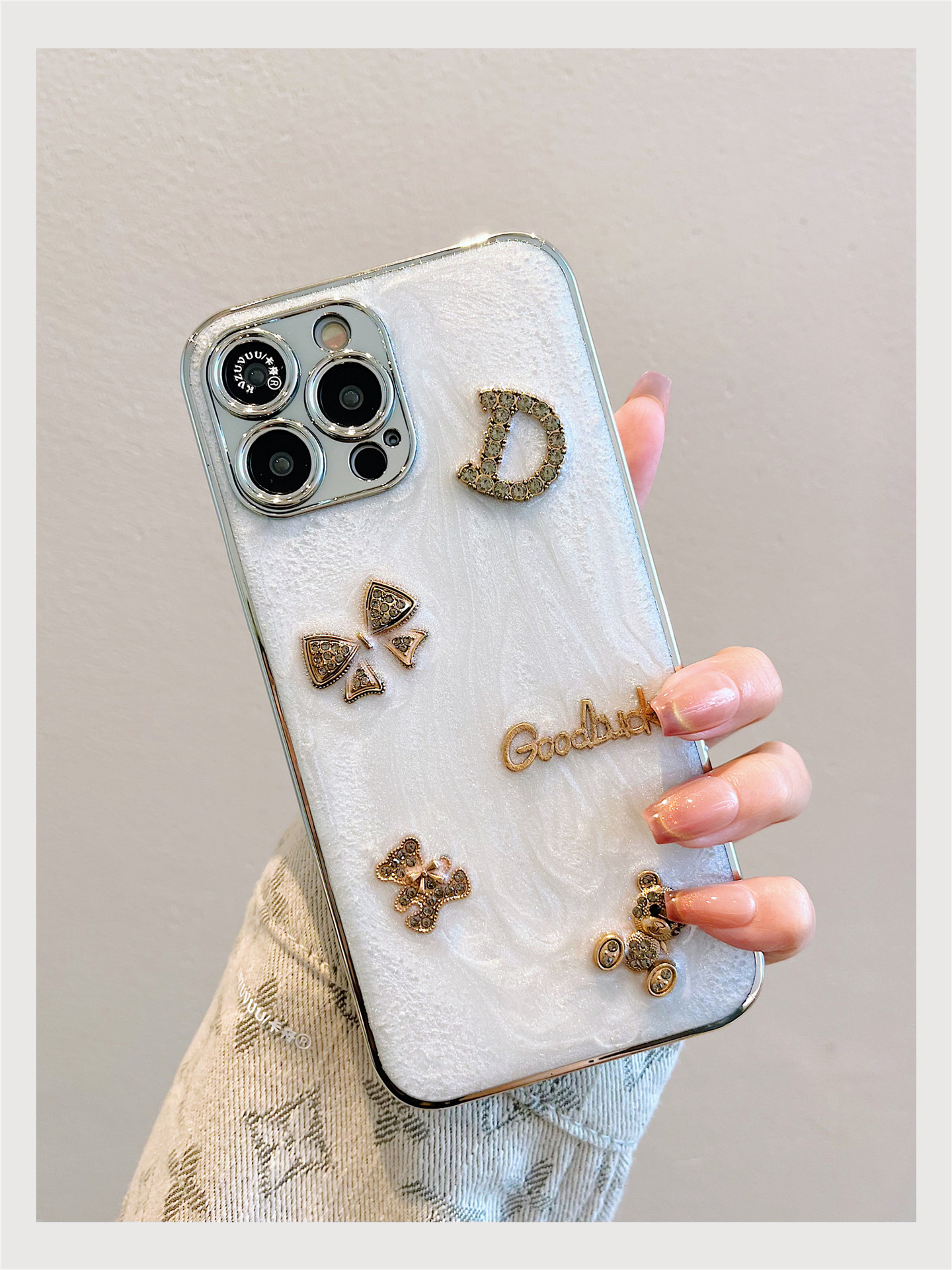 Accessories for iPhone 15 mobile phone case iphone14promax three-dimensional rhinestone letter bear 13 simple ins wind 12